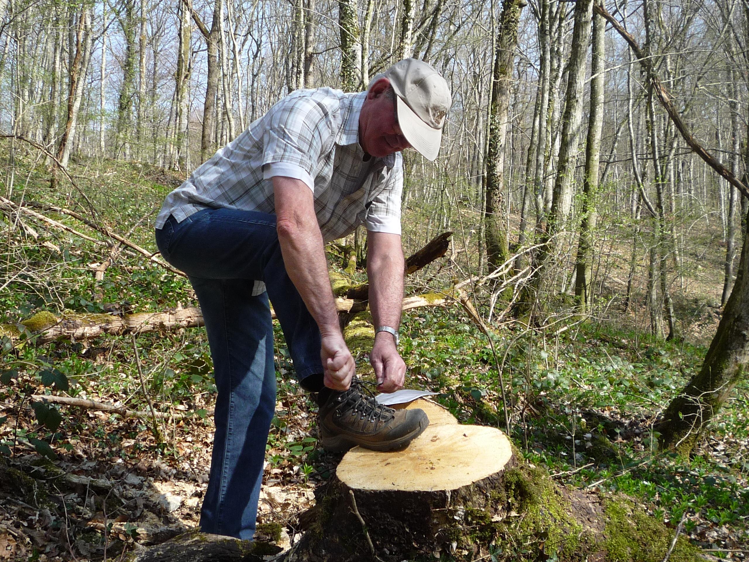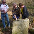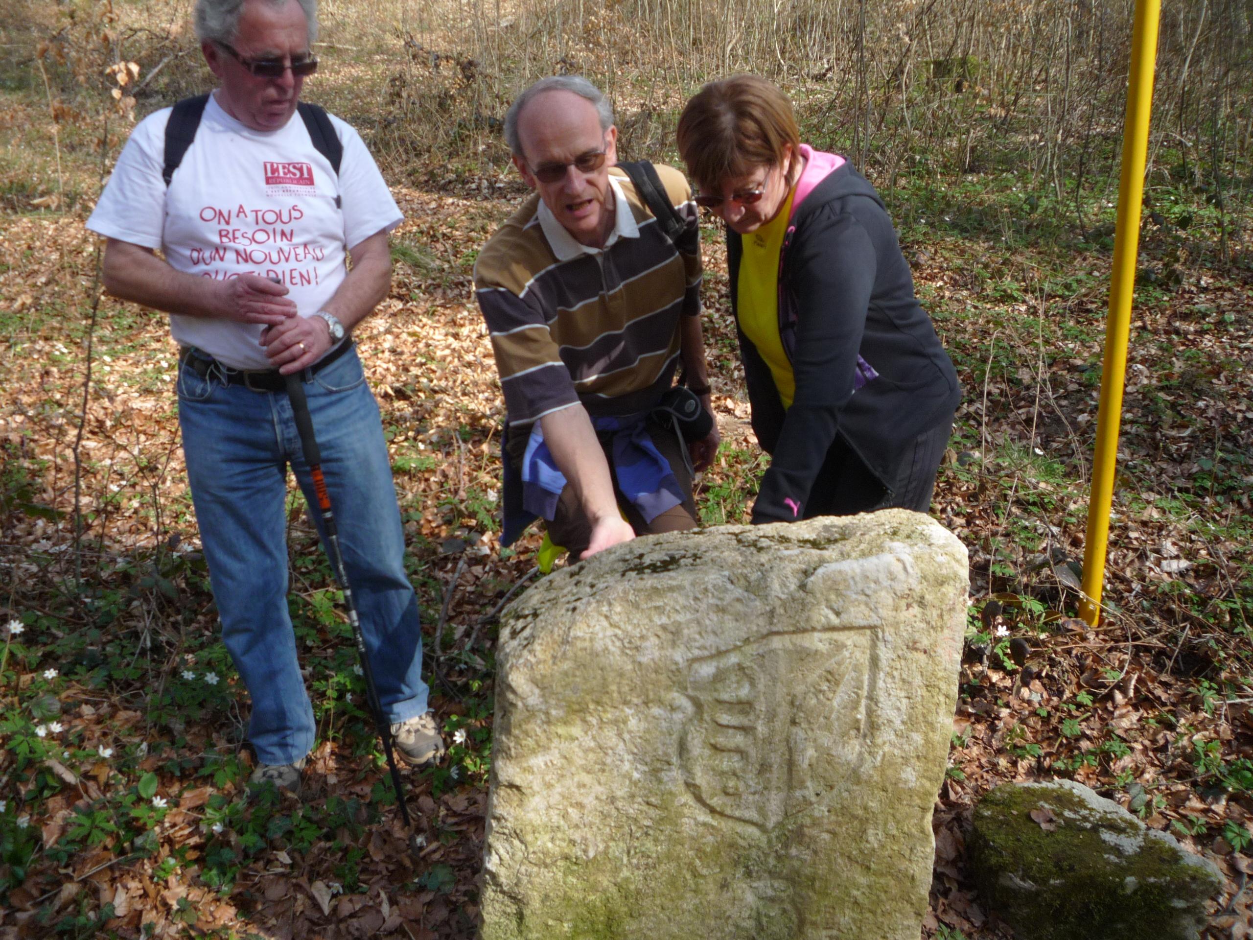 Albert, notre guide du jour, et René nous expliquent que l’homme du Néolithique s’est abrité dans un important camp fortifié édifié par les Celtes, comme en témoignent les cavités funéraires et de nombreux tumulis ainsi que les ossements, haches et poteries retrouvés depuis le XIXe siècle. Ensuite, direction le « Sentier Historique de la Principauté de Montbéliard » et ses premières bornes n° 111 et 120 datant de 1543. Très caractéristiques, appelées « bornes Mazarine » par les habitants de la région, elles ont été érigées à la demande d’Hortense de Mancini, nièce du cardinal Mazarin.