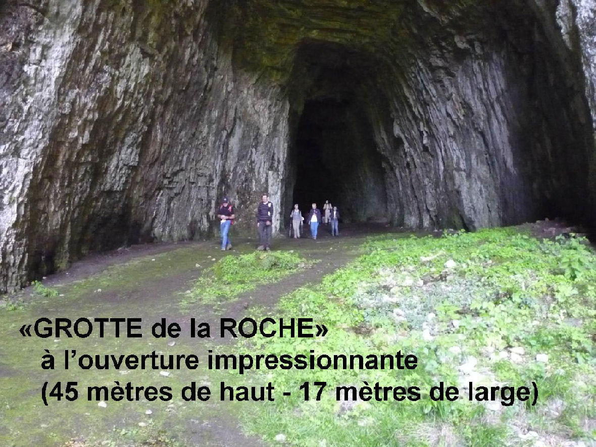 Sous un ciel mitigé mais sans pluie, nous quittons le parking de la poste avec nos deux guides du jour PIERRE et JEAN-PAUL en direction de la Grotte de la Roche, un point culminant, thème de notre journée.