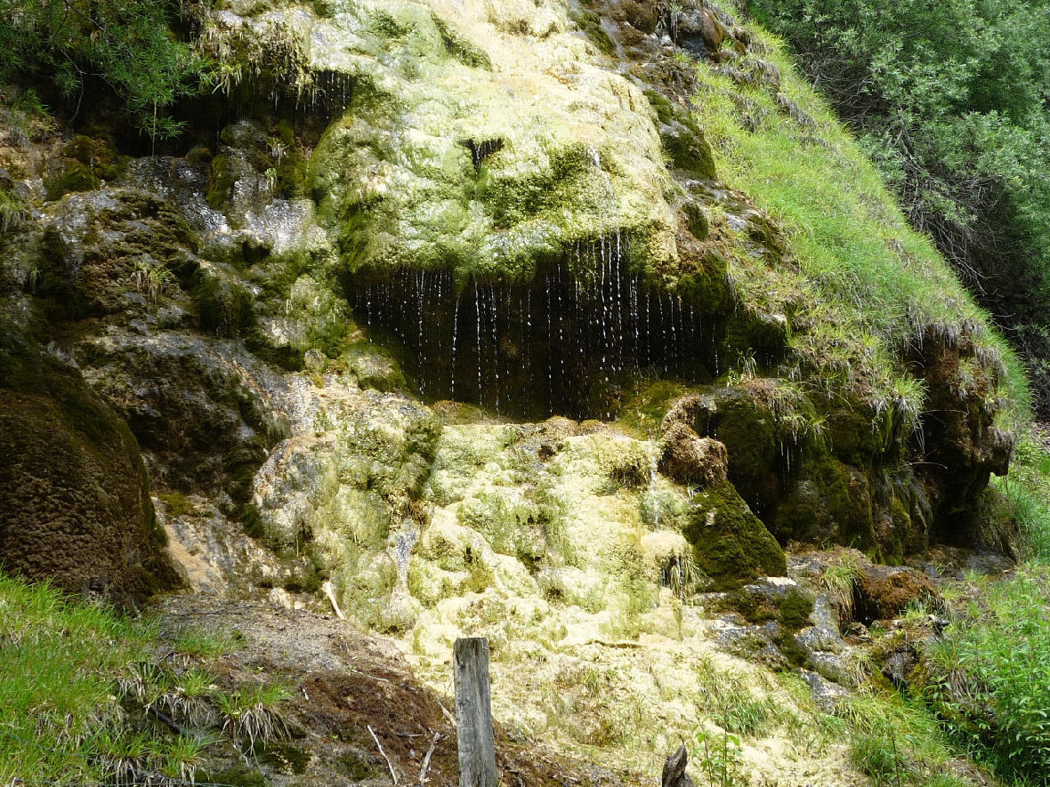 Nous progressons lentement et passons devant une tufière dont on extrayait une roche sédimentaire légère et résistante au froid. On l’utilisait en particulier pour la construction des tunnels de chemins de fer et des très hautes cheminées des fermes comtoises. Nous passons devant la Ferme de la Grosse Roche, ancienne possession des religieuses enseignantes de la congrégation des Ursulines de Saint Hippolyte. Nous découvrons les vestiges d’un hameau avec un pan de mur sur lequel on peut apercevoir un chapeau phrygien gravé et la date de l’an II.