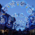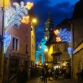 Nous rejoignons le temple Saint Georges où sont situés le premier contrôle et le pot d’accueil offert par les organisateurs. Petite halte pour déguster biscuits et chocolats. En sortant et comme par magie, les décorations s’illuminent et nous guident jusqu’au Marché de Noël que nous contournons par la rue Clémenceau, vue l’intensité de la foule de chalands.