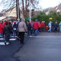Ce samedi 15 décembre, rendez-vous était donné à 15 heures salle de la Roselière à Montbéliard pour procéder aux inscriptions parmi les 3 000 marcheurs venus de tout l’Est de la France, comme en témoignaient les 17 bus stationnés à proximité. Départ de notre groupe vers 16 heures, sous un ciel gris mais dans une excellente ambiance, le long de l’Allan. Les abords étaient inondés et le niveau du cours d’eau impressionnant. Après avoir franchi la passerelle, très rapidement le paysage du Lomont apparaît depuis les hauteurs du Parc des Miches.