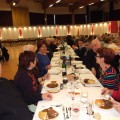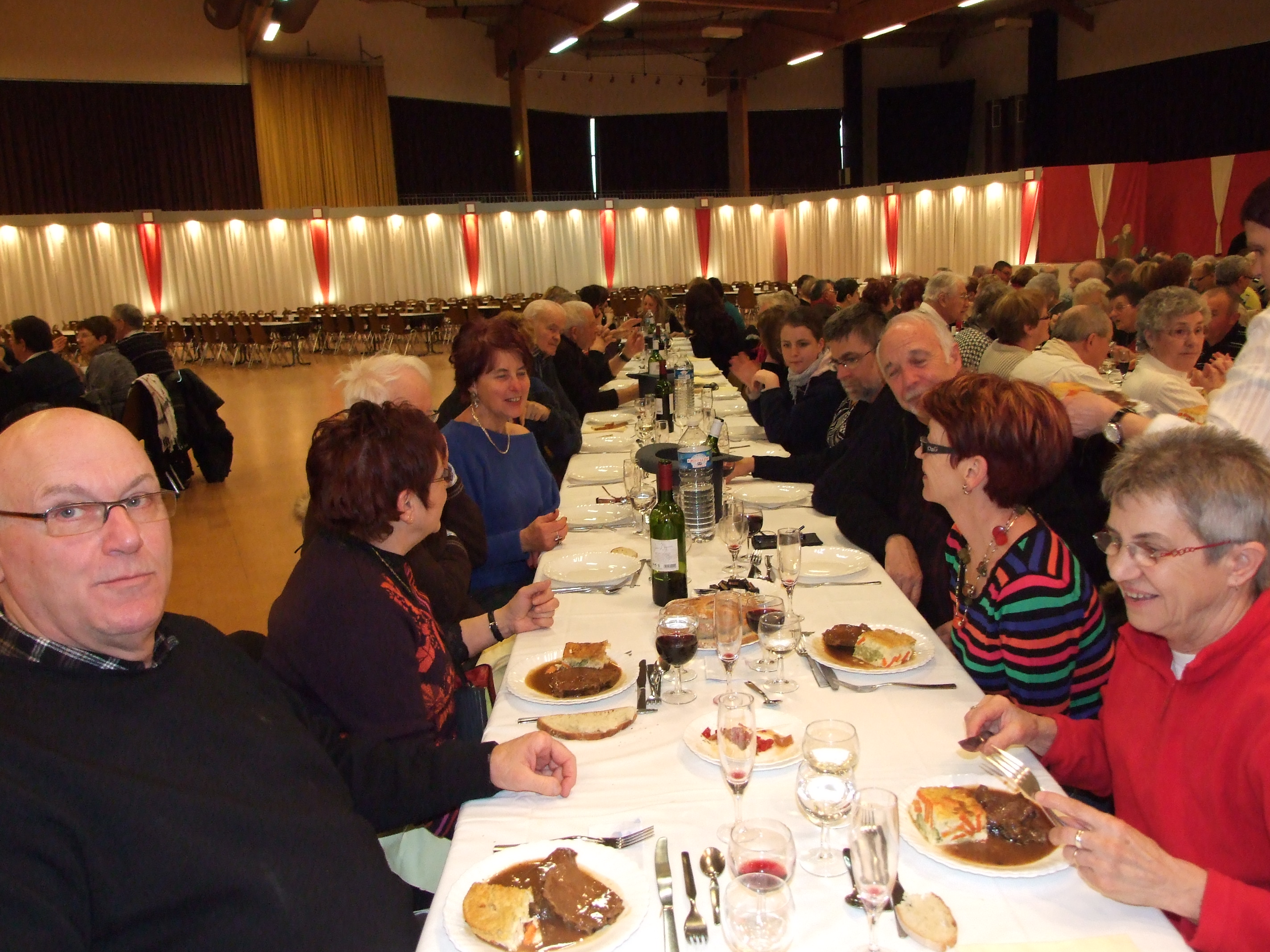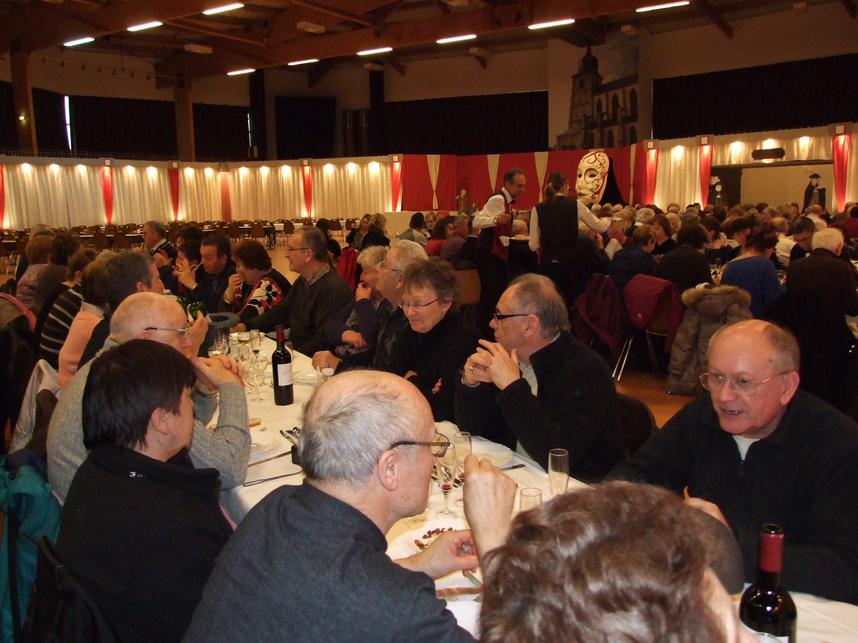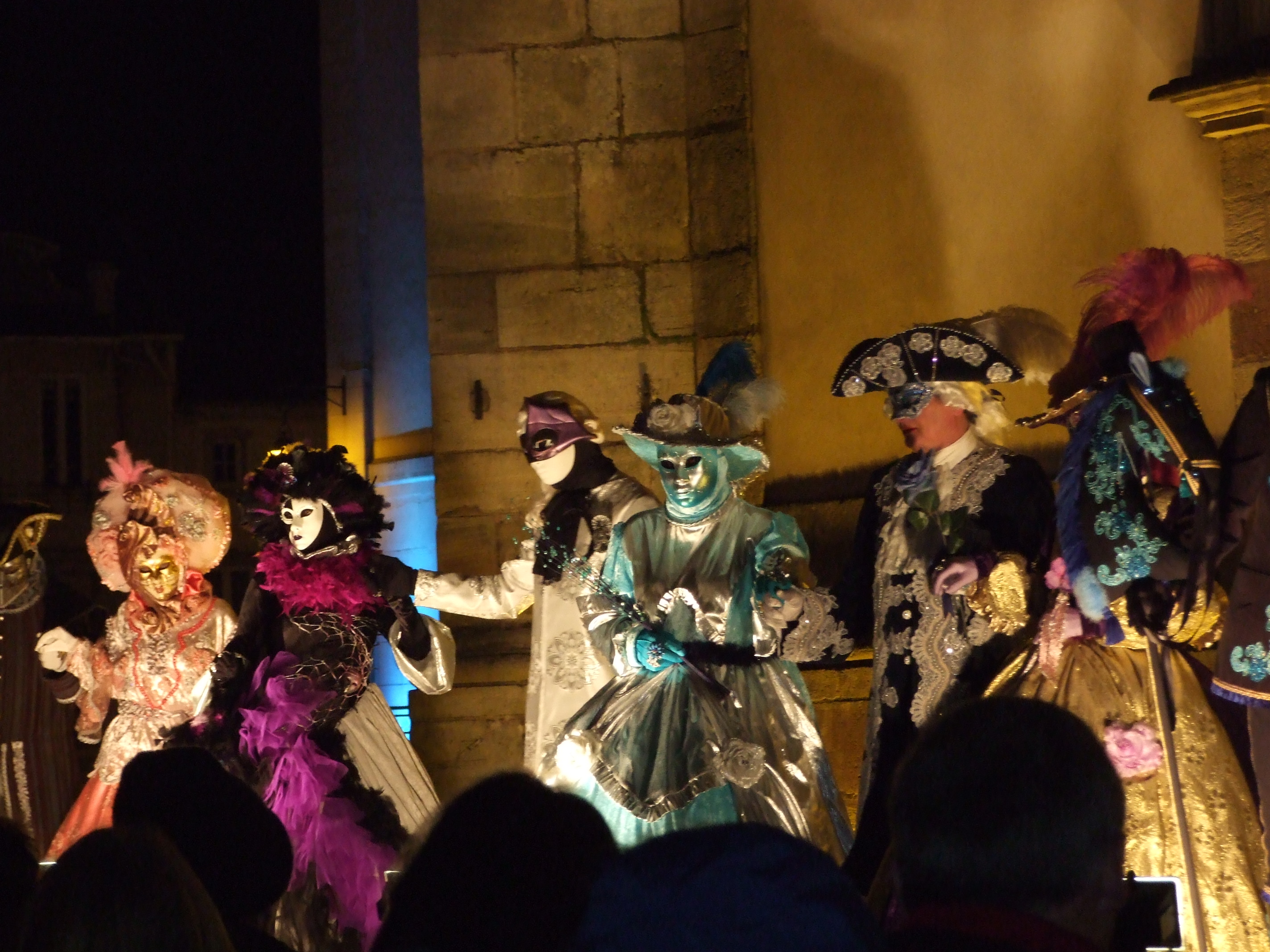 Au Palais des Congrès, le déjeuner servi a été très apprécié par les convives. L’après-midi, les costumés masqués défilèrent au milieu de la foule et du marché vénitien puis en soirée autour du palais abbatial et de l’église, dans un son et lumière du plus bel effet.