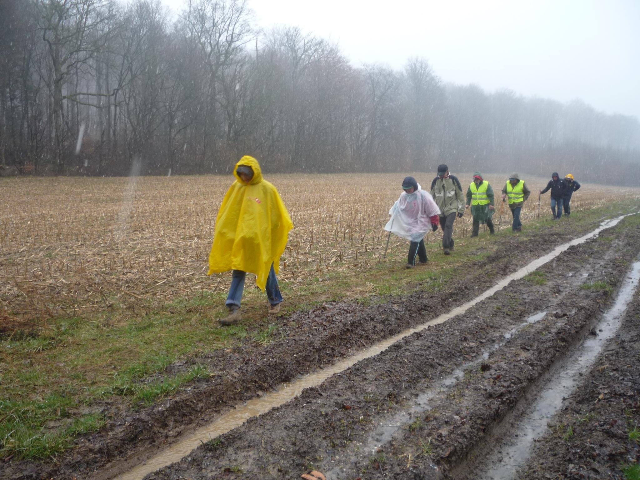 Empruntant, par un chemin boueux, le sentier historique des Bornes de la Principauté de Montbéliard, ils remarquent des sources encore actives. Arrivés à la Bourbeuse, ils passent devant une source pétrifiante. Son histoire détaillée figure sur le site de la commune de Bourogne. Tous ces valeureux randonneurs, trempés jusqu’aux os après avoir bravé des éléments peu ordinaires pour la saison, ont regagné leur voiture avec plaisir.