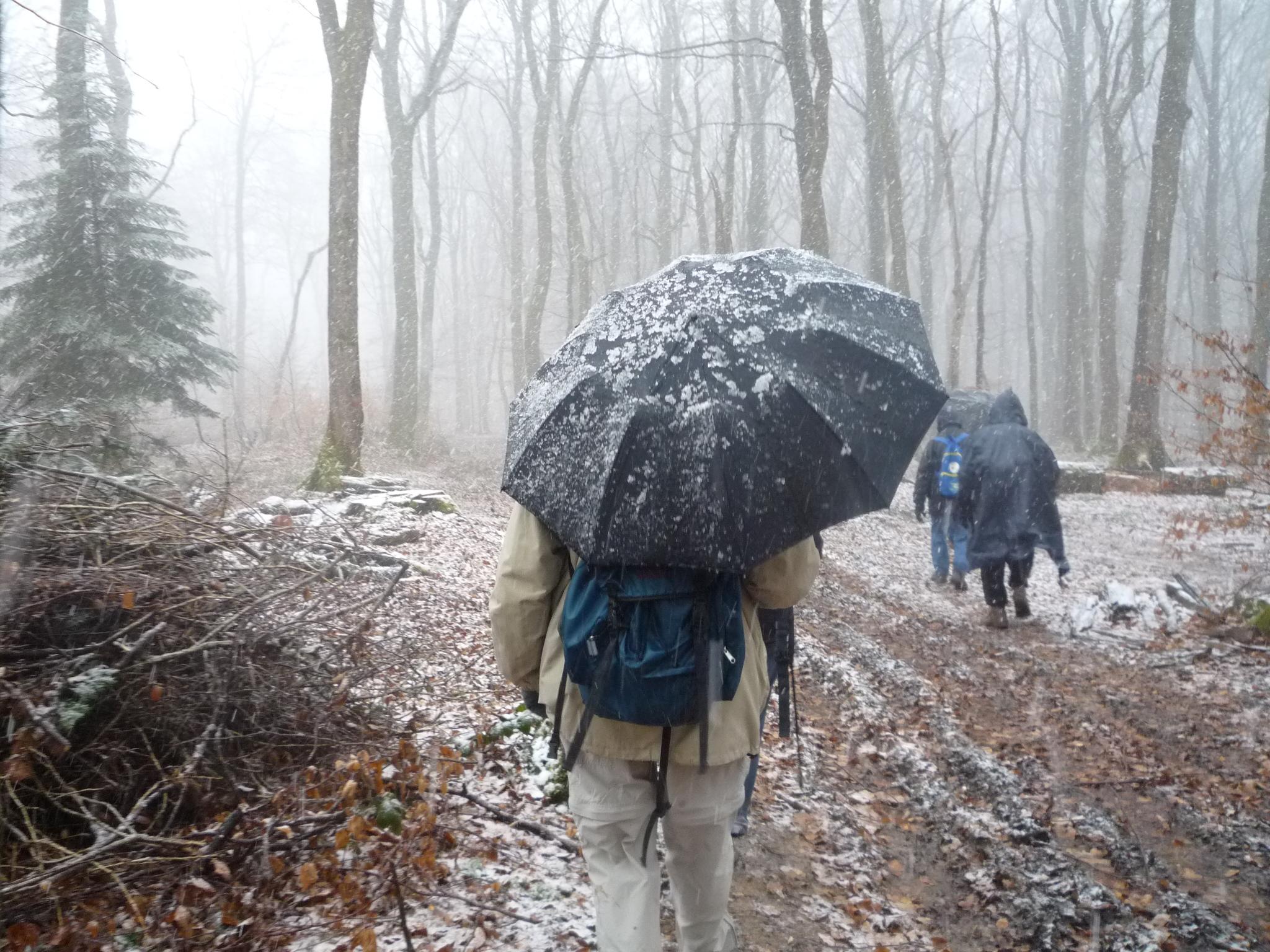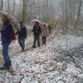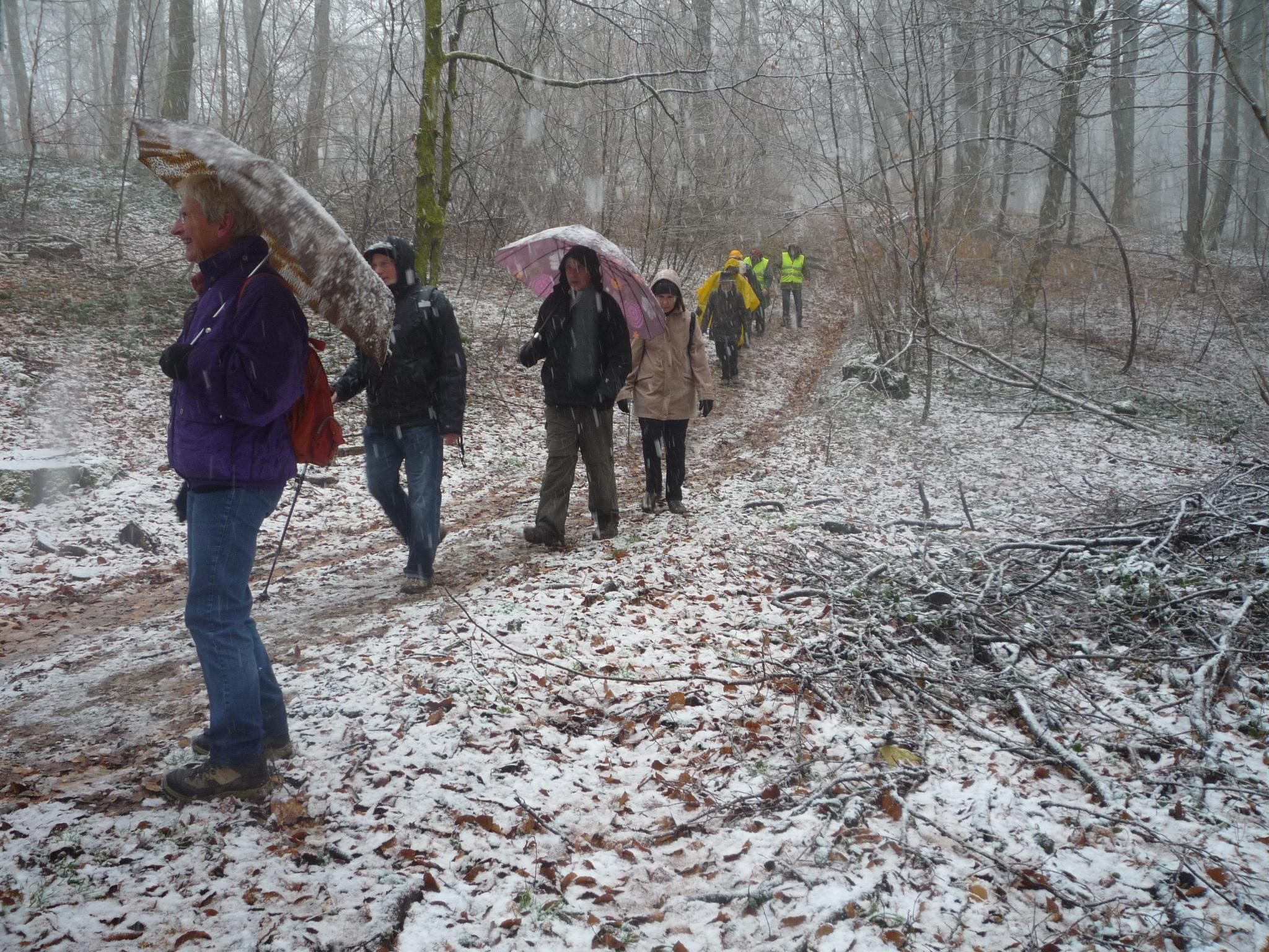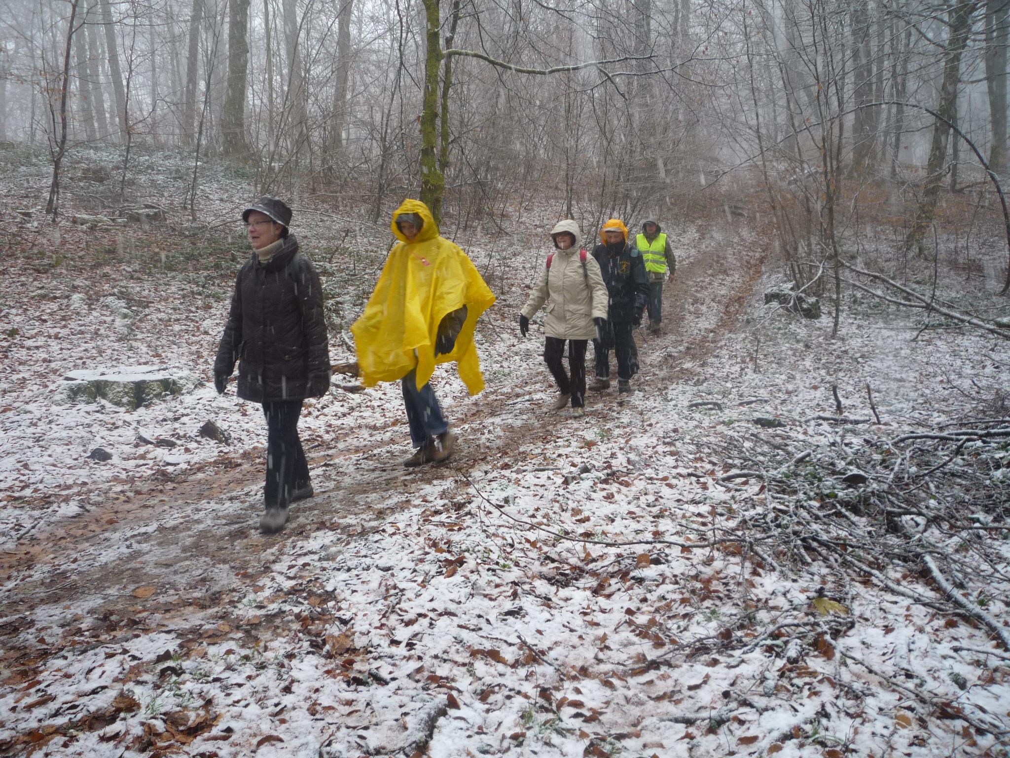Lors de la traversée du village, ils ont pu découvrir plusieurs lavoirs, datant pour certains de plus de 150 ans, rénovés et bien entretenus. En direction du Bois de la Duchesse, apparition de quelques gouttes de pluie, puis de la grêle suivie d’épais flocons de neige au moment de la descente vers le village de Trévenans.