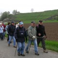 Sous la conduite d’Albert et René, nos deux guides du jour, nous démarrons du parking du Théâtre Romain de Mandeure pour cette première marche d’une journée. Ciel gris, sans pluie : direction le Belvédère de Mandeure. Après la montée la plus raide de la journée, nous passons à proximité de la Ferme Chassagne et arrivons à 12 h 30 au Belvédère pour la pause casse-croûte. Ciel gris toujours mais nous avons pu bénéficier d’un rayon de soleil au moment de repartir.