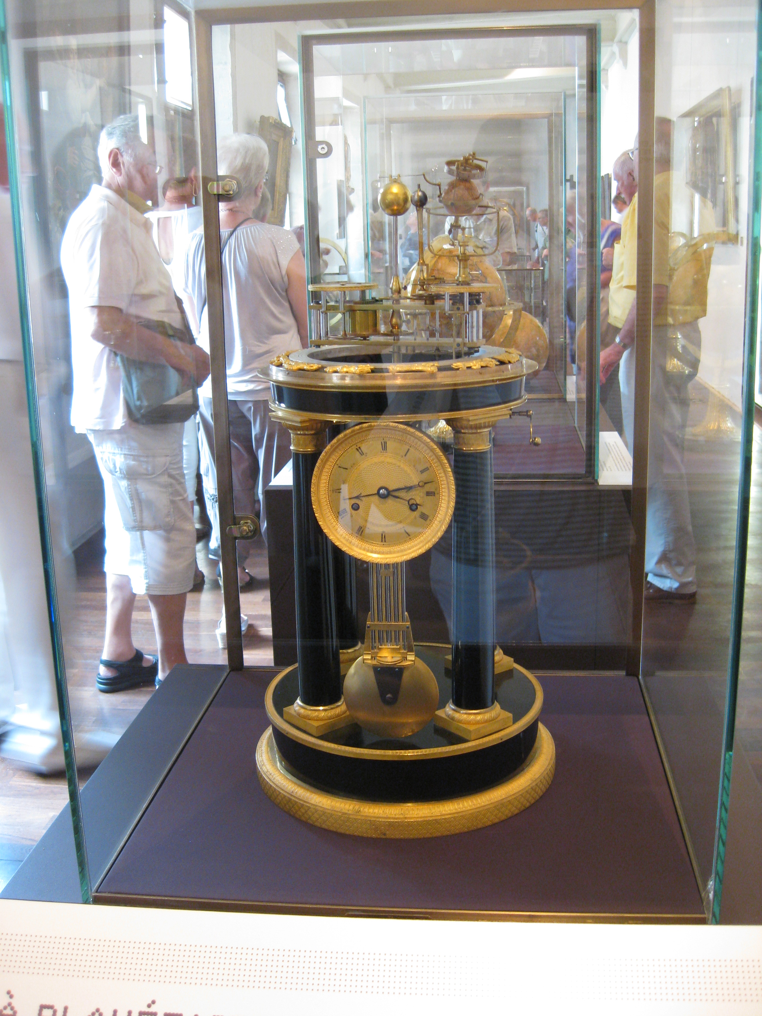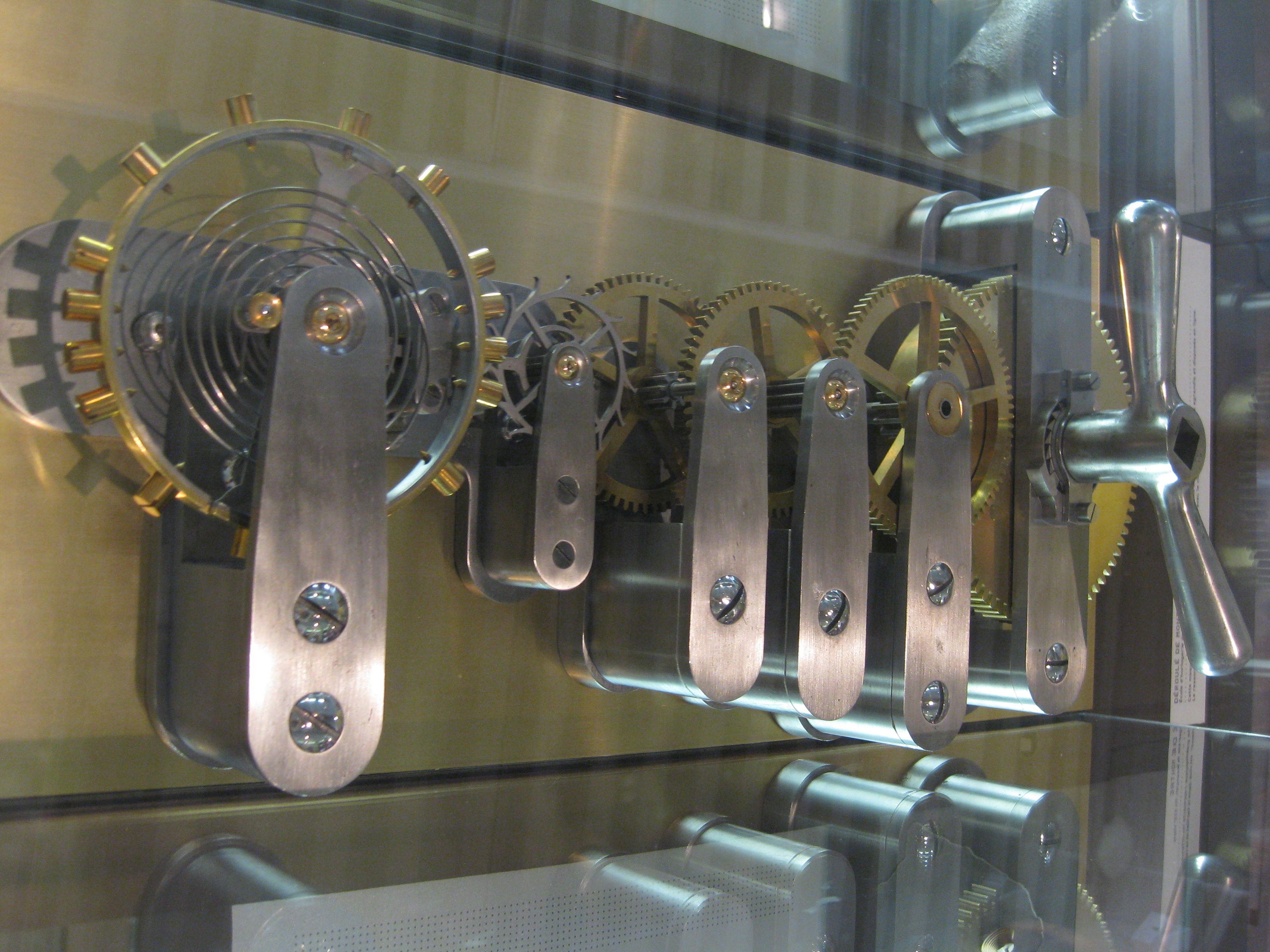 La capture du temps et le besoin de précision y sont montrés principalement par les évolutions successives des mouvements d’horlogerie qui ont amené à la montre à quartz (32 000 Hz) puis à l’horloge atomique au césium 133 (9 192 631 770 Hz).