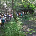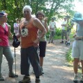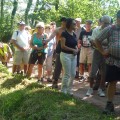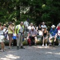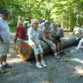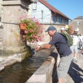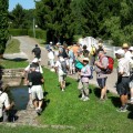Nous traversons le village, réputé pour ses nombreuses fontaines, en direction de la forêt. Elle nous préserve de la chaleur. Des panneaux nous font découvrir de nombreuses légendes de la Fée et les richesses locales : l’eau, le bois, le fer… Nous longeons de nombreux étangs avec de superbes chalets. La faune et la flore rappellent à beaucoup le merveilleux site des mille étangs.