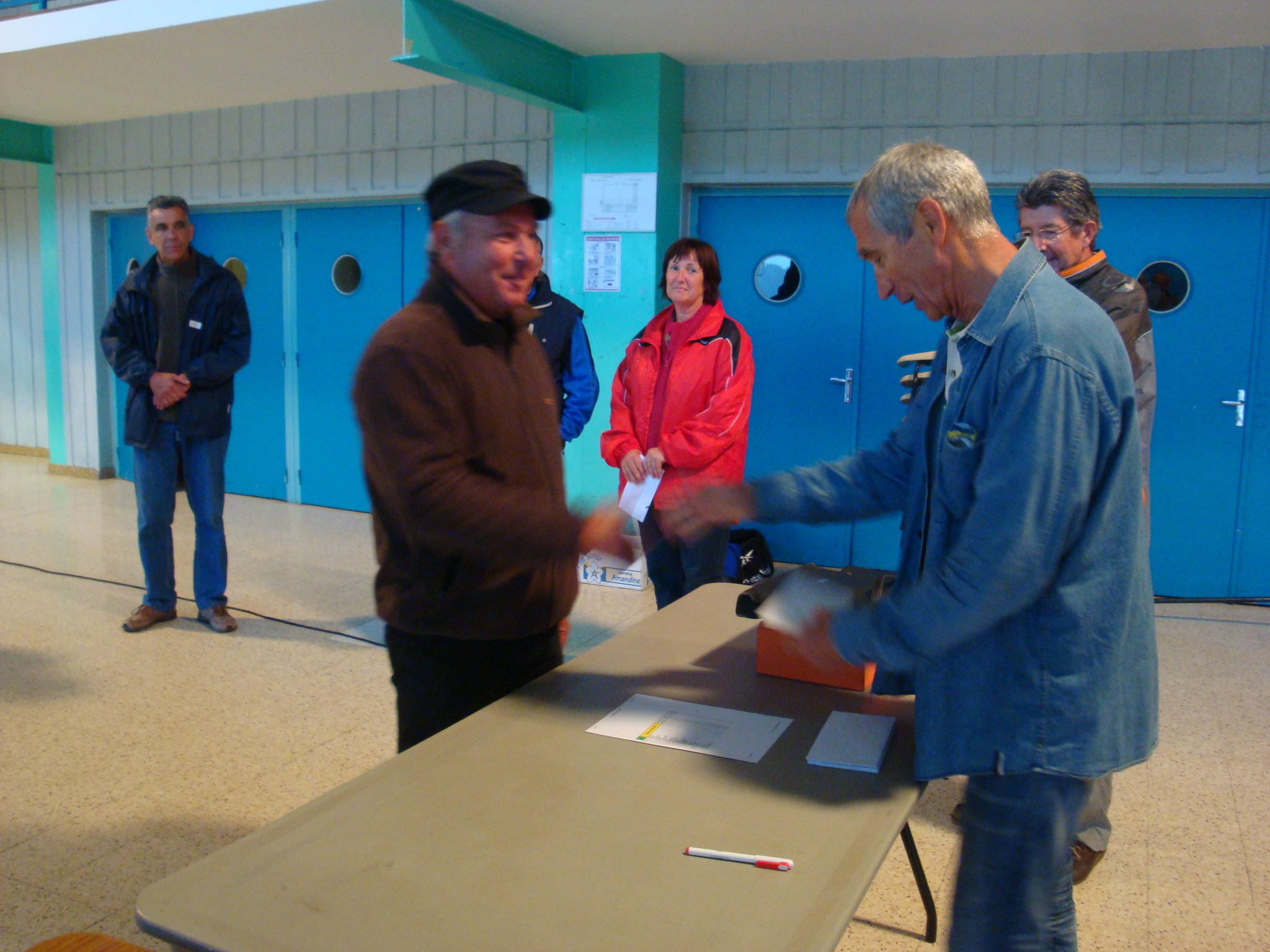 Nos boulistes les plus fidèles étaient présents, chaudement emmitouflés, leurs doigts gours serrant l’acier froid de la boule. Malgré la température frisquette et la bruine qui s’invitait parfois, tous sont parvenus au terme des 4 parties. Les plus constants ou plus chanceux se sont hissés aux premières places.