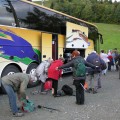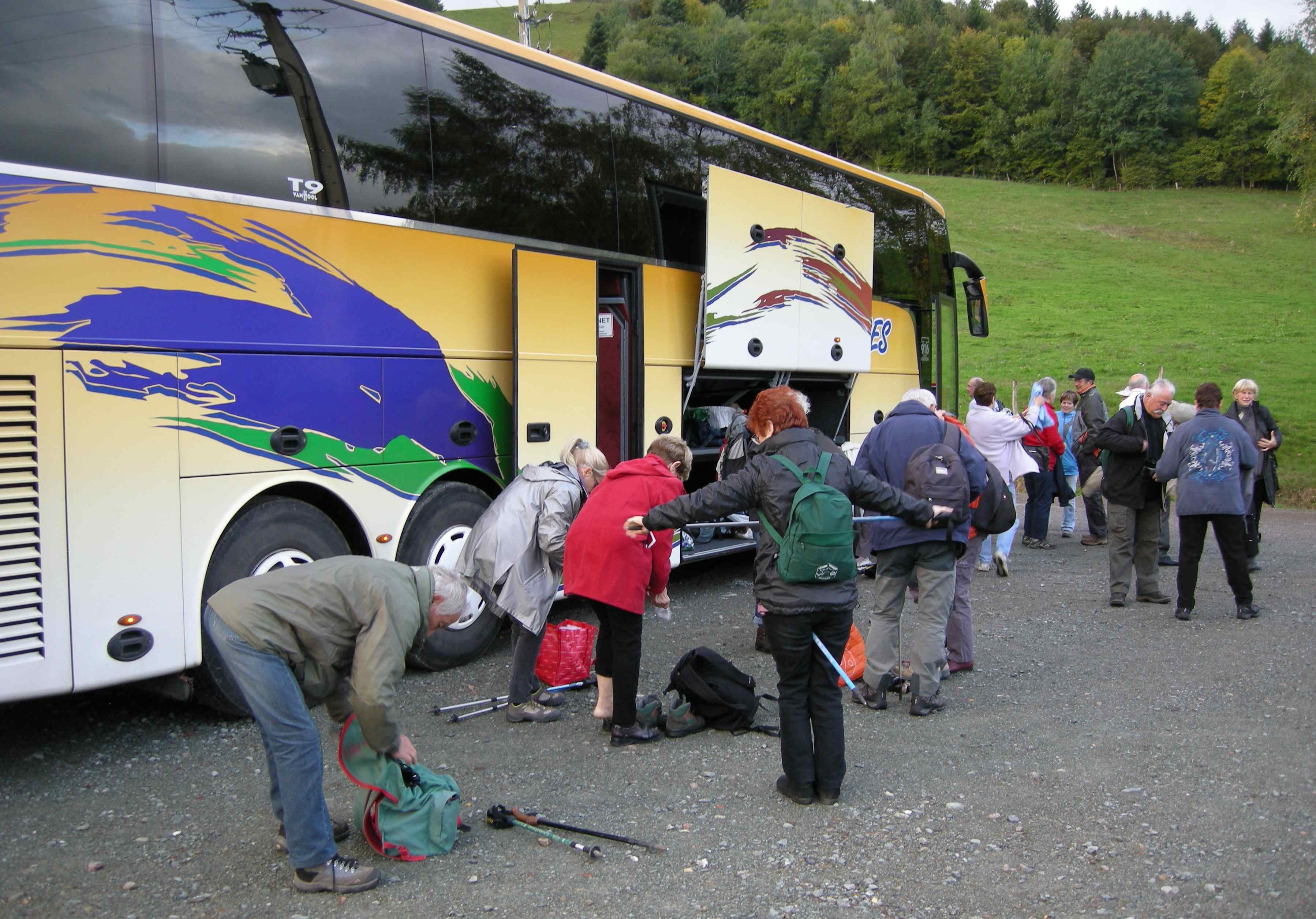 Deux groupes se constituent. Une vingtaine de personnes partiront en bus, avec Hervé le chauffeur et Jean Paul en tant que guide accompagnateur, pour une petite marche autour lac d’Alfeld. Les 33 marcheurs qui entreprendront la randonnée difficile s’équipent.