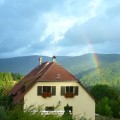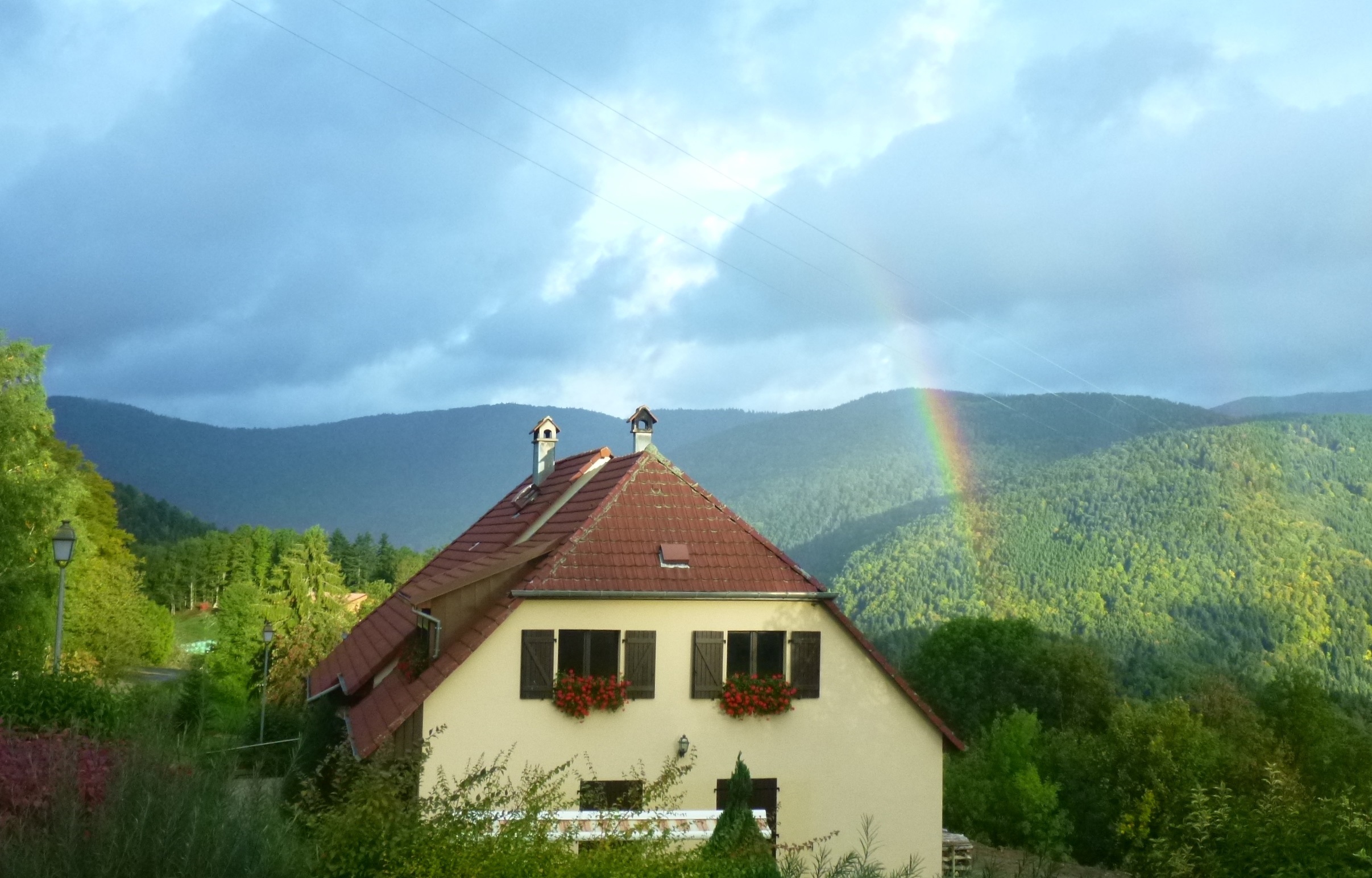 Notre arrivée sur le parking de l’Auberge du Schlumpf est saluée par un arc-en-ciel.