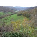 Nous empruntons une partie du Sentier du Lomont, sous un ciel gris mais par un temps agréable et une température clémente pour un mois de novembre (17°). Nous apercevons une partie des Éoliennes avant d’arriver au sommet du Petit Lomont d’où nous découvrons un beau point de vue sur la vallée (les Essarts, le Pré de Rochedane, ceux de la Motte…). Nous continuons à monter jusqu’à 570 m puis nous entamons la descente en direction de Neuchâtel Urtière.
