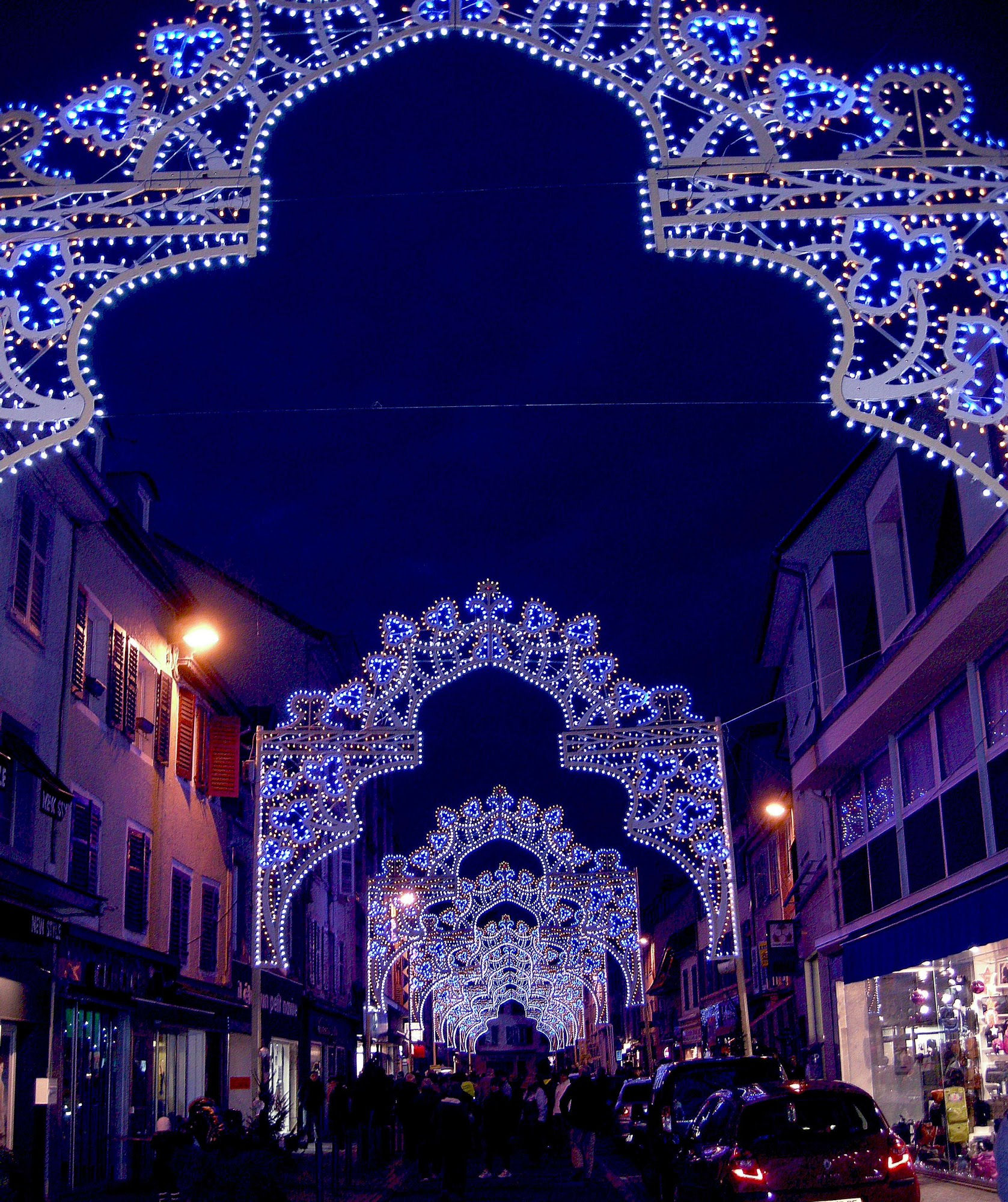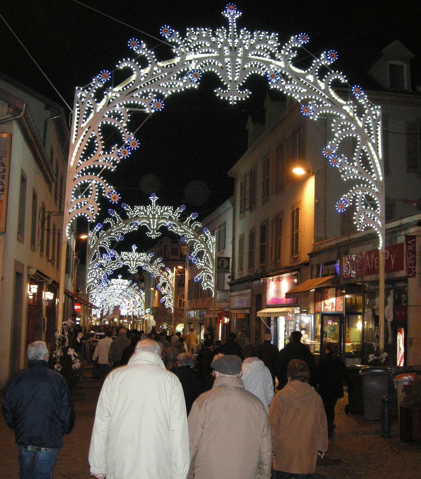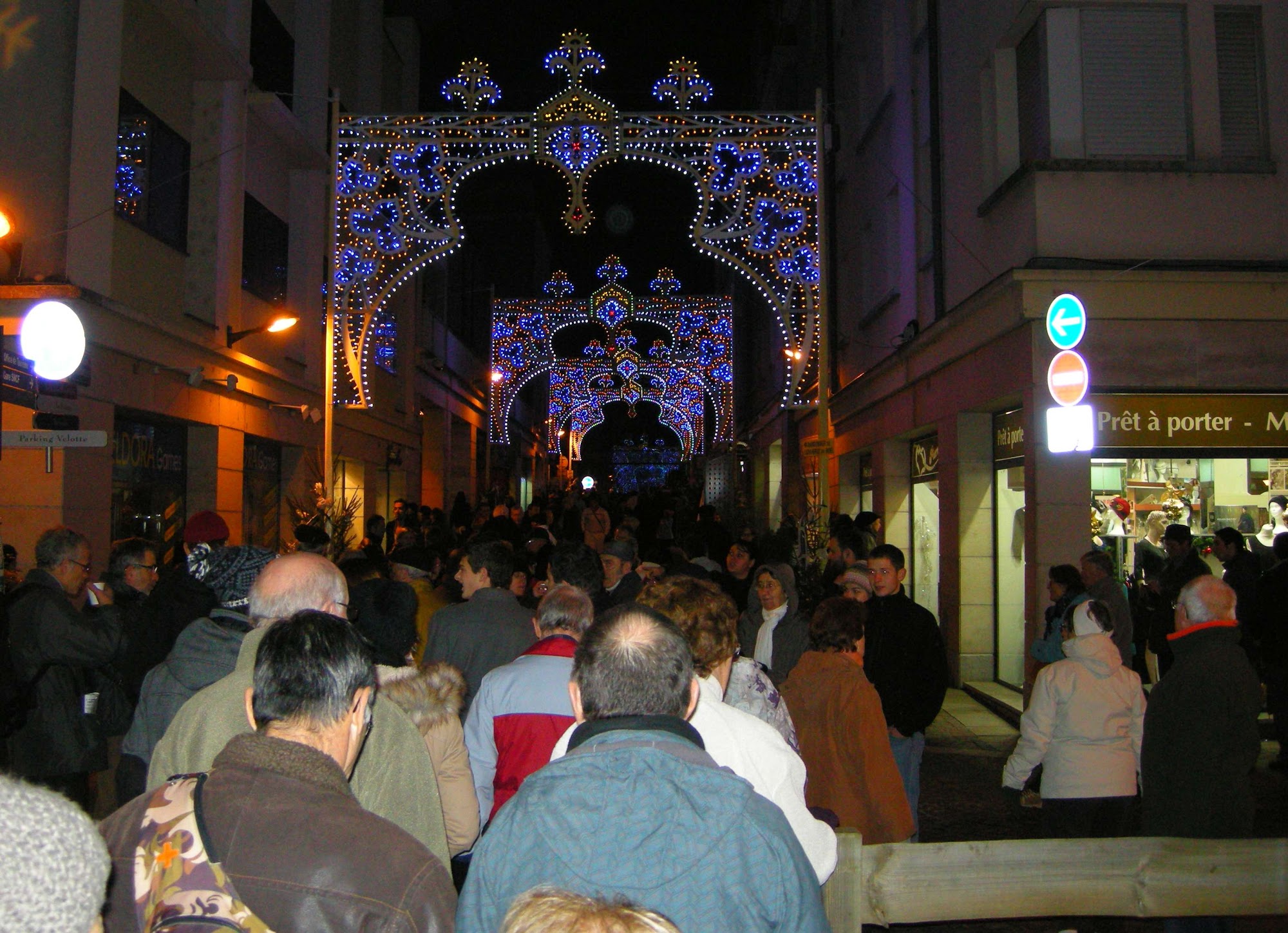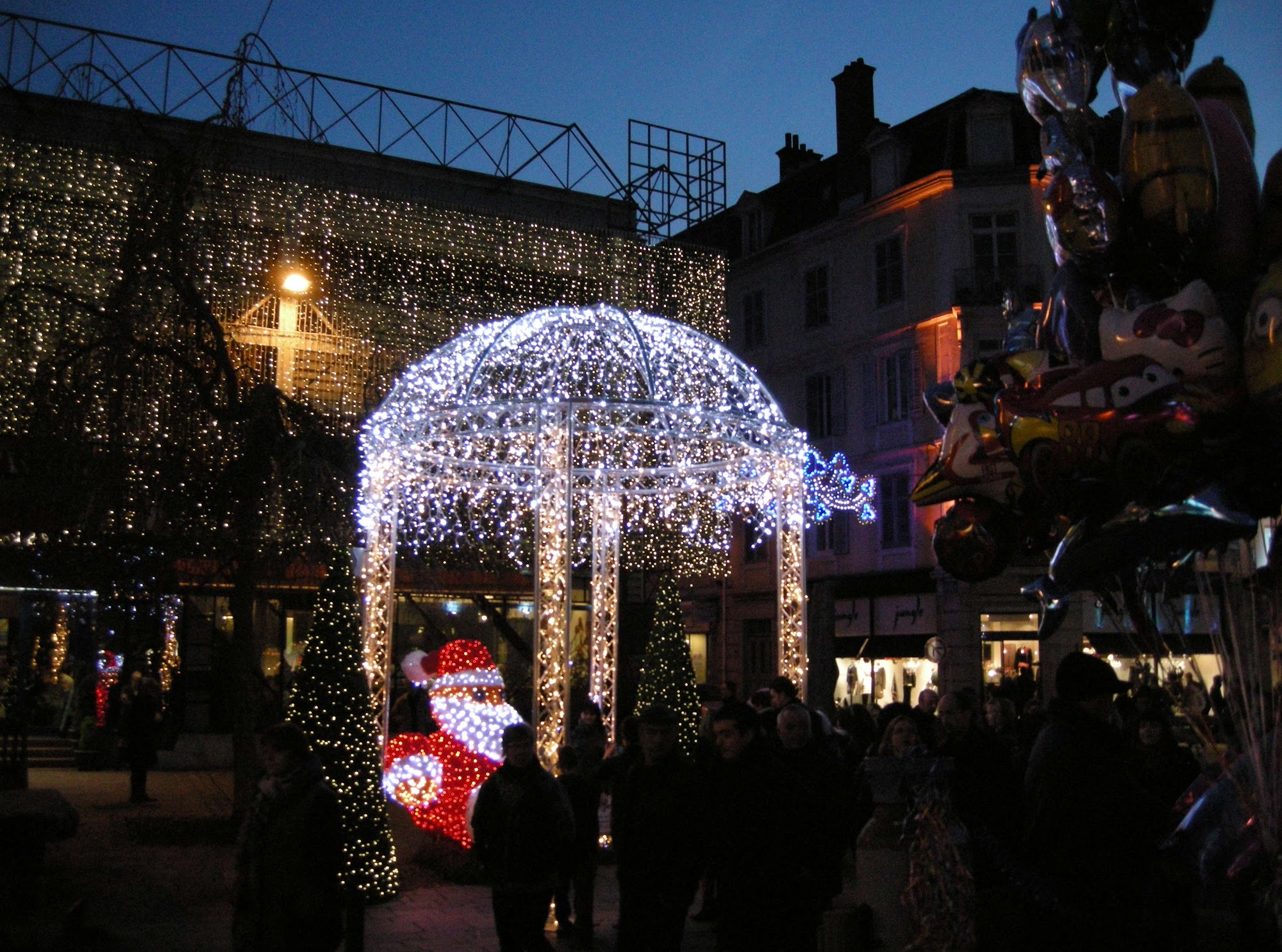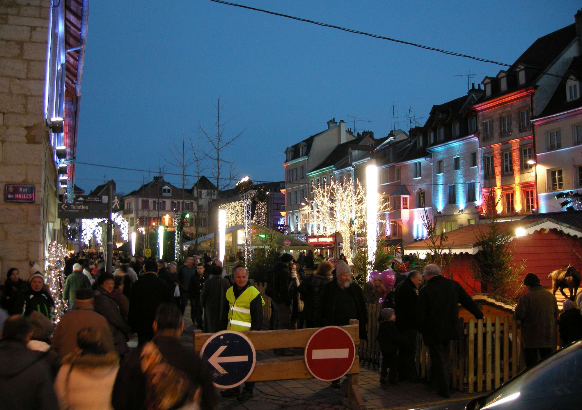 Nous abordons le Marché de Noël en passant par la très animée place des Halles et la rue Clémenceau. Poursuite en direction de la Médiathèque, puis de la passerelle qui enjambe la voie ferrée, avant d’atteindre les abords de la Combe aux Biches et du lycée Cuvier. La descente menant au Parc du Prés-la-rose via le Pavillon des sciences nous offre une vue féérique sur le château.
