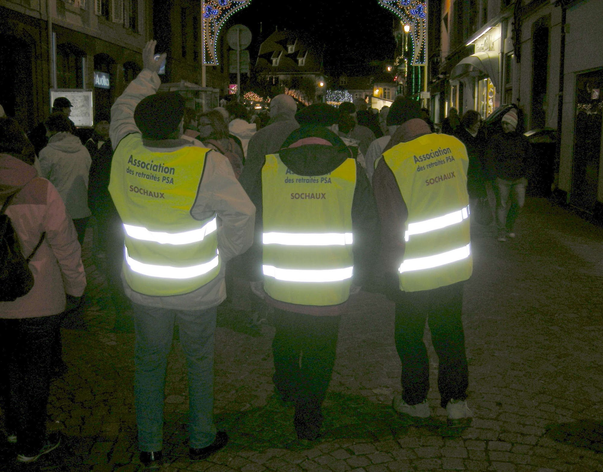 Après avoir emprunté la rue de Belfort, nous rejoignons le château, à l’intérieur duquel nous attendent le deuxième contrôle et un pot amical. Sur la place St-Martin superbement illuminée, nous nous frayons un passage parmi les nombreux visiteurs du Marché de Noël avant de regagner la Roselière vers 19 h 15.