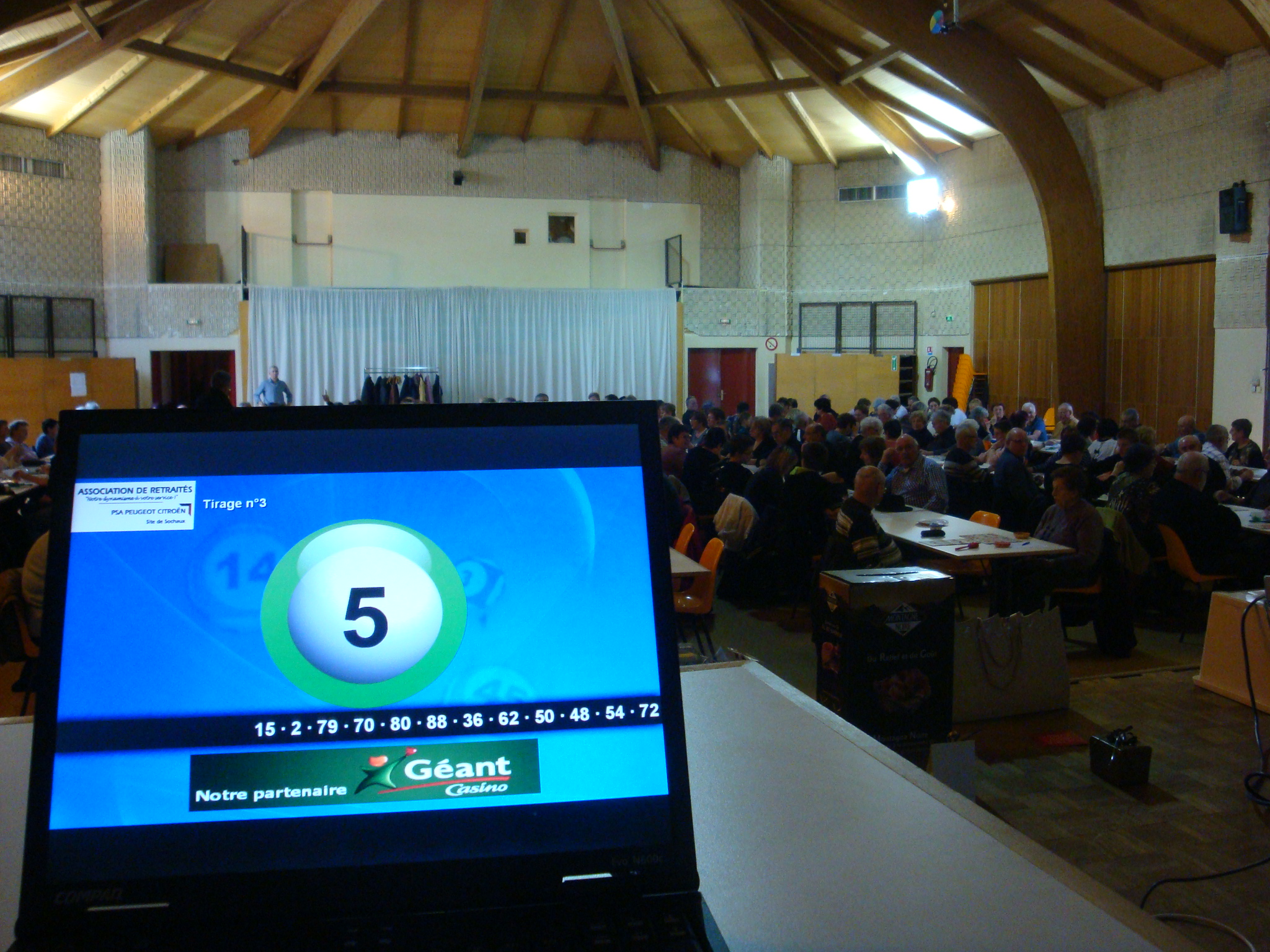 Bien que le soleil printanier incitait à une promenade de santé, cent quatre-vingts adeptes du loto ont répondu à notre invitation ce mercredi 5 mars 2014 à la salle de fêtes de Sainte-Suzanne. Une telle fidélisation est notre récompense.
