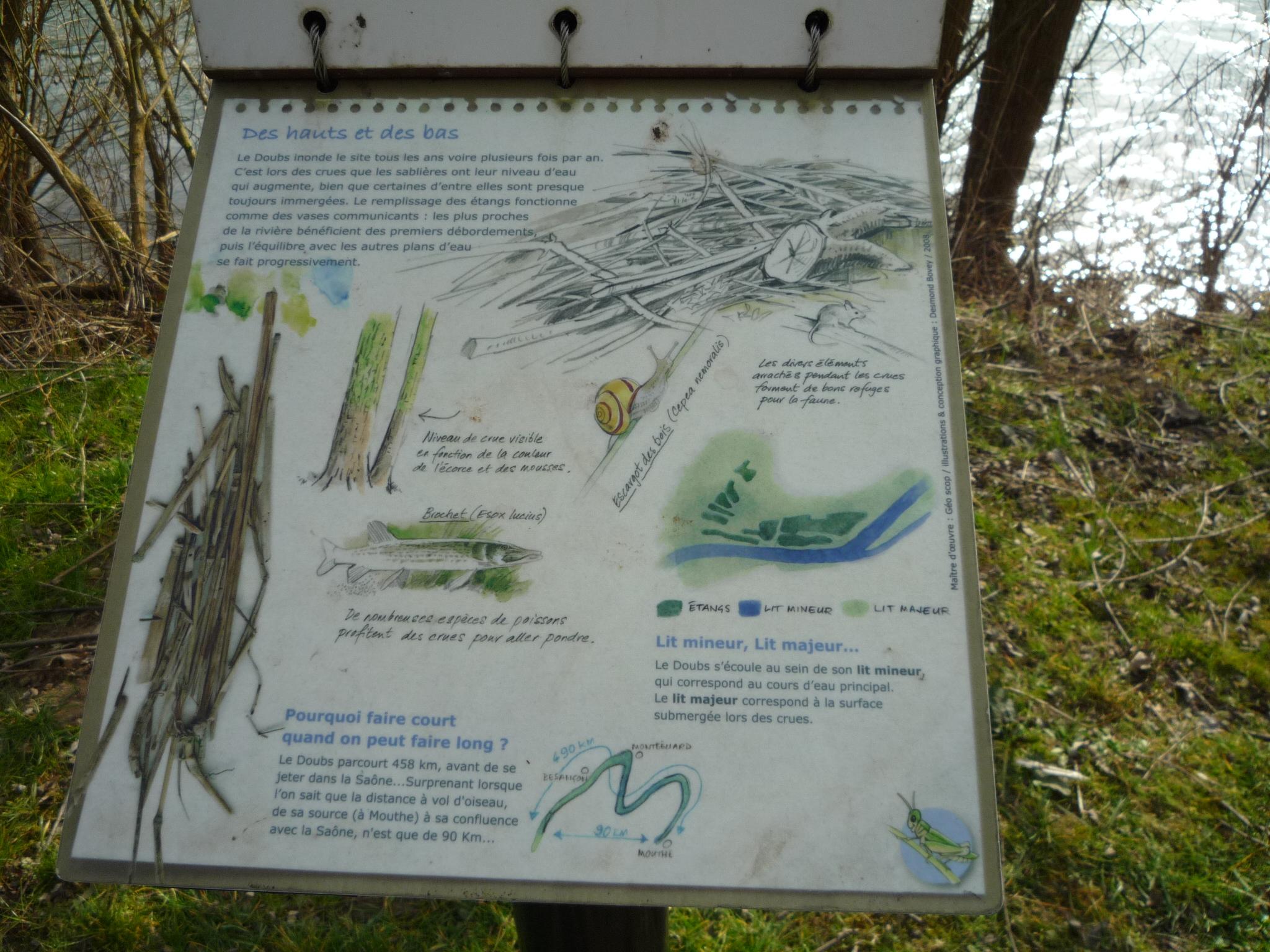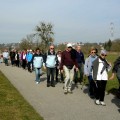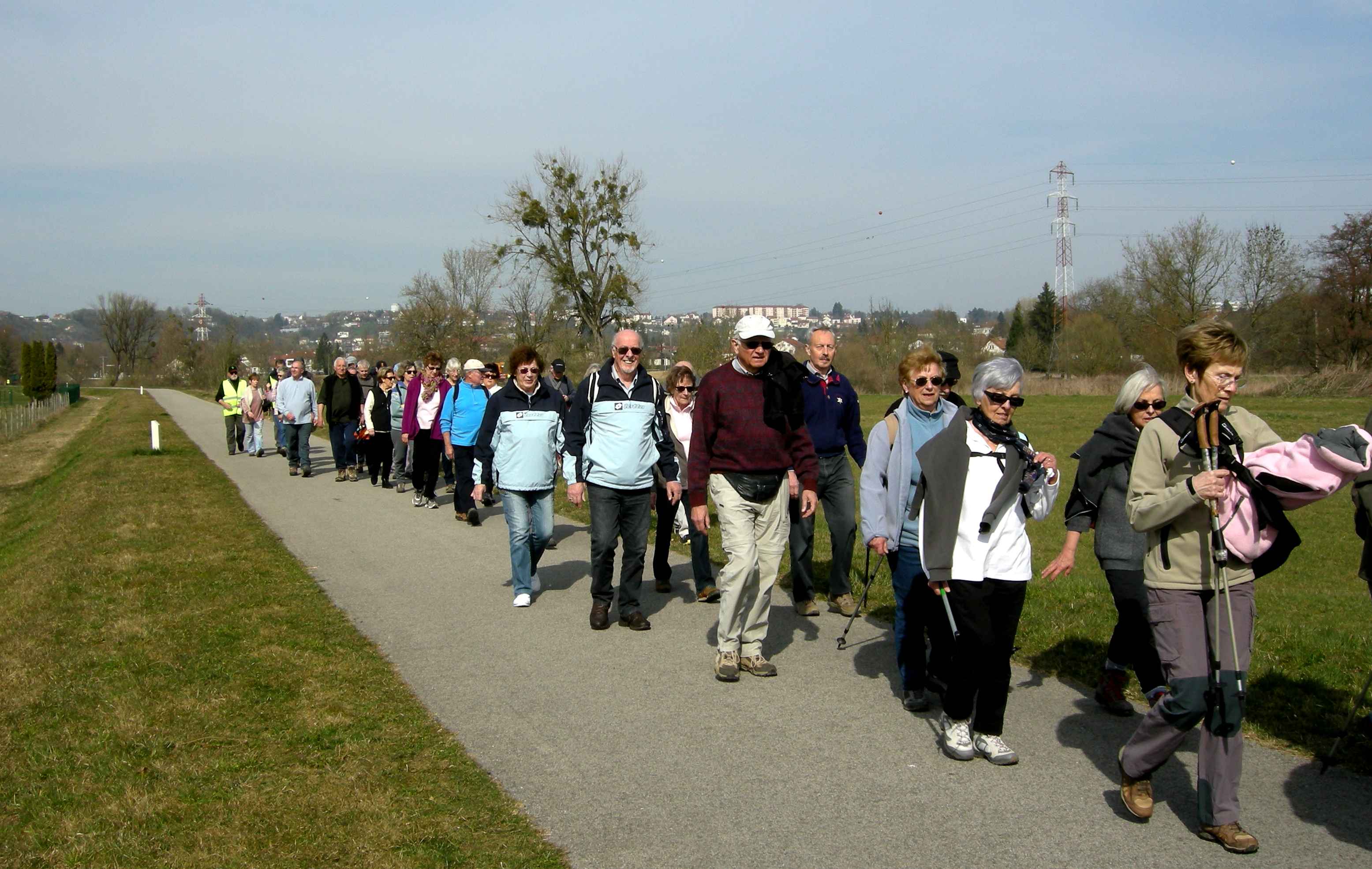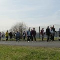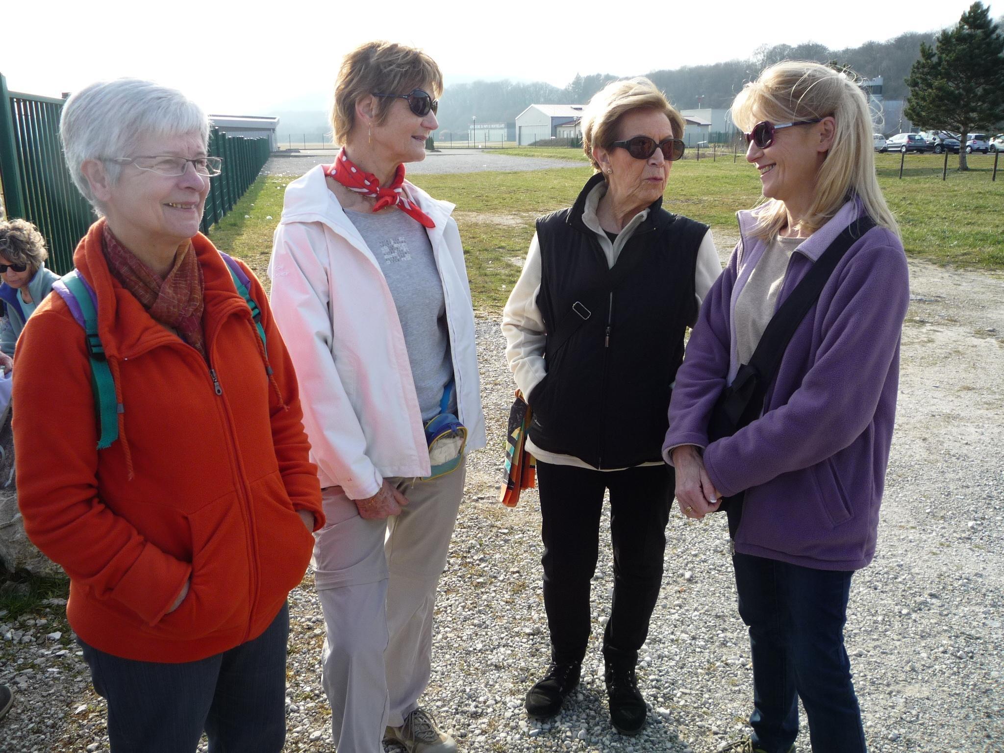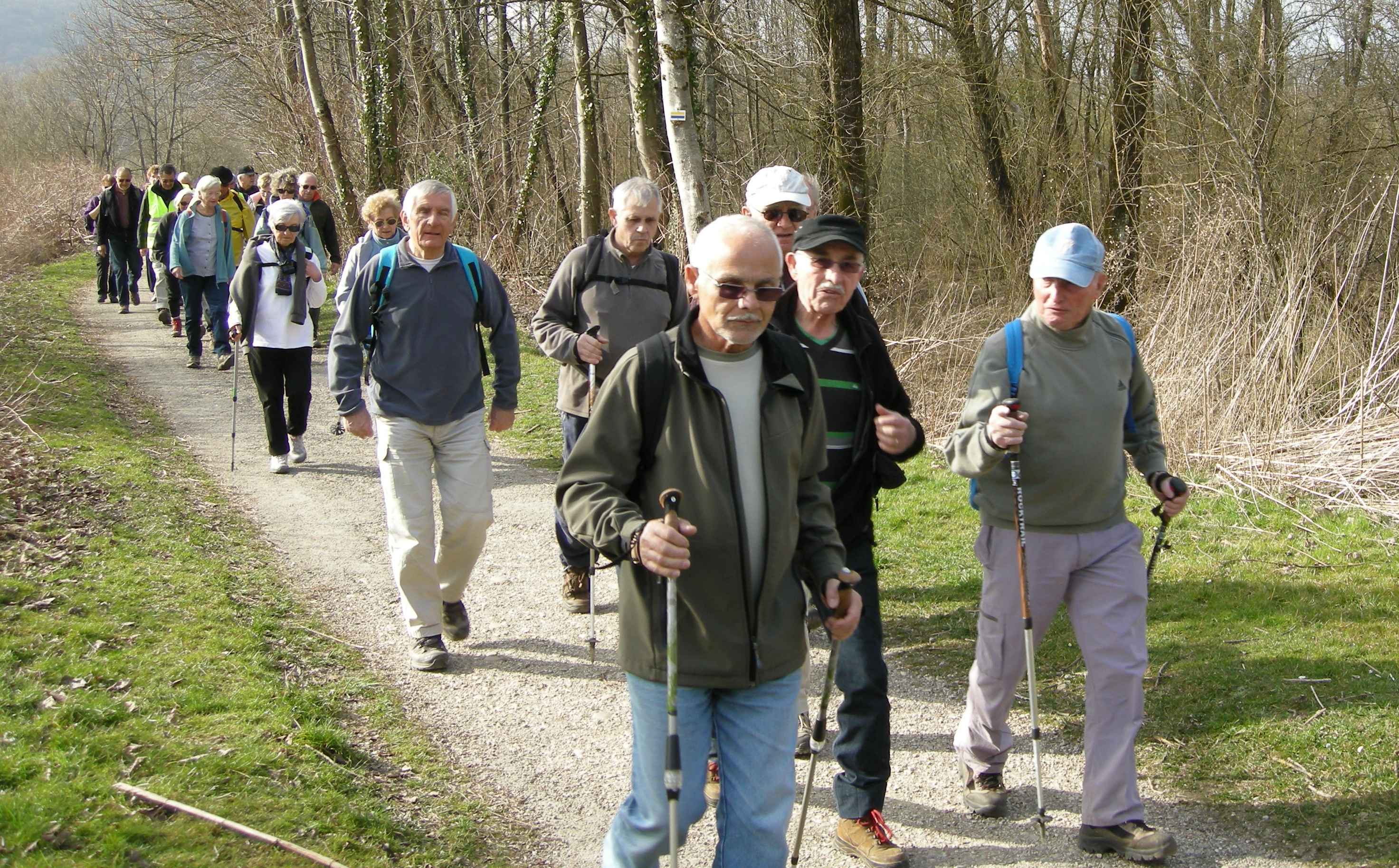 Sous la conduite de Pierre et Michel, bien en ligne, nous suivons l’Allan sur le chemin de halage jusqu’au port de Voujeaucourt. Nous longeons ensuite le canal avant une première pause. Du parcours de santé jusqu’à l’aérodrome de Courcelles que nous contournons, nous rencontrons de nombreux promeneurs qui profitent du printemps avant l’heure.