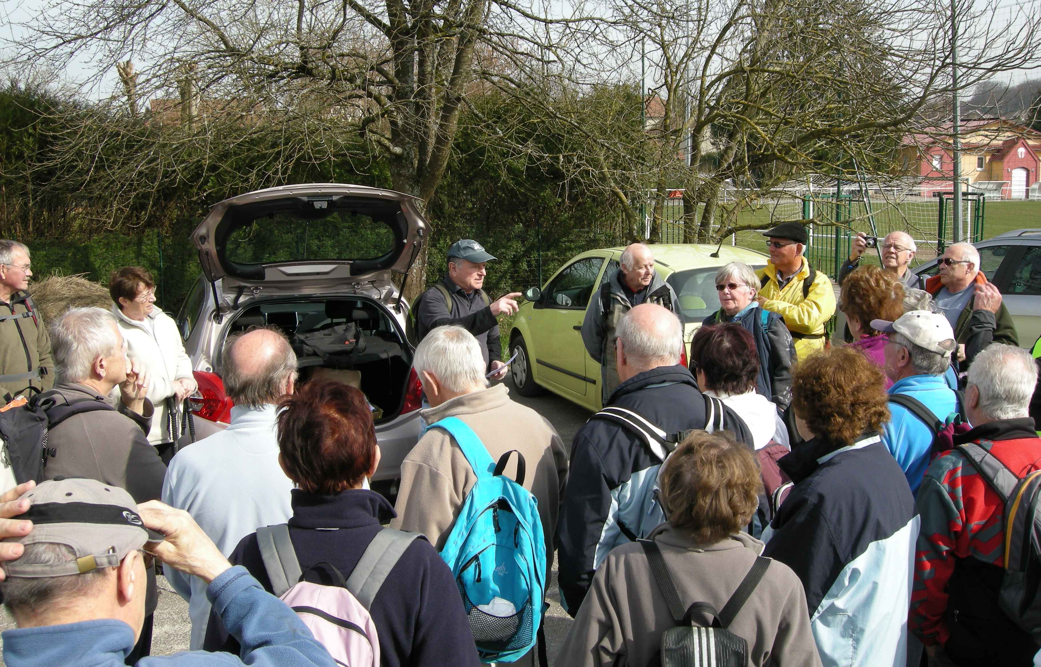 Par un temps très agréable, sous le soleil, nous nous retrouvons sur le parking du stade de football de Courcelles pour cette première randonnée de l’année.