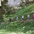 Nous passons devant le stand de tir avant d’aborder la montée la plus importante de l’après-midi, avec 200 m de dénivelé. Une halte permet au groupe de se désaltérer et de récupérer, après avoir si bien négocié cette montée. Nous atteignons le point culminant du Pré au Sire. Petite pause à nouveau, regroupement puis direction le Pont Sarrazin.