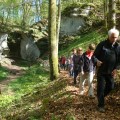Sous la conduite d’Albert et René, nous quittons le parking de la Mairie d’Hérimoncourt pour nous diriger vers le Pont Sarrazin, point culturel de notre randonnée.