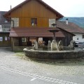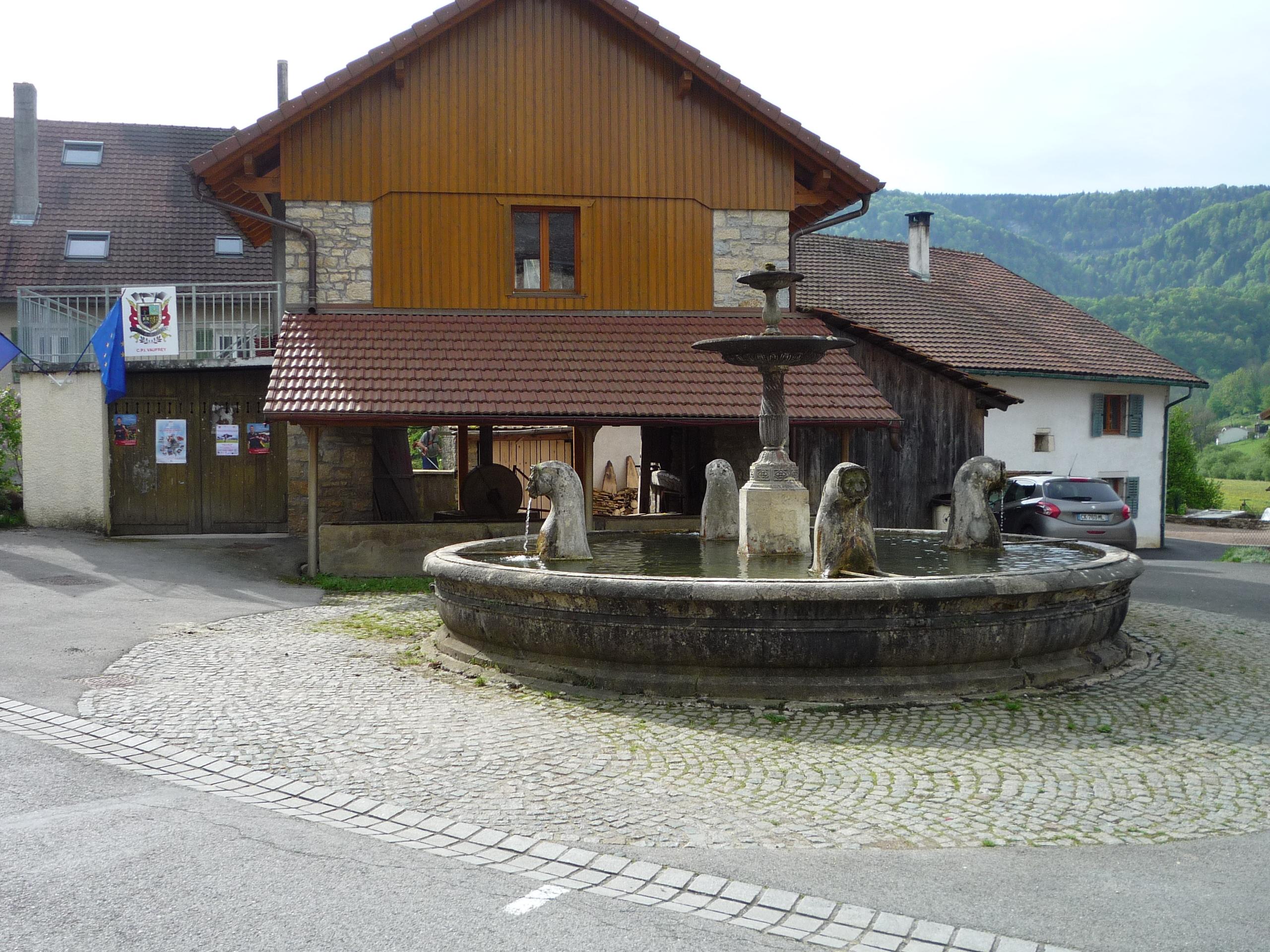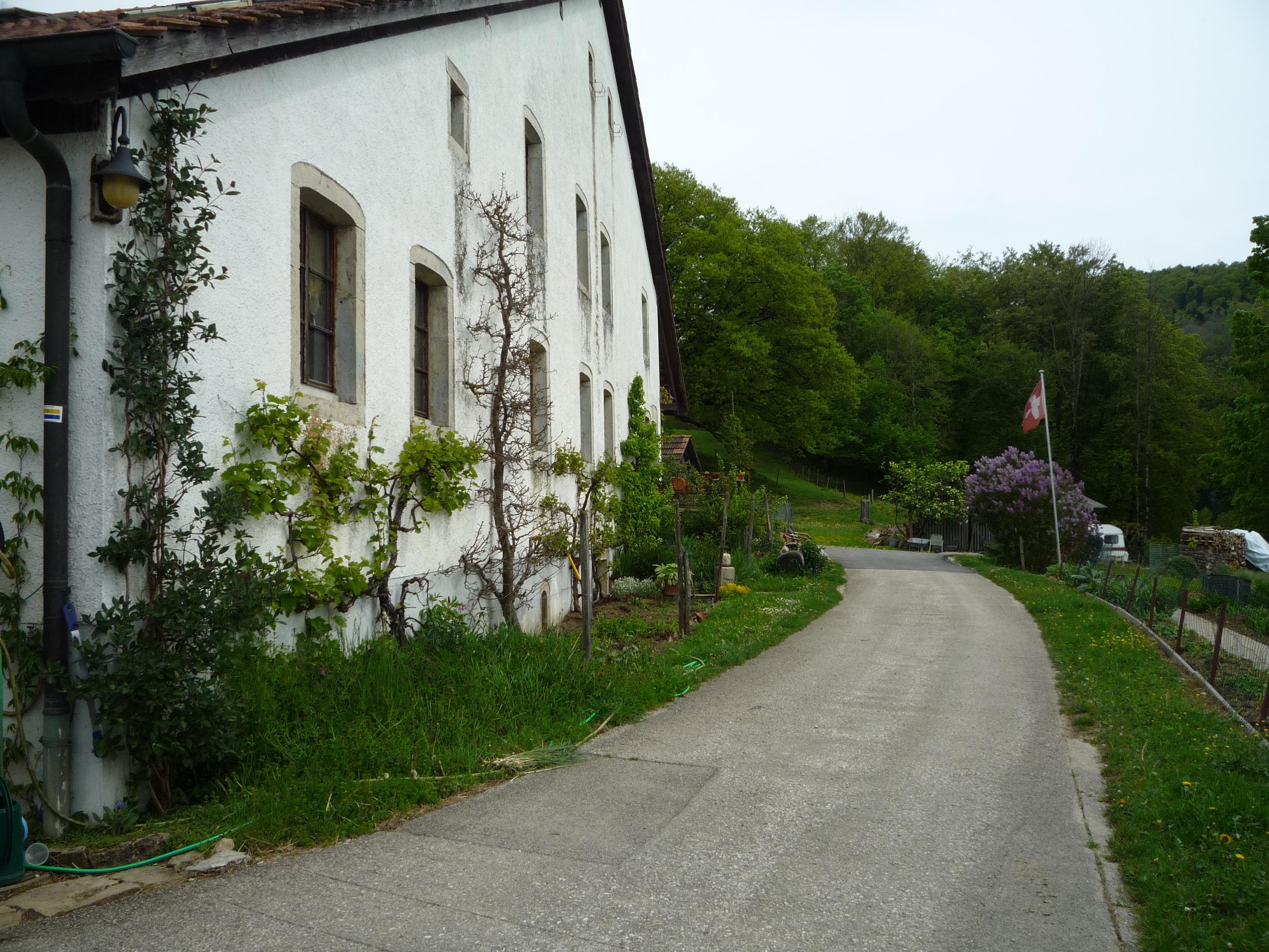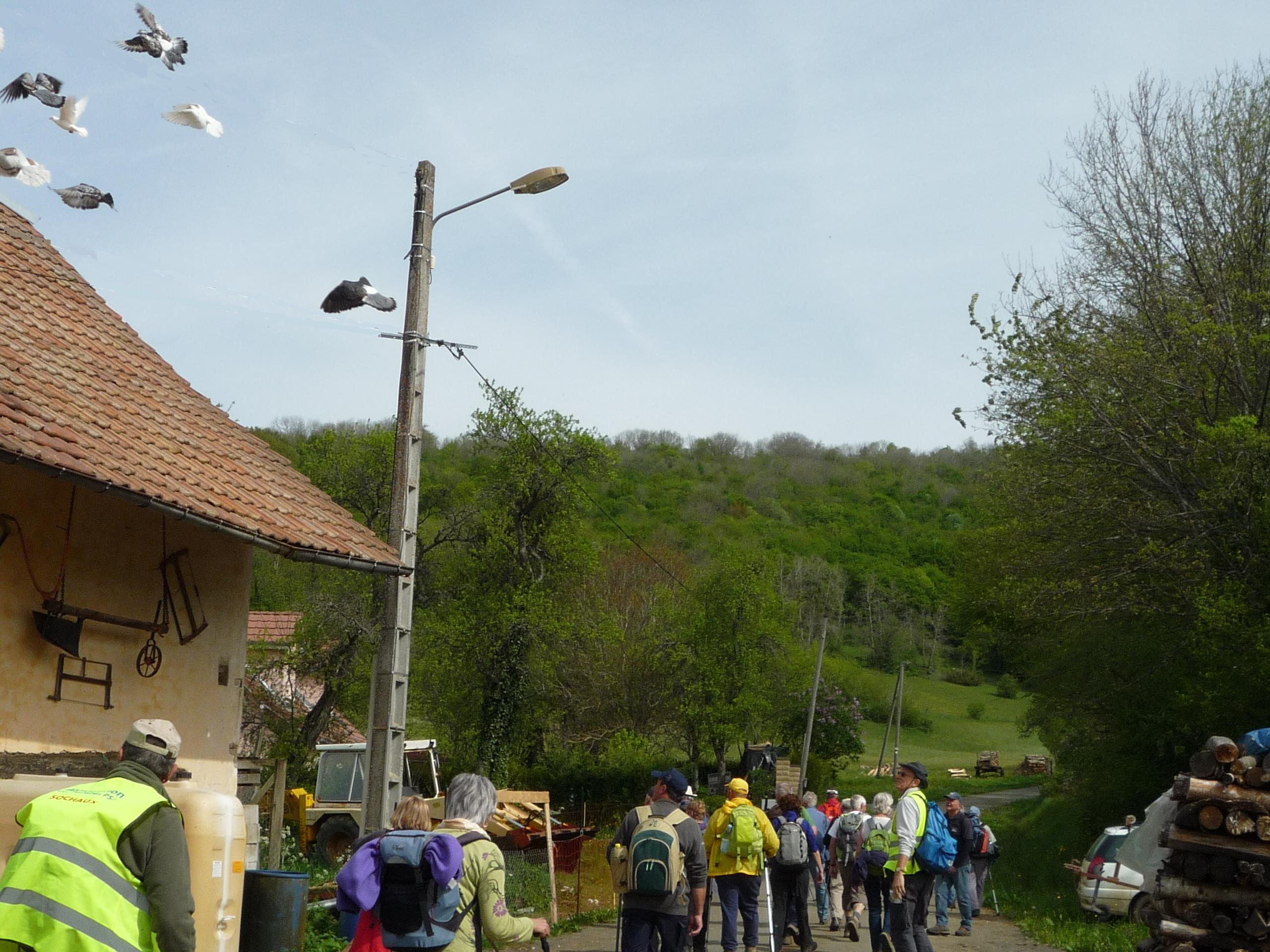 La montée est raide pour atteindre Montursin et la Crête. Nous traversons le village, d’où quelques photos d’une envolée de pigeons blancs et autres volatiles sont prises, puis nous continuons de monter jusqu’à la ferme de la Vaux. Nous longeons un chemin qui se transforme en lit de torrent. Il nous conduit à la ferme de Montavon et ses animaux : un régal pour les photographes du groupe.