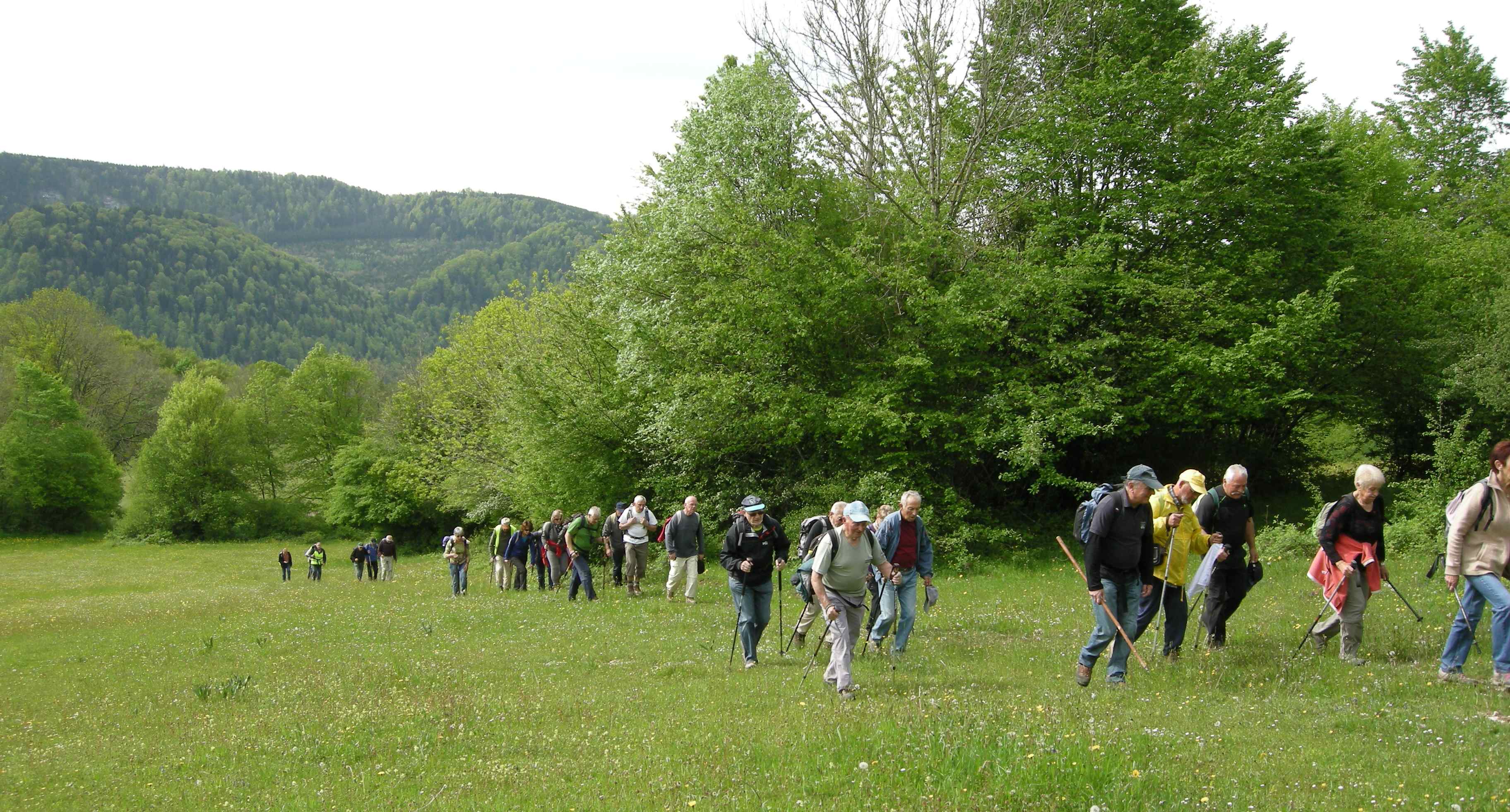 Mardi 6 mai, le temps est idéal à Vaufrey pour prendre le départ de cette randonnée difficile, sous la conduite de René aidé par Albert.