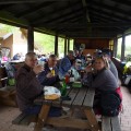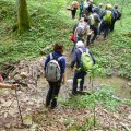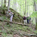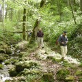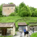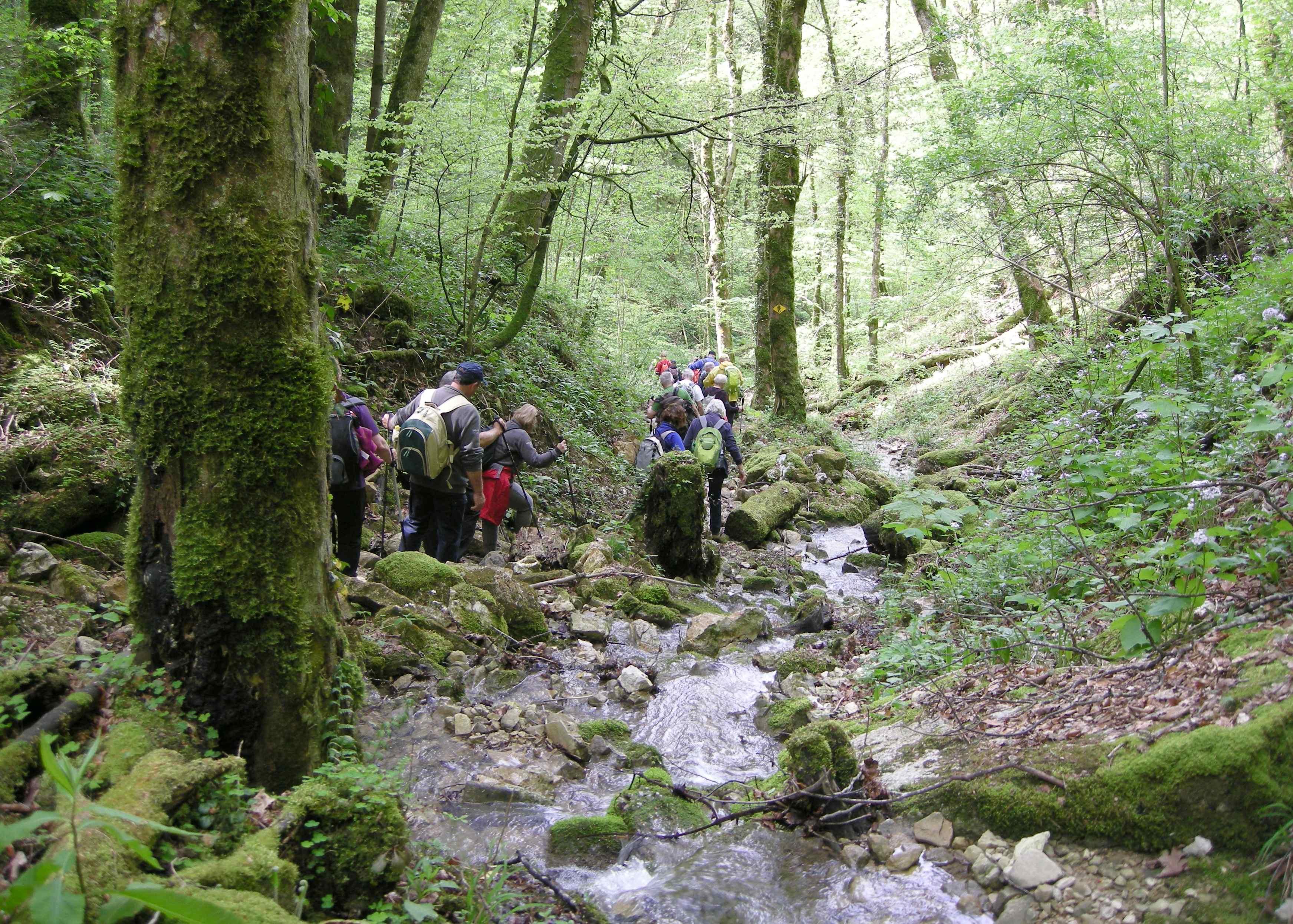 Le poste de douane de Réclère passé, nous arrivons près des célèbres grottes et du parc préhistorique. Un endroit aménagé s’offre aux randonneurs pour profiter d’une pause et du casse-croûte. Après ce moment convivial, quelques-uns se rendent à l’entrée du parc, très accueillante et bien documentée.