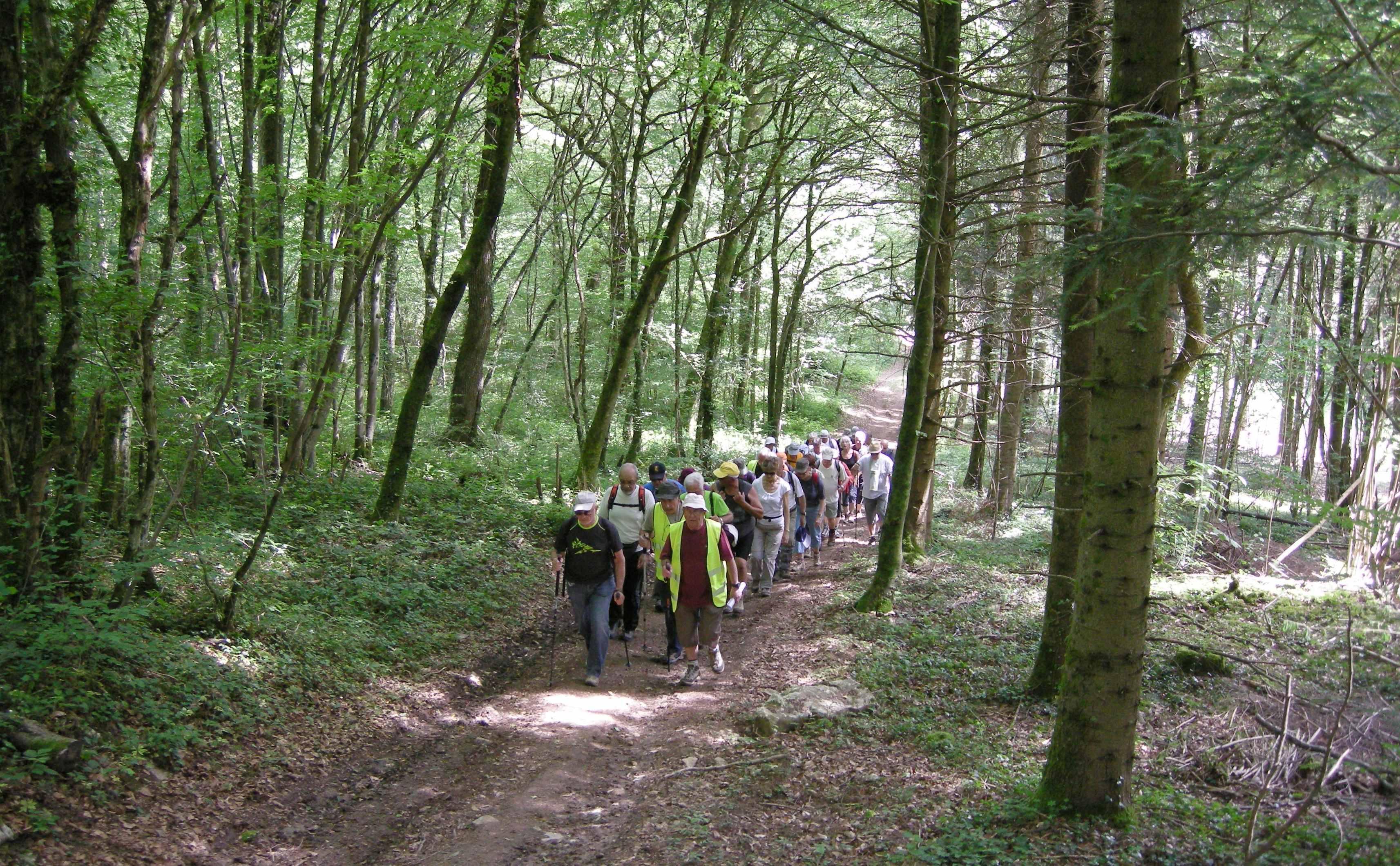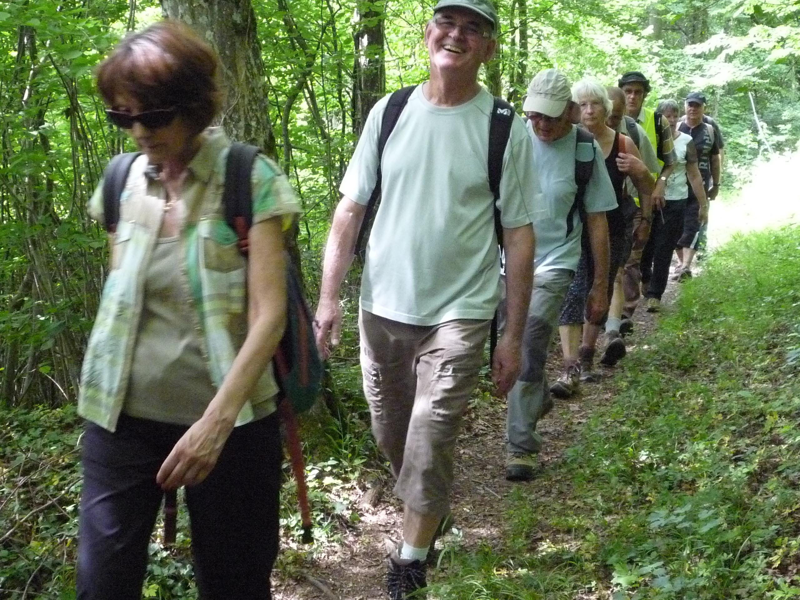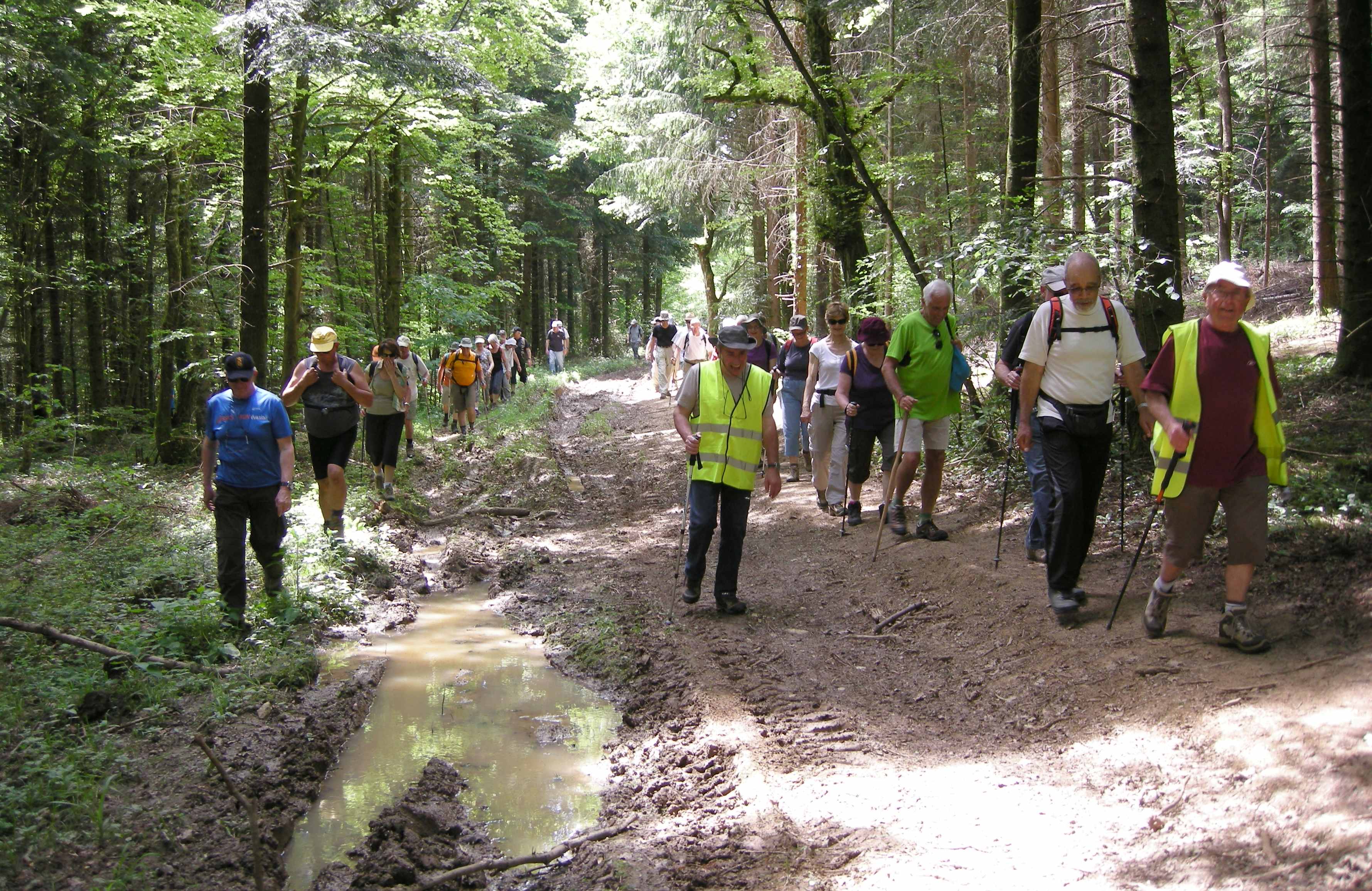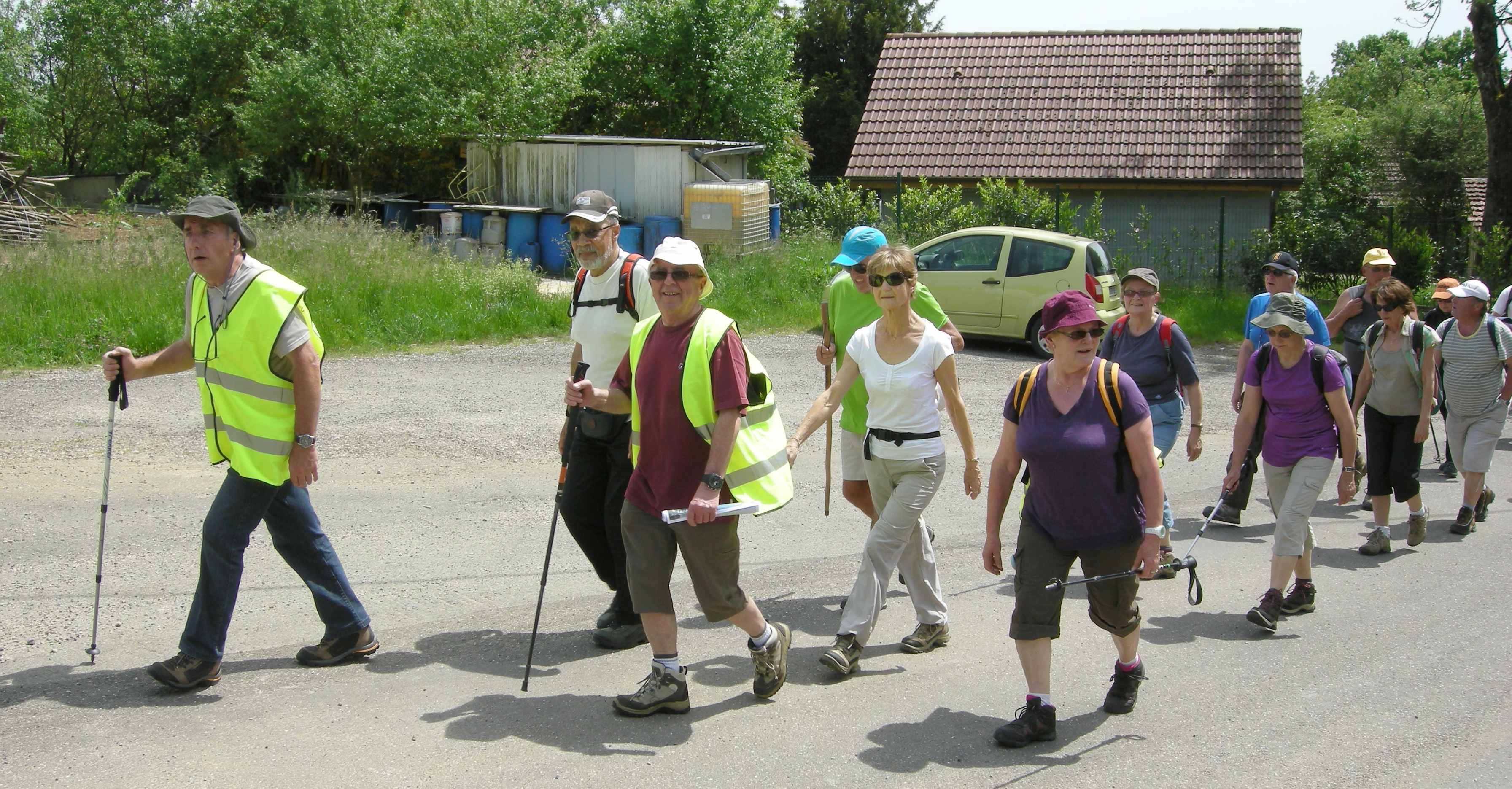 Par un beau et chaud soleil nous quittons le parking du cimetière d’Héricourt sous la conduite de Jean-Paul et Pierre.