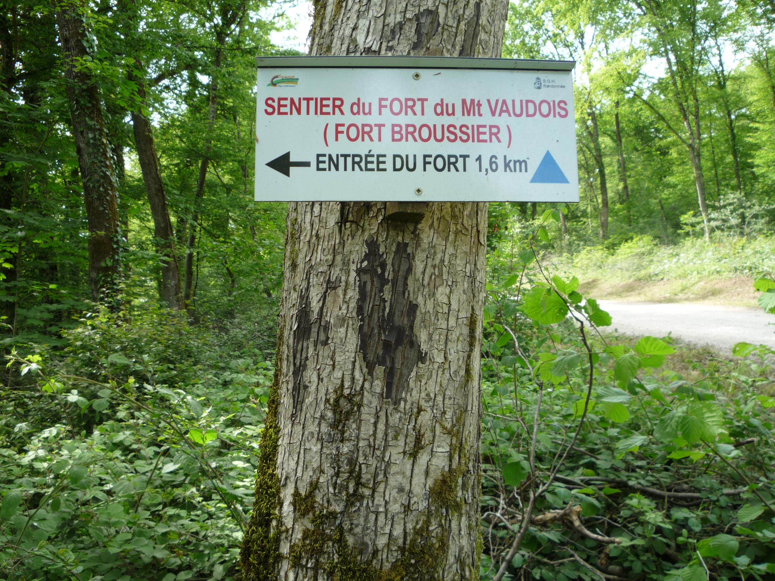 Nous empruntons la liaison GR59-GR5 en direction du Mont-sous-Vaudois puis un sentier dans la pâture (une liaison Saint-Jacques de Compostelle que nous suivrons un bon moment). Un passage en forêt nous rafraîchit avant d’accéder au Fort du Mont Vaudois, le point culminant de notre randonnée.