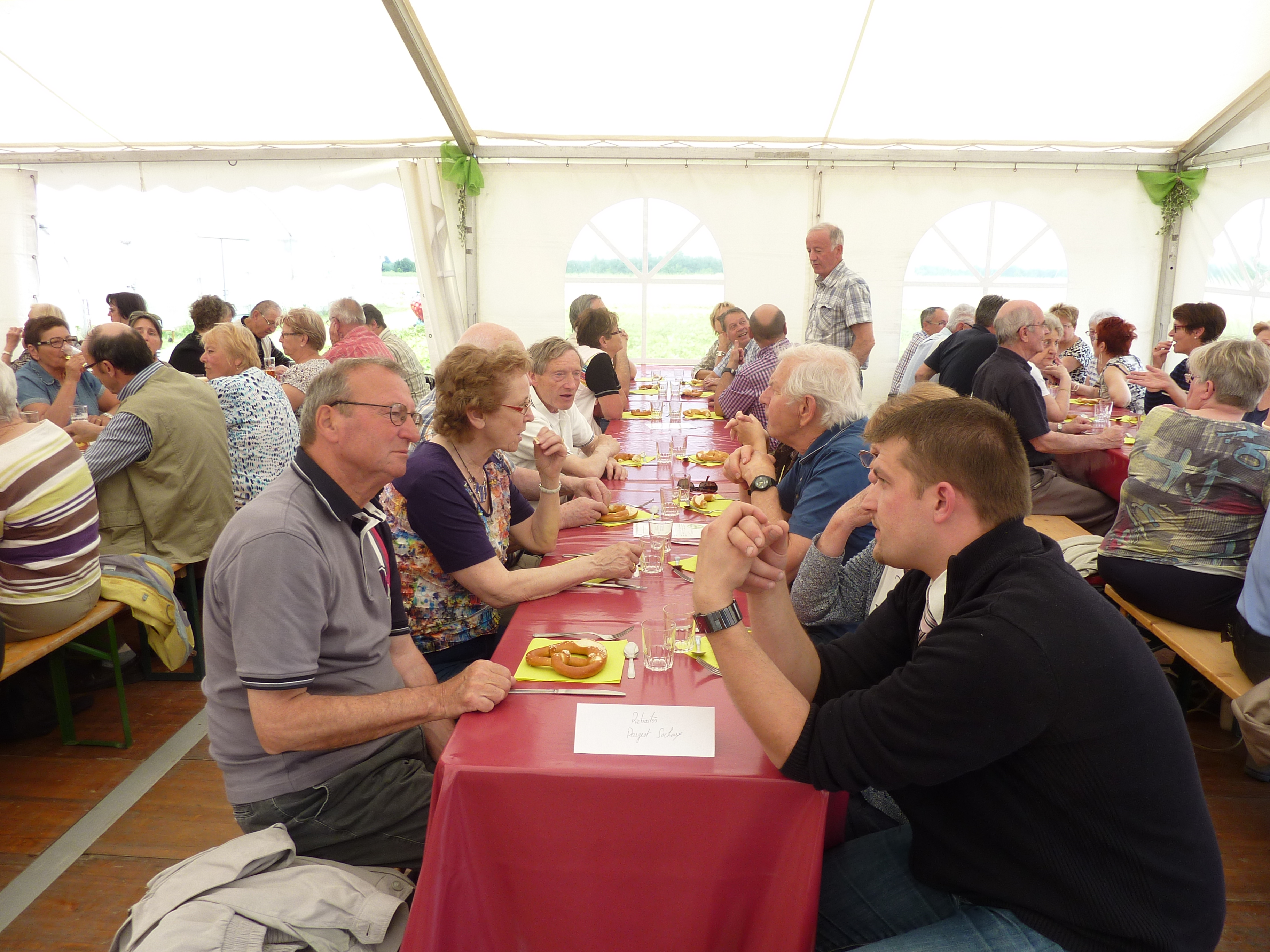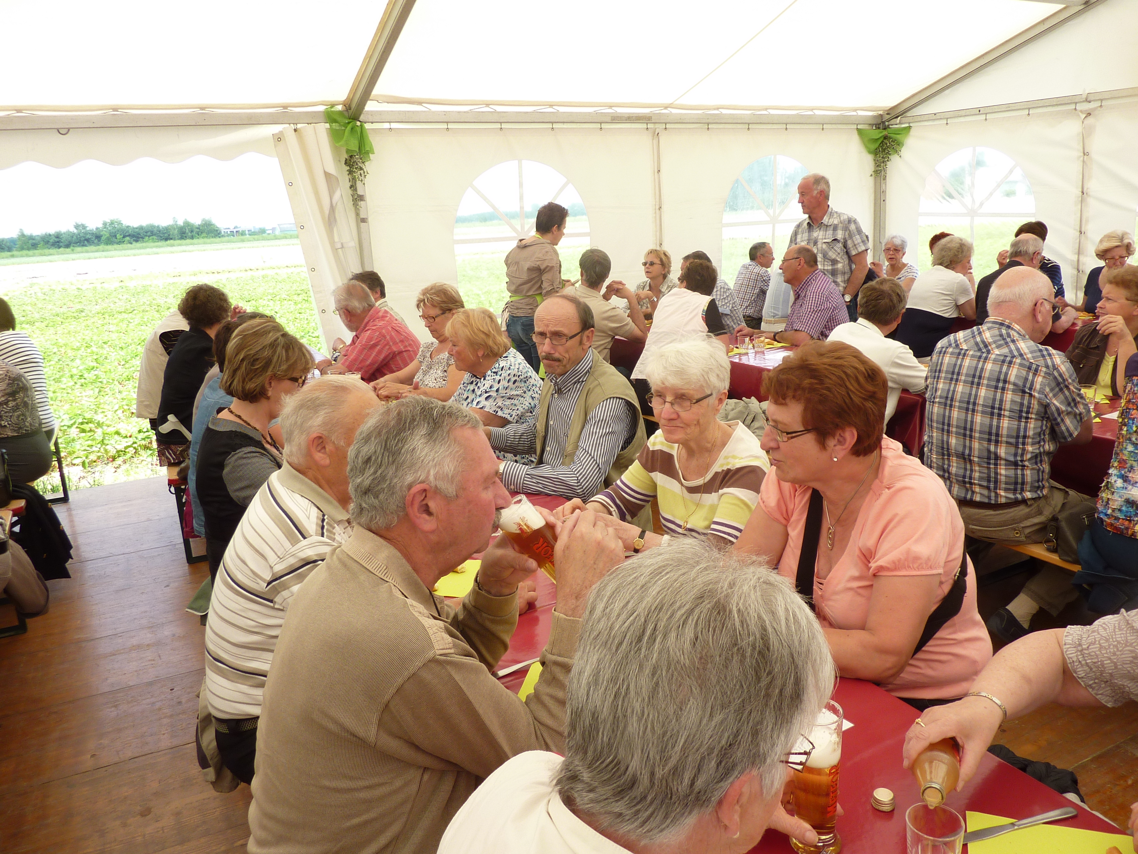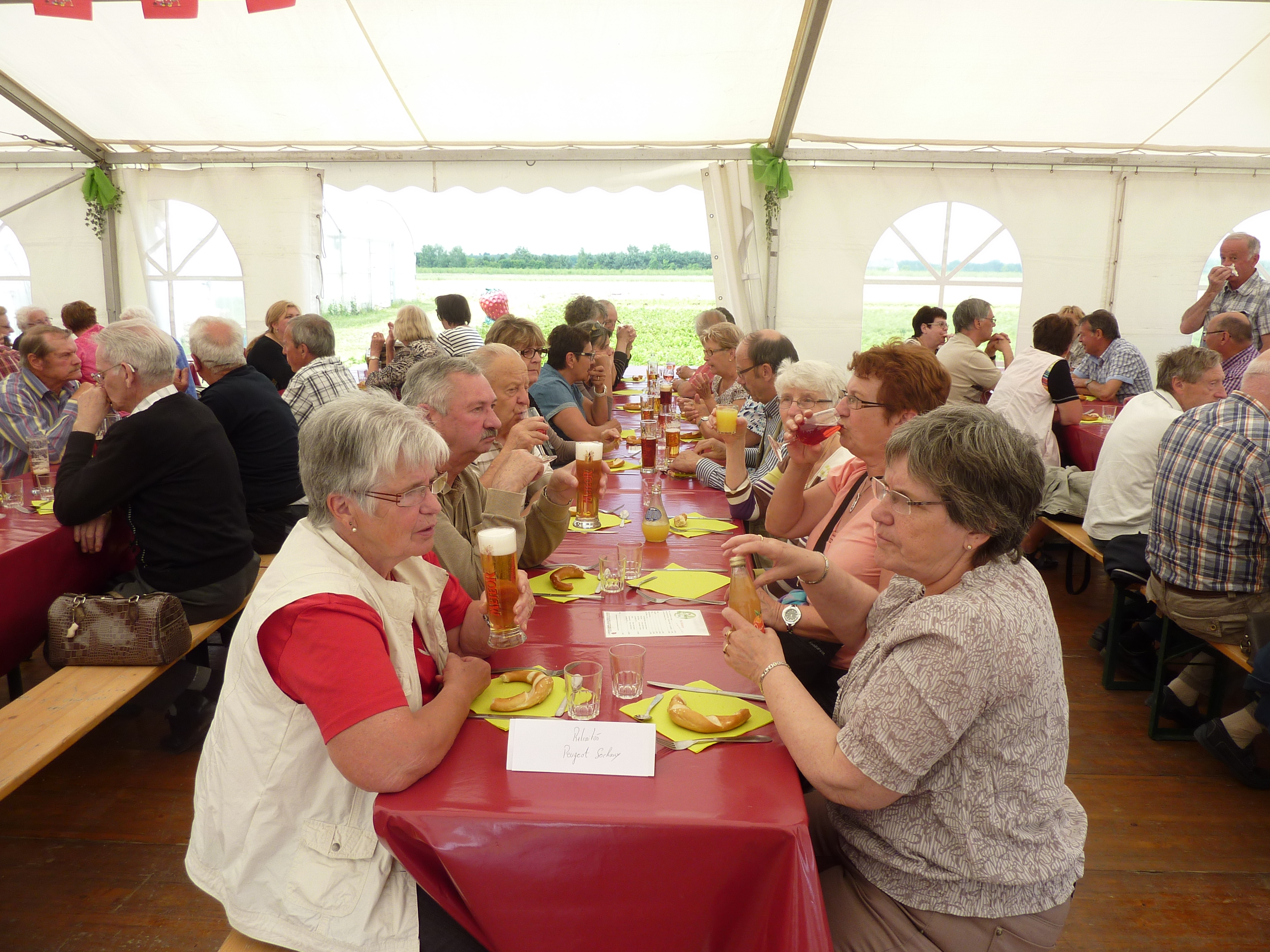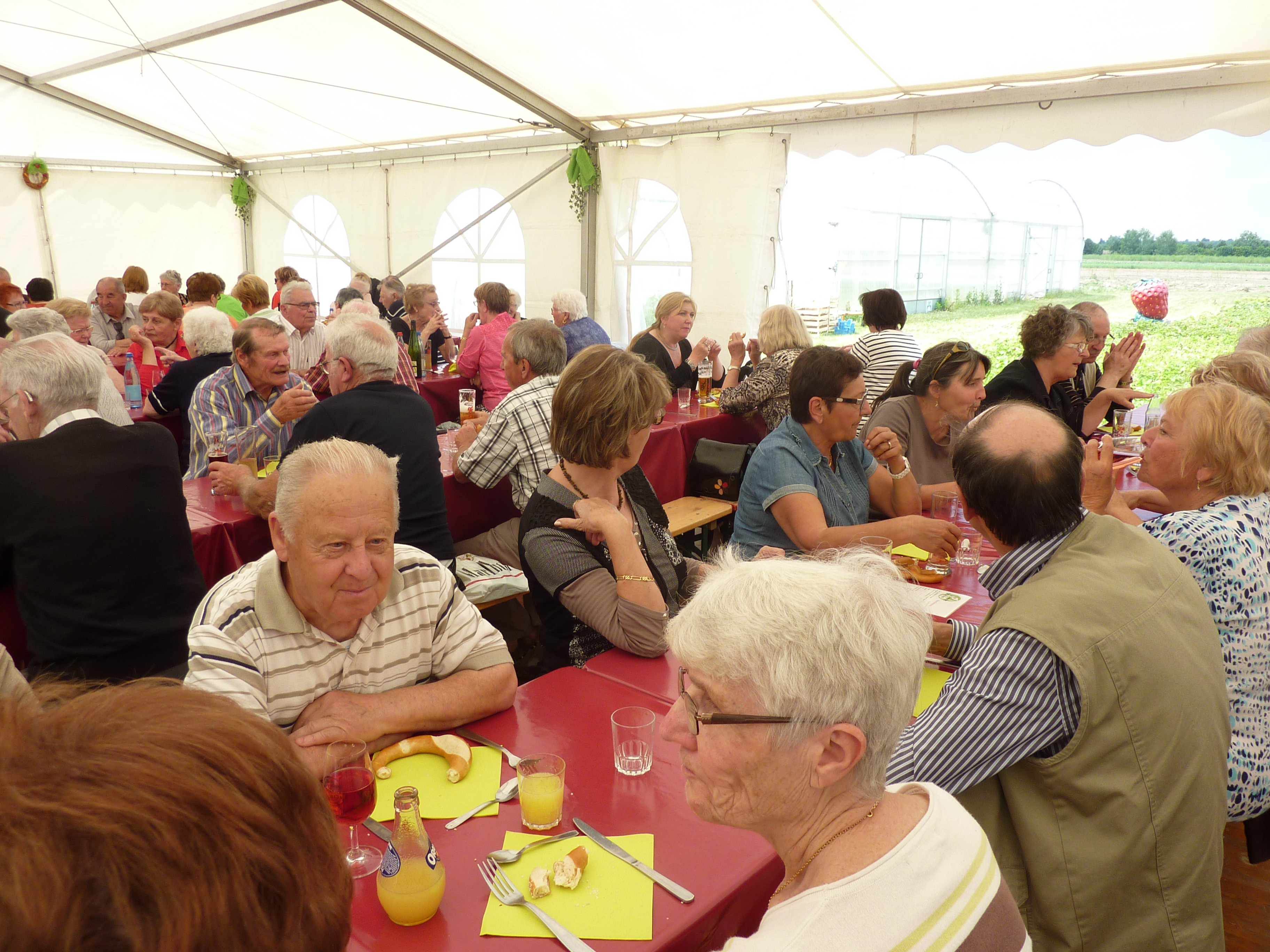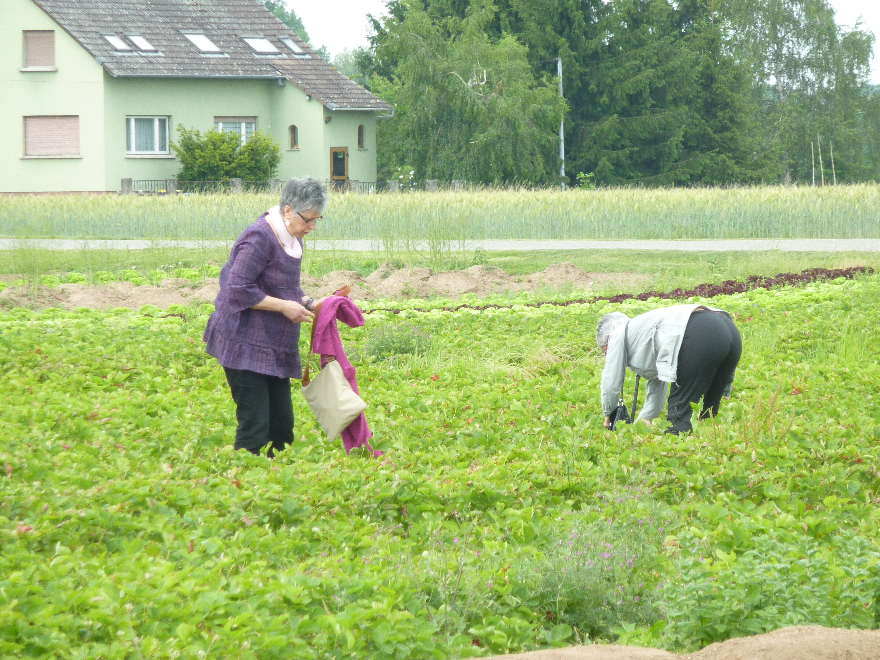 Après ce ravissant parcours, place à la dégustation de spécialités à la ferme MATHIS à HOERDT servies lors d’un repas typique et convivial. Les dernières asperges de la saison ont été appréciées. Après le café, nombre de gourmands n’ont pu résister à la cueillette des fraises en plein champ.