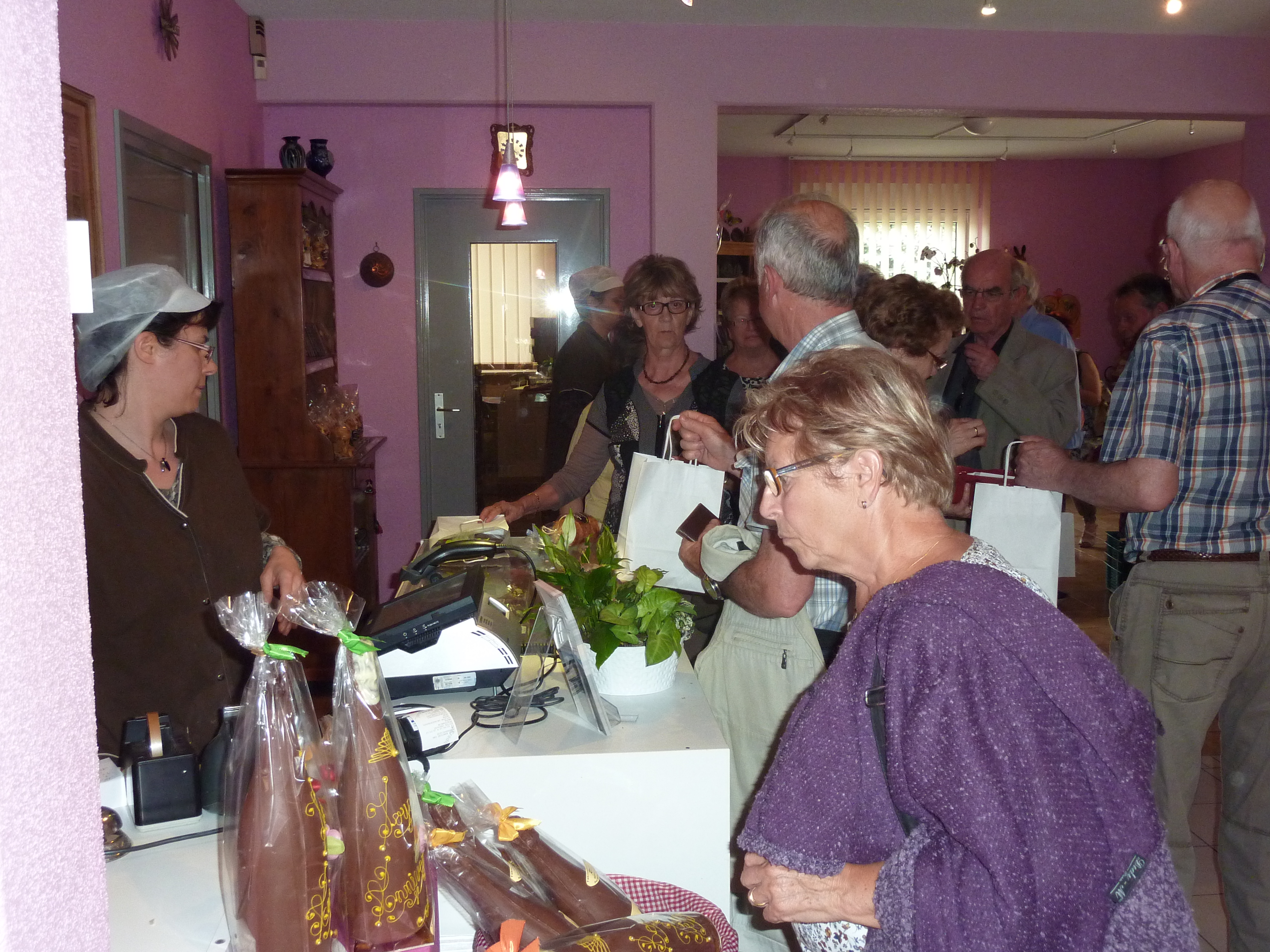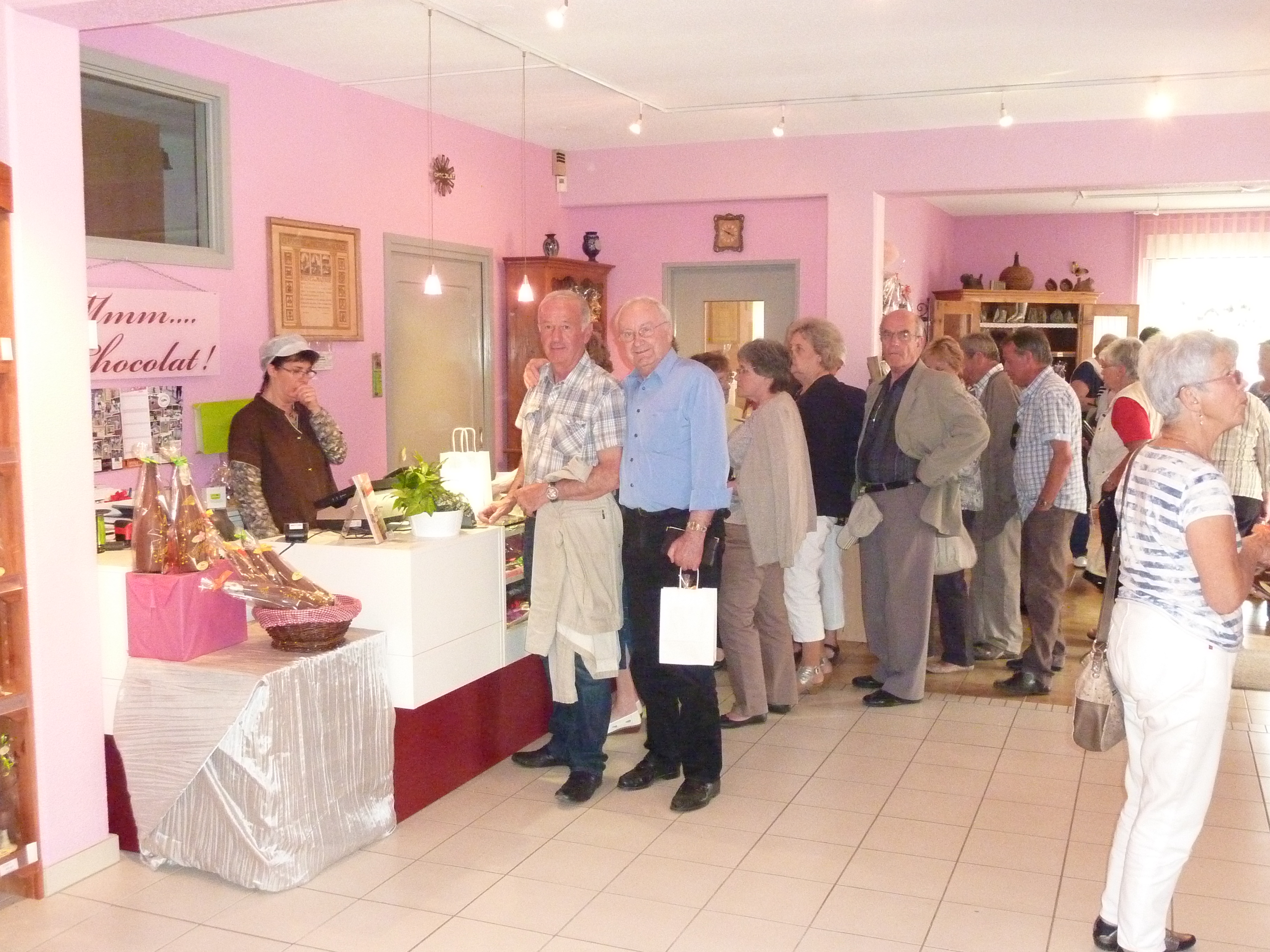 Au retour, après un rapide sondage, la fraîcheur d’une cave a supplanté la visite de la poterie alsacienne initialement prévue. Chemin faisant, nos voyageurs ont été séduits par les délicieuses fabrications d’un chocolatier local.