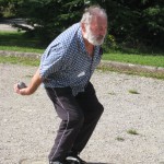 38 hommes,6 dames soit 44 passionnés pour cette dernière journée. Les parties furent rudes pour certains (13 à 12 ou arrêtés par le temps) et courtes pour d’autres (5 minutes et 13 à 0). Au final une dame dans les 10 premiers, des hommes embrassant la fanny (13 à 0), la pétanque au masculin a tremblé sur ses fondements mercredi après-midi. Une douceur estivale d’arrière saison, une buvette où les derniers potins s’échangeaient, tout était réuni pour que cette journée soit réussie. Bravo aux dix meilleurs(es) du jour : – 1e. Mimi (4 parties gagnées sur 4) – 2e. Corbat, idem – 3e. Waltz, idem – 4e. Sparapan, idem – 5e. Lacotte, 3 parties – 6e. Karim, 3 parties – 7e. Krenjleski, idem – 8e. Frotey, idem – 9e. Michalak, idem – 10e. Mme Quetin (toutes les parties gagnées mais une arrêtée au temps à 12 points). – 11e. Un lot de consolation à Mme Gravelat, 2ème dame. Rendez-vous en juin 2012. La date vous sera communiquée sur Planète Retraités de février 2012.