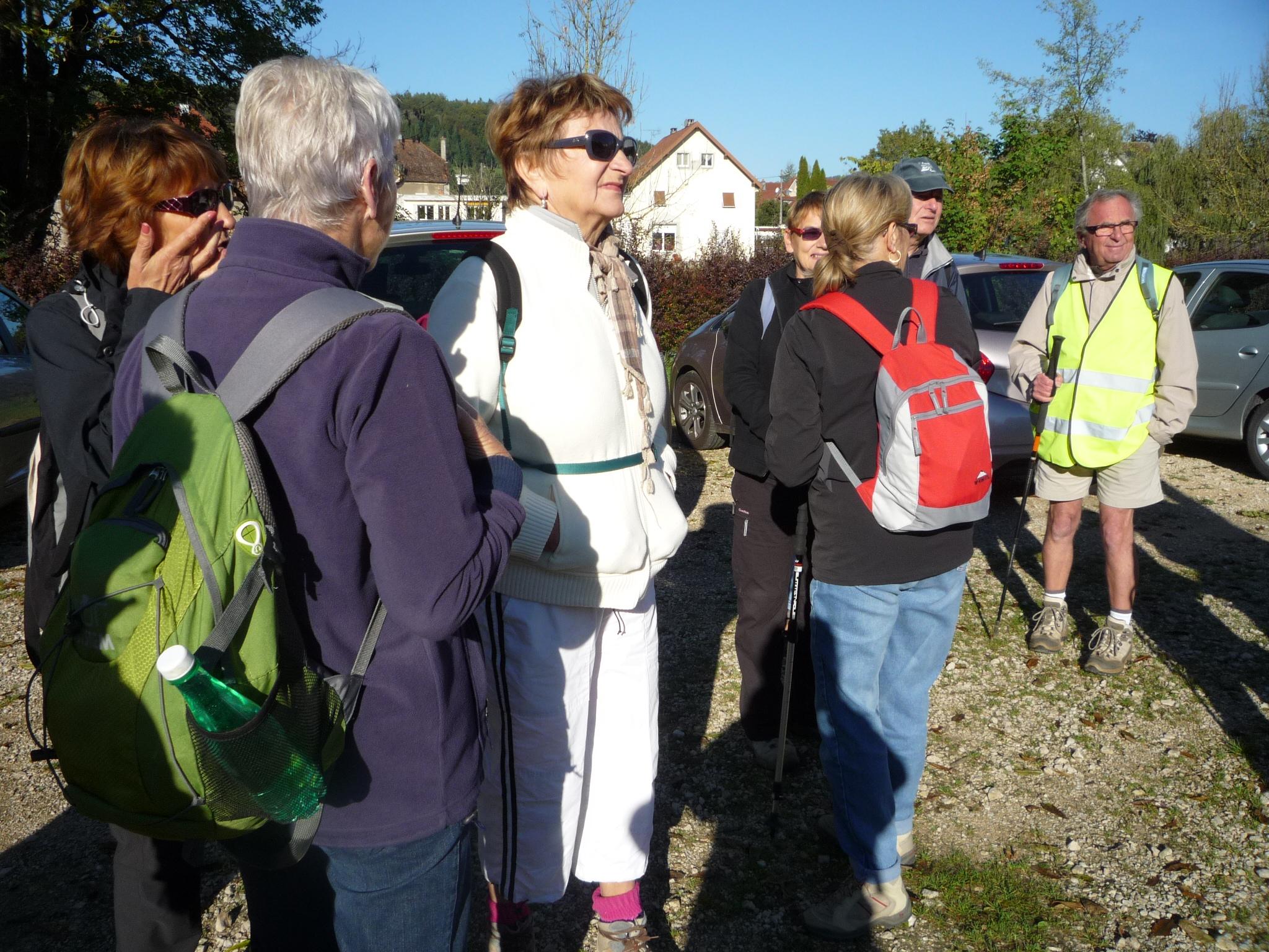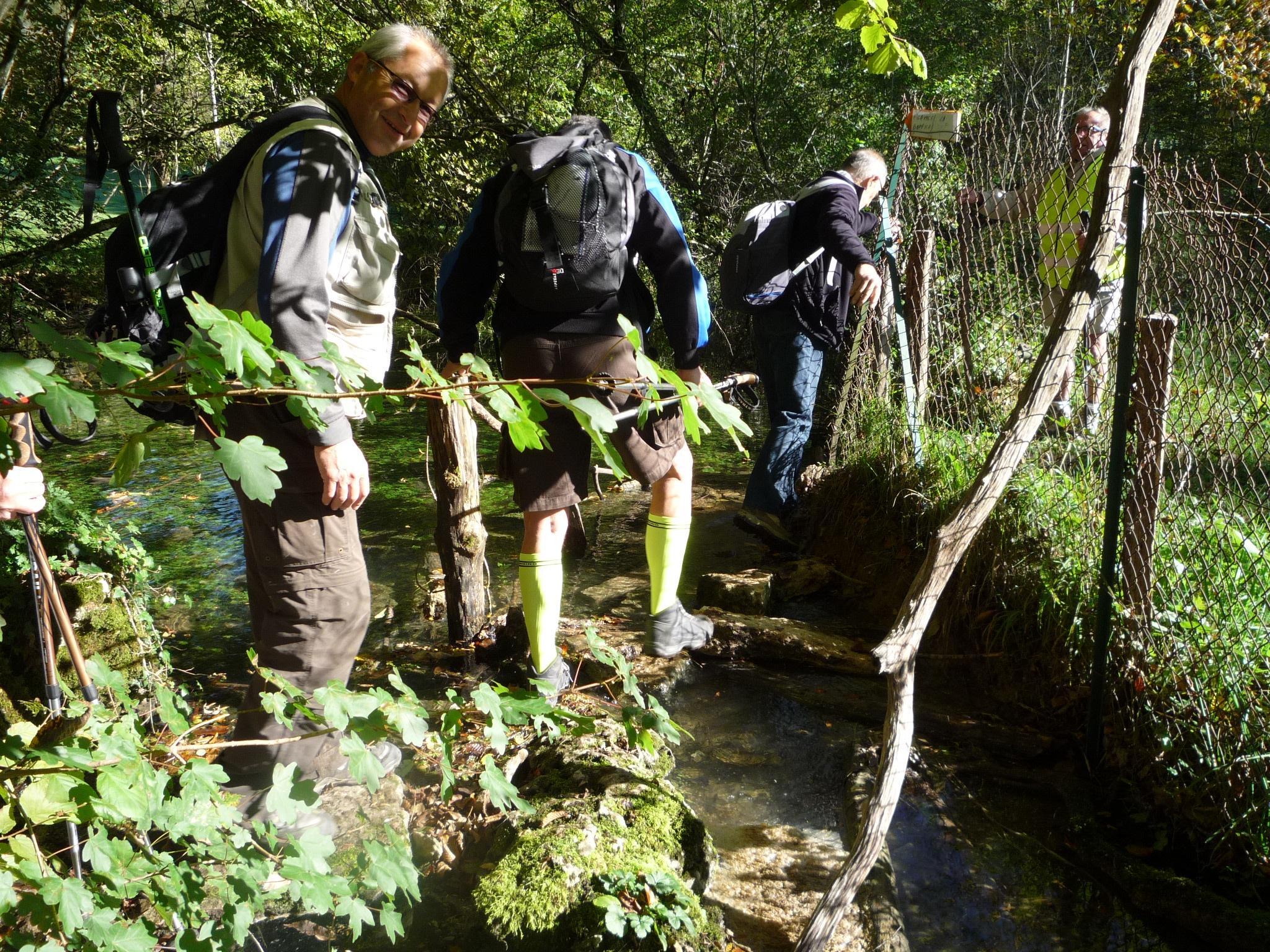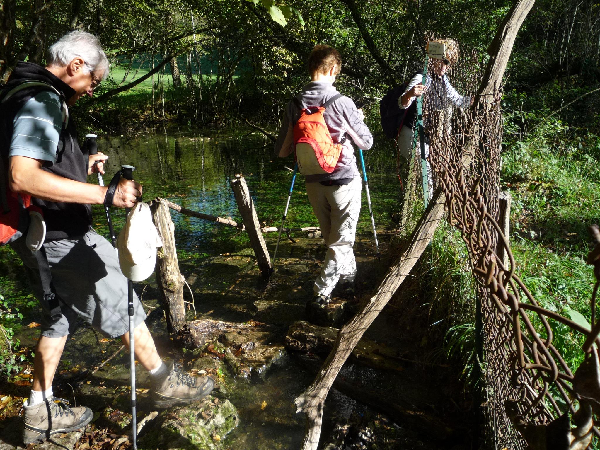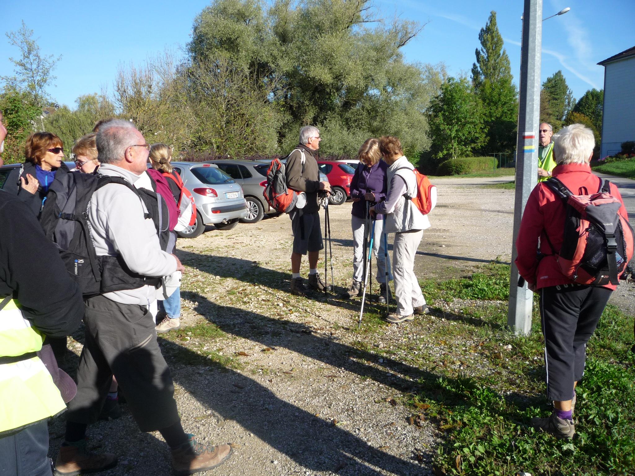 Sous la conduite de René et Albert, nous quittons le parking de la Maison pour Tous ; beau soleil mais petite fraîcheur. Nous apercevons le site du moulin à grains de Pont de Roide et longeons le Doubs jusqu’à la passerelle du Fourneau. Nous contournons les terrains de tennis avant de gravir la côte de champ Babon en direction de Roide par la route forestière.
