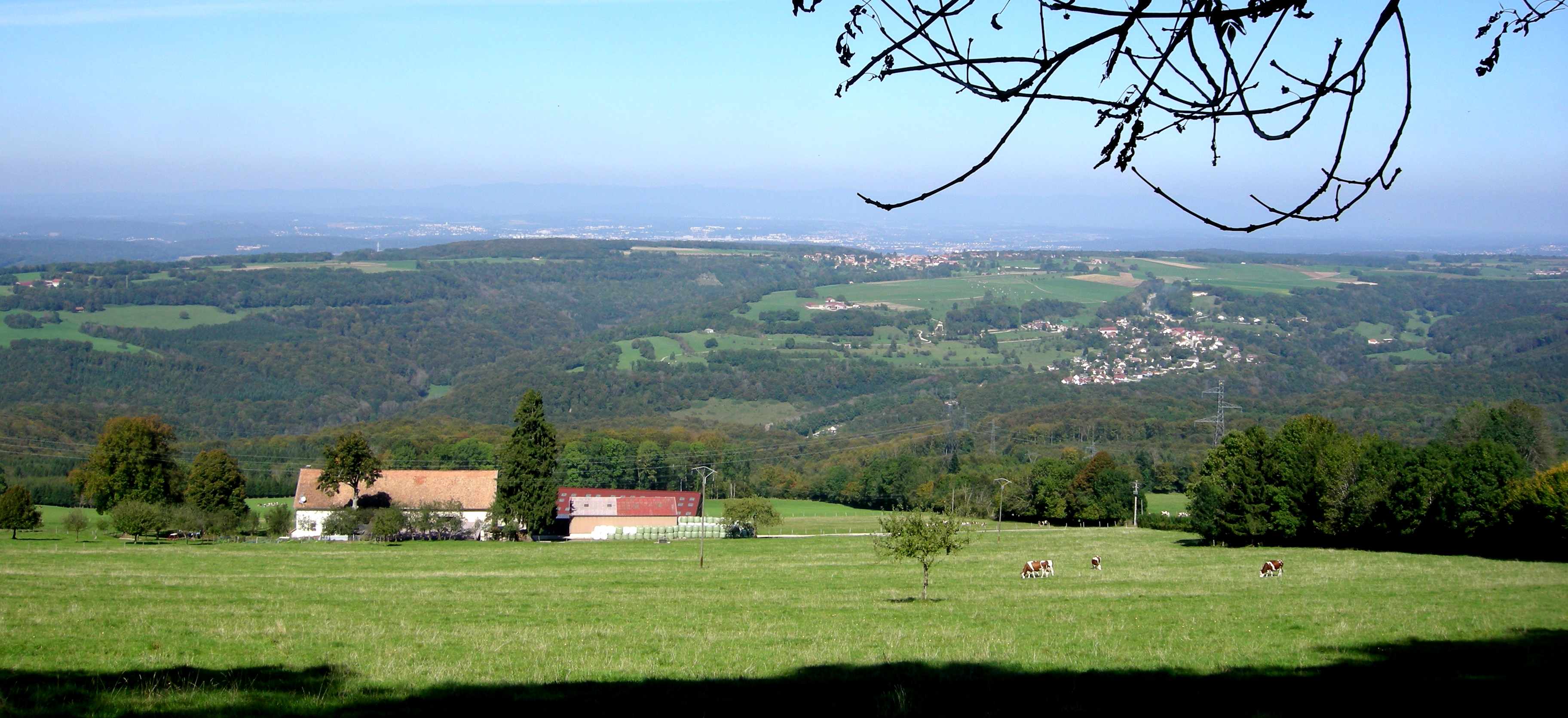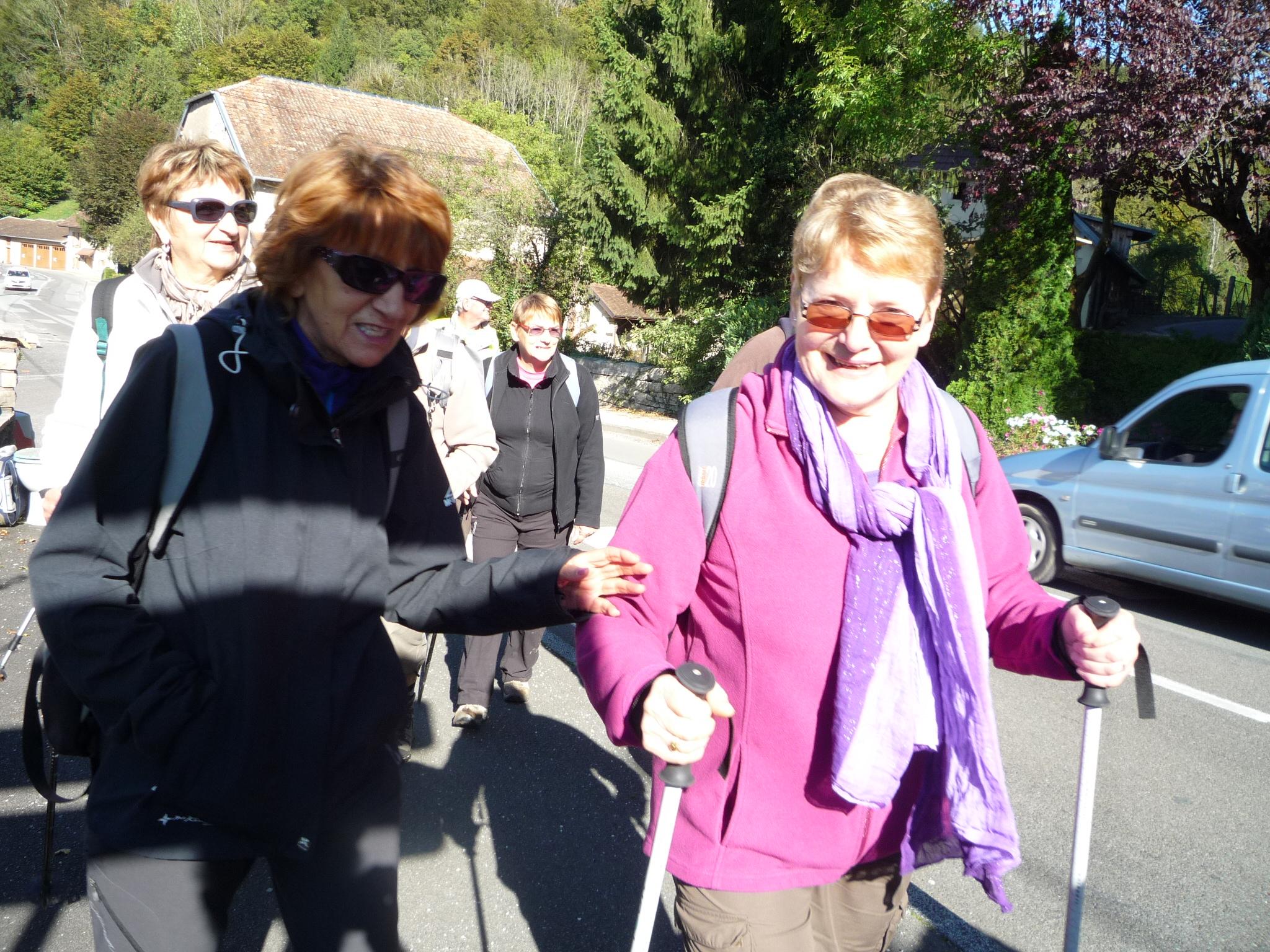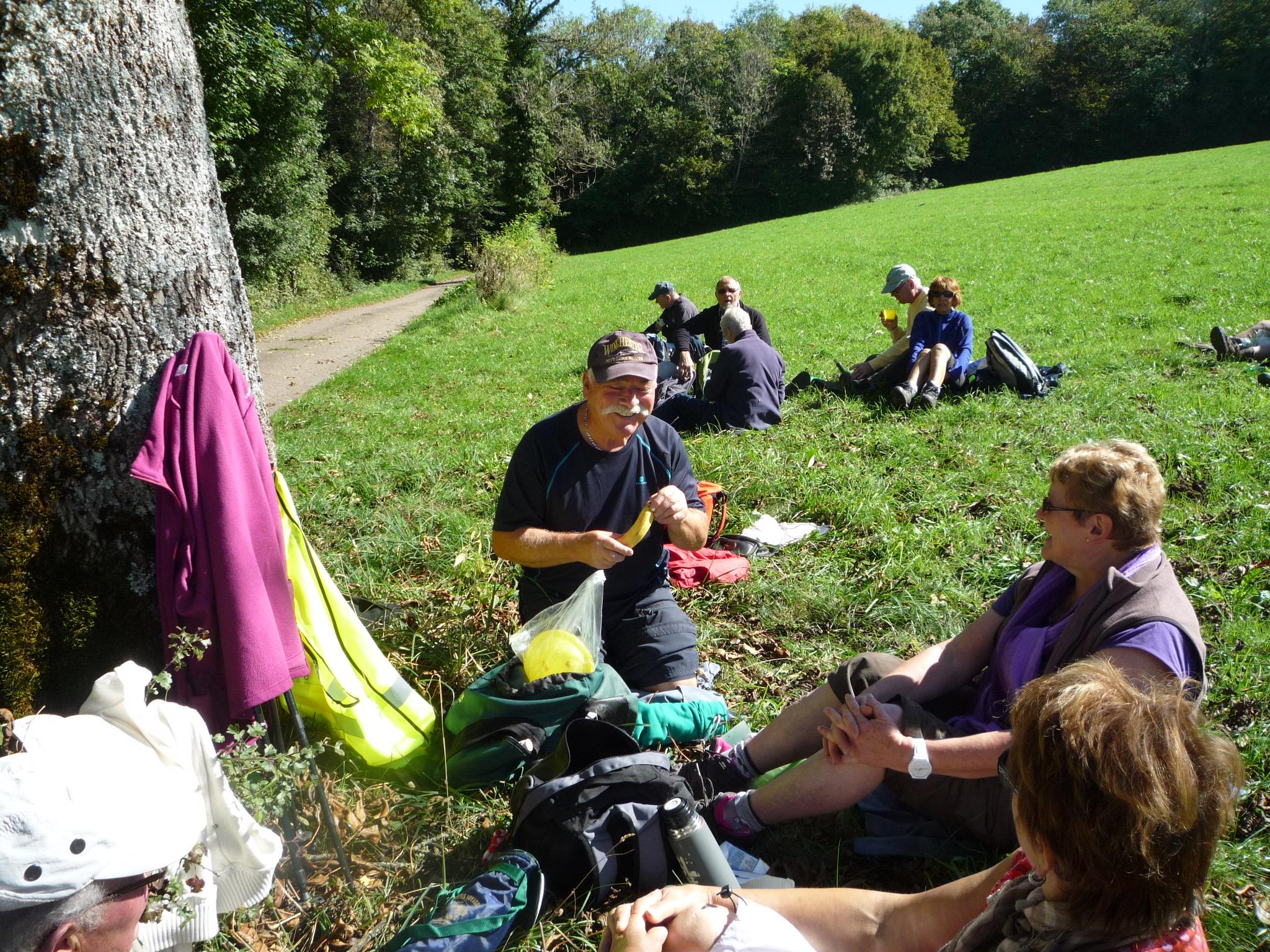 Nous dominons le village et la vallée jusqu’à l’usine Zurfluh, redescendons à Roide, passons à la Crochère pour monter en direction de Pierre Carrée avant d’arriver à proximité des Fermes de Brisepoutot. A suivre : un arrêt d’une heure pour la pause casse-croûte conviviale de midi.