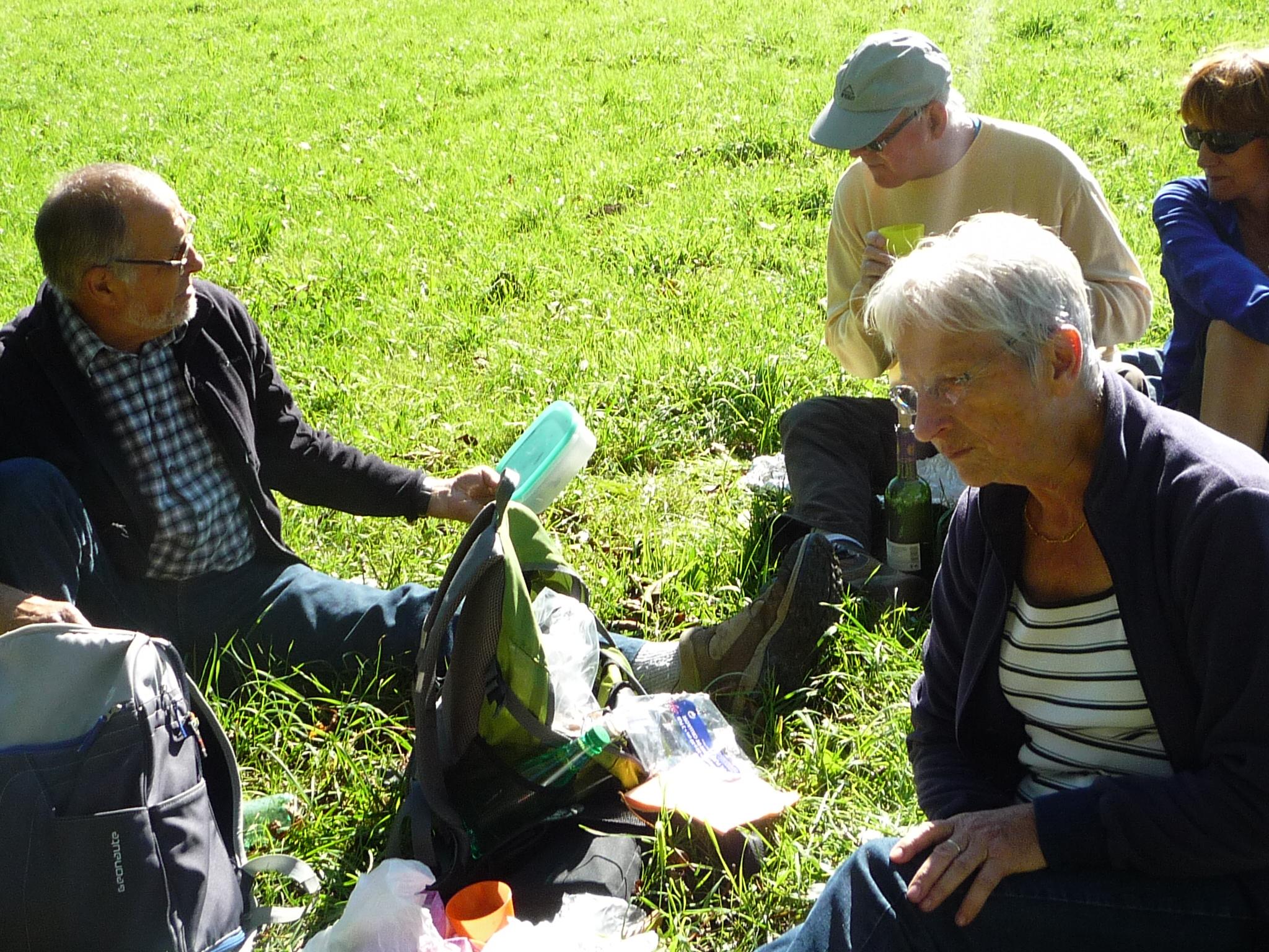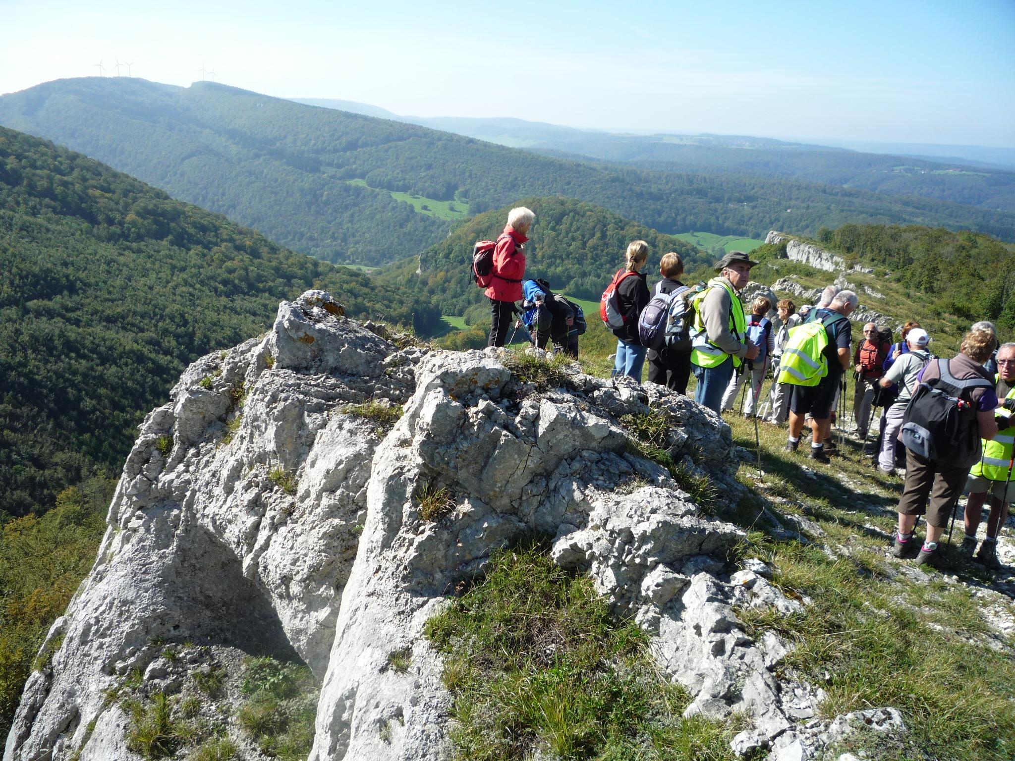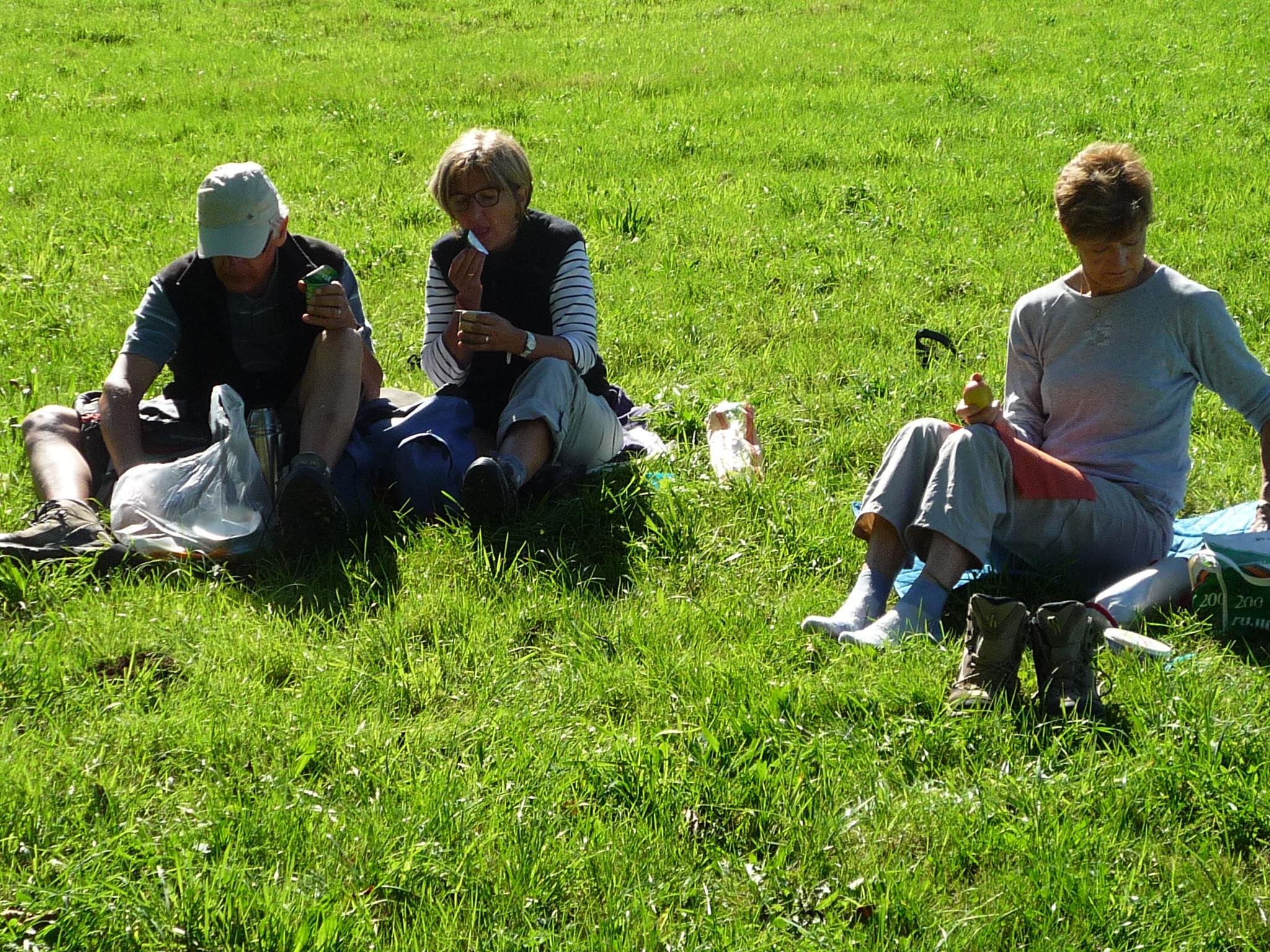 Nous dominons le village et la vallée jusqu’à l’usine Zurfluh, redescendons à Roide, passons à la Crochère pour monter en direction de Pierre Carrée avant d’arriver à proximité des Fermes de Brisepoutot. A suivre : un arrêt d’une heure pour la pause casse-croûte conviviale de midi.