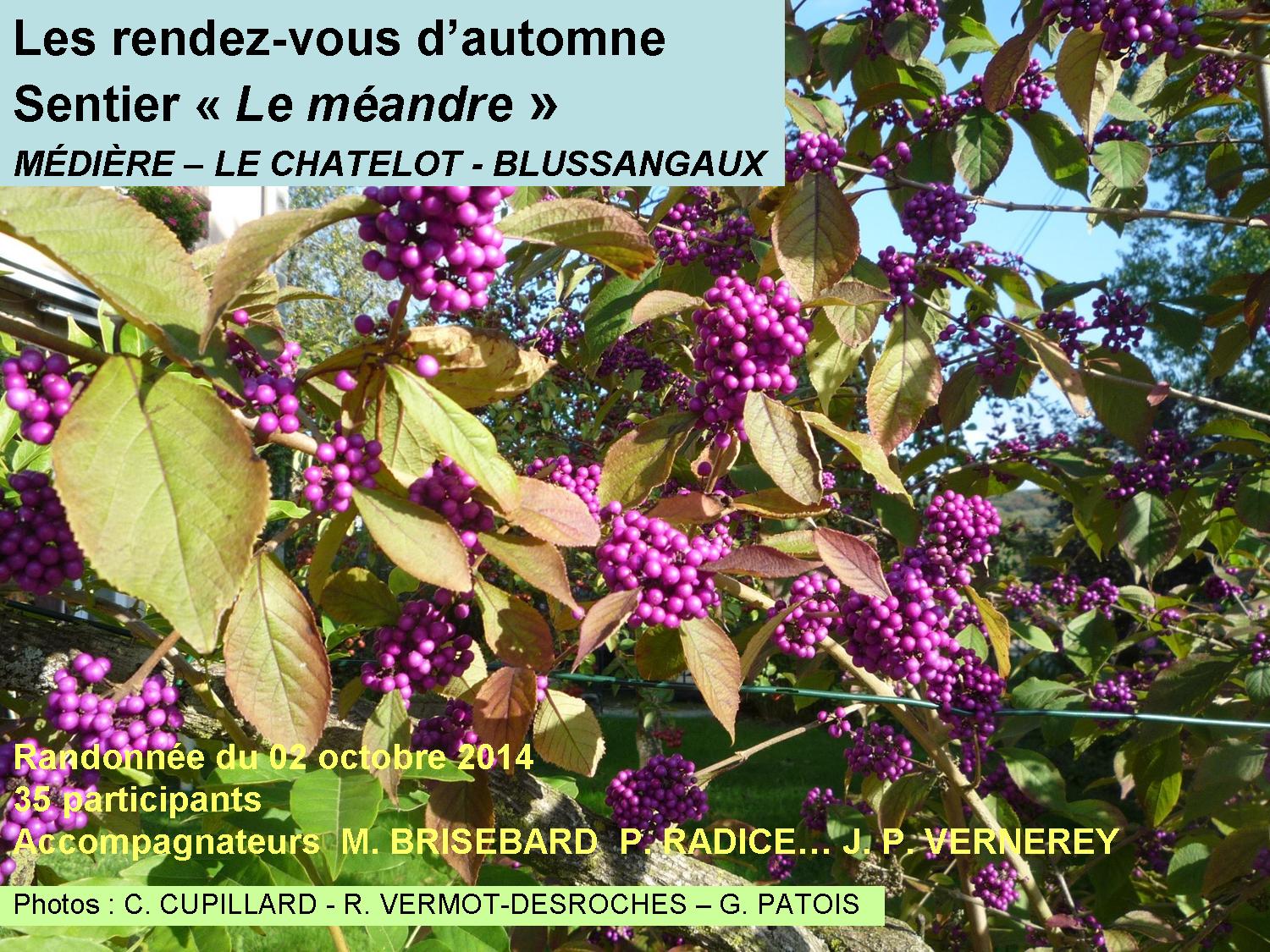 Prochaine Randonnée : Jeudi 16 OCTOBRE 2014