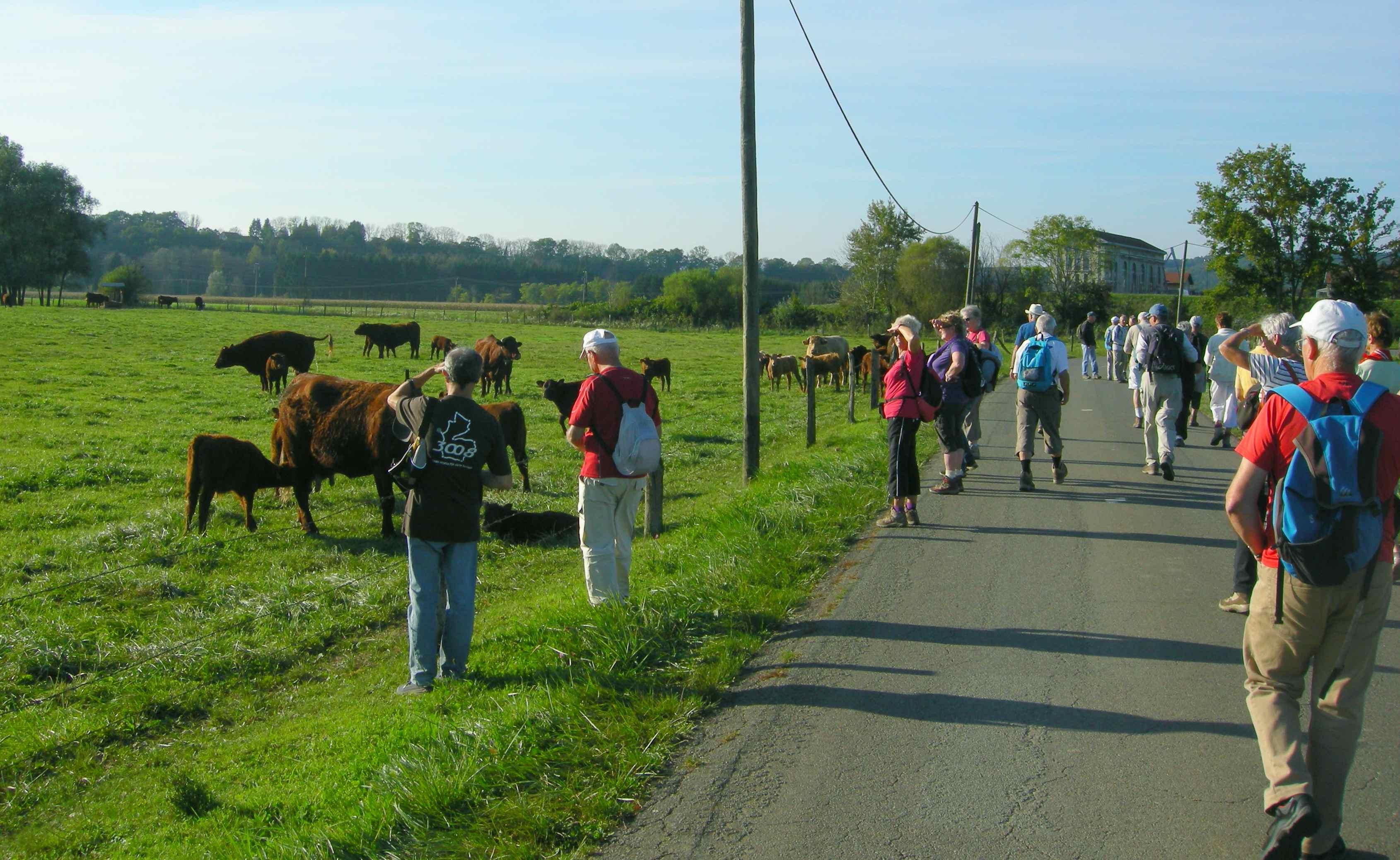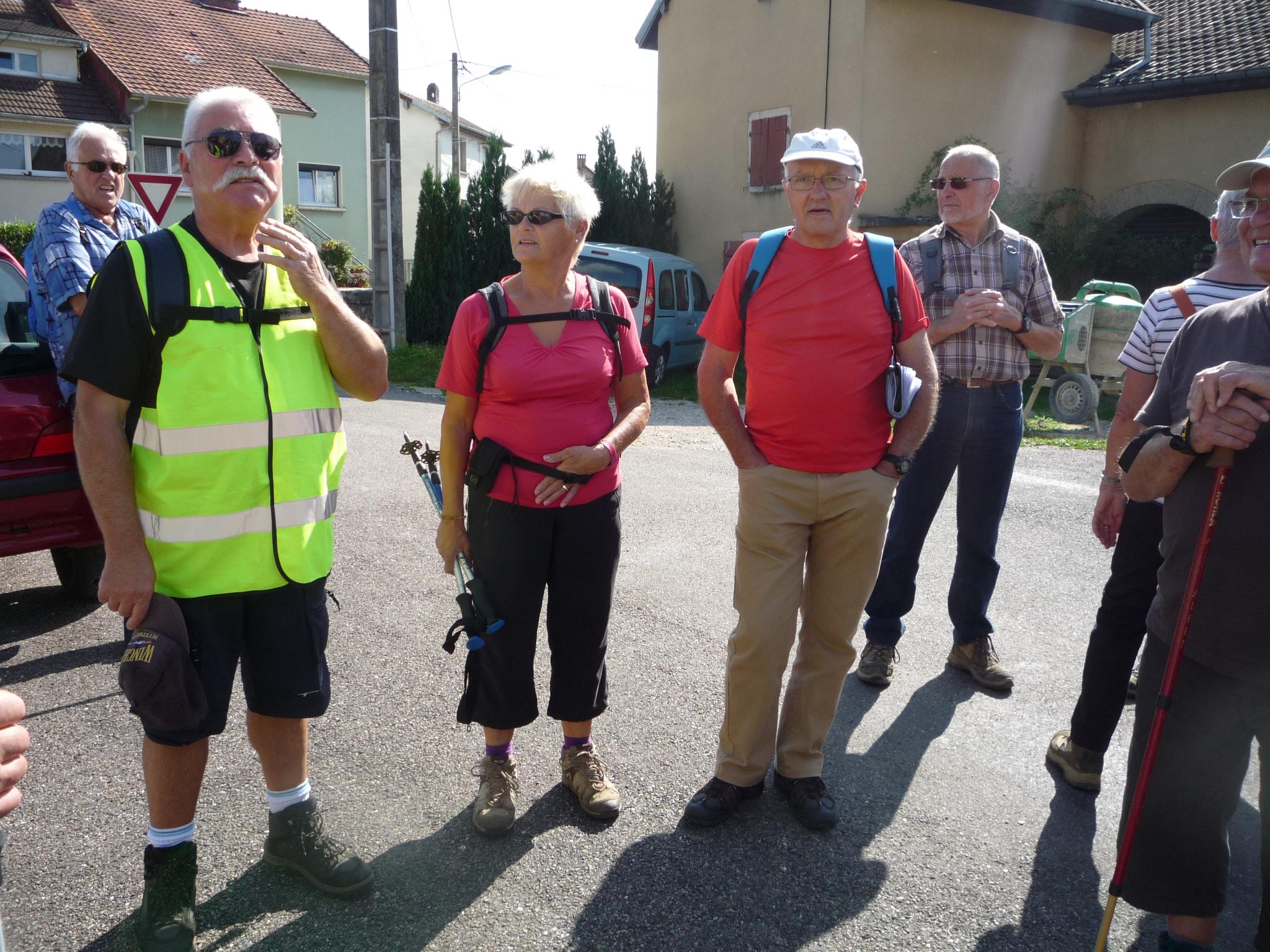 Sur le parking de la mairie de Médière, nous retrouvons Michel et Pierre, nos deux guides de l’après-midi, accompagnés de Jean-Pierre qui commentera les particularités et les sites rencontrés tout au long cette randonnée découverte.