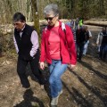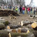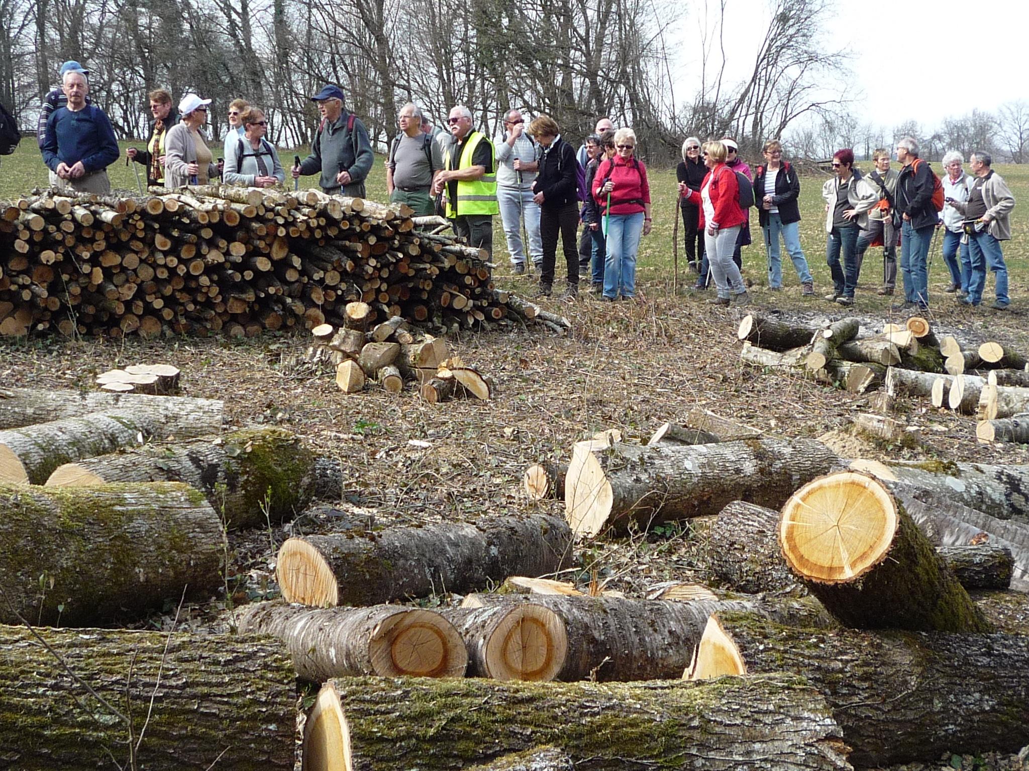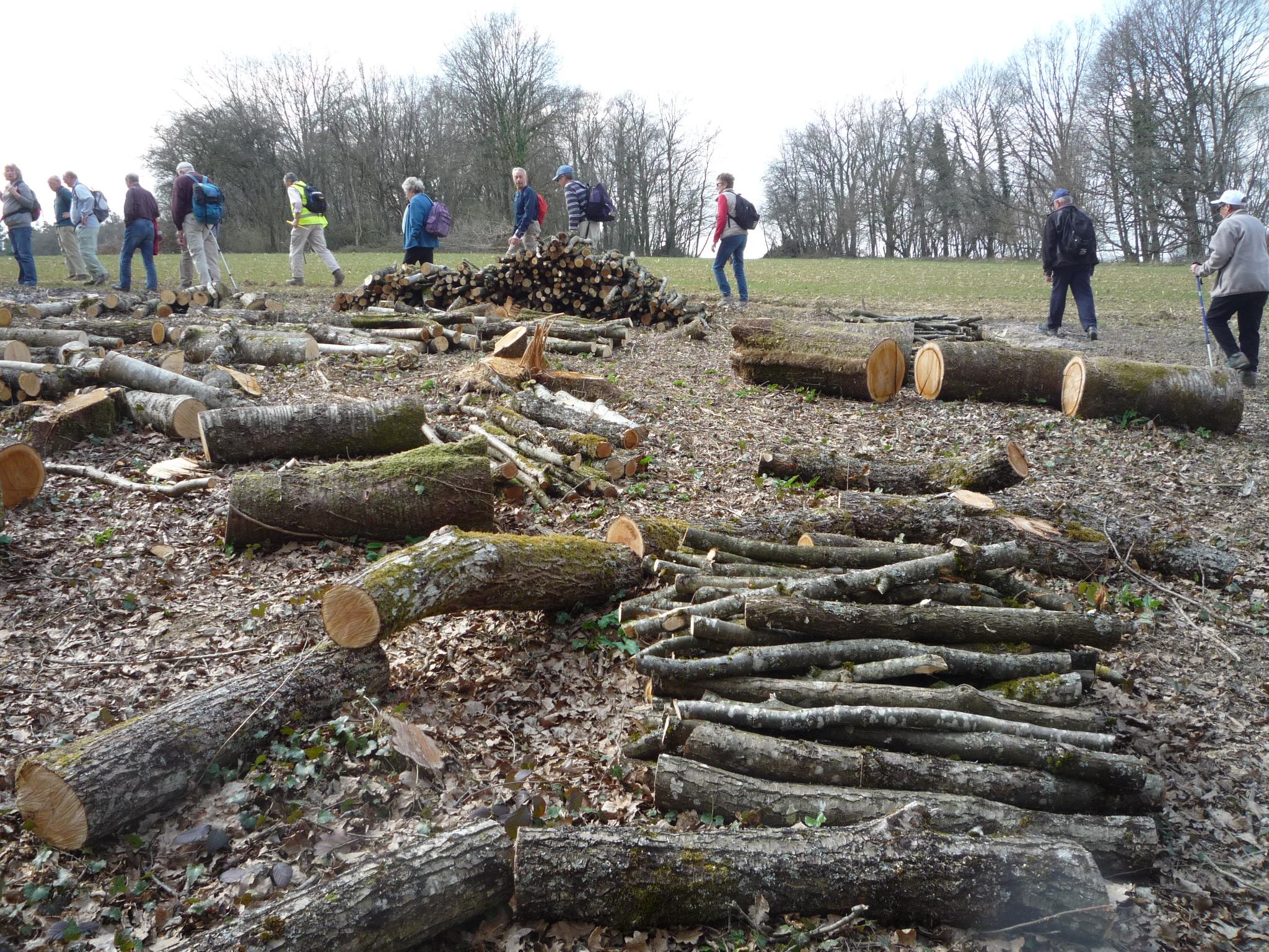 Avant de faire les premiers pas, les consignes de sécurité sont rappelées, notamment celles relatives à l’utilisation des bas-côtés longeant les voies de circulation lorsque ceux-ci le permettent ainsi que celles concernant les traversées de routes. Nous partons en direction de la forêt et empruntons un joli chemin forestier plat bordé de grumes et de stères de bois.