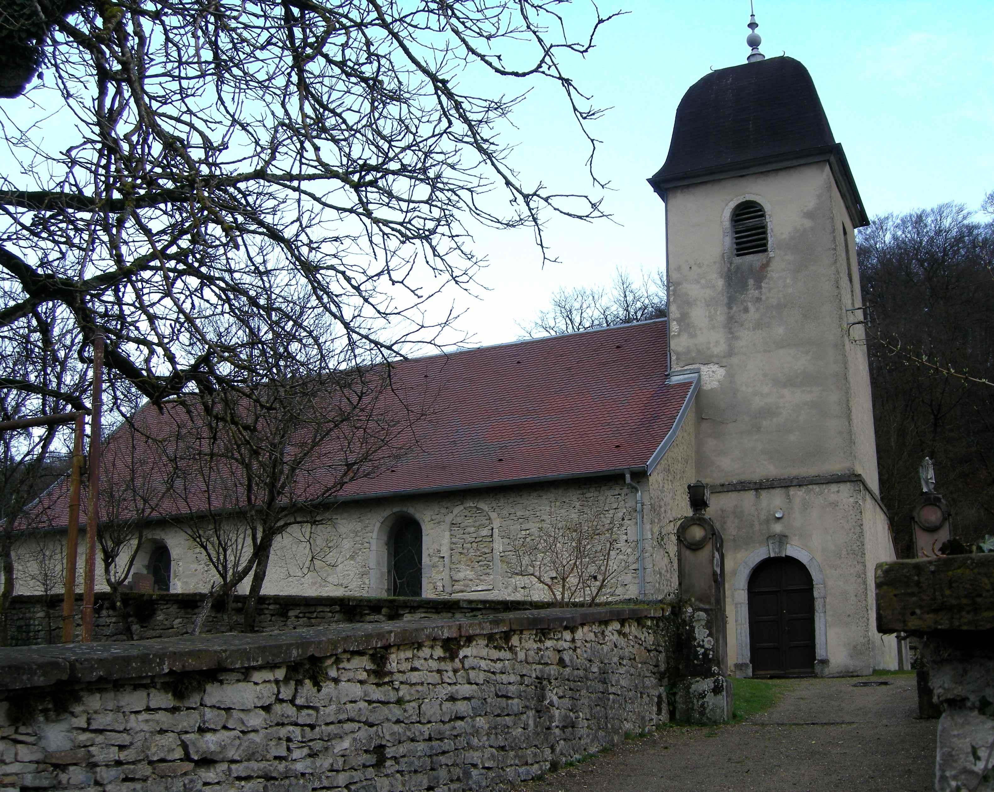 Nous arrivons à Colombier-Fontaine et passons devant le temple avant d’emprunter une route sur une faible distance. Nous la quittons pour rejoindre un sentier en forêt, puis le chemin forestier évoqué en début de randonnée et enfin notre point de départ.