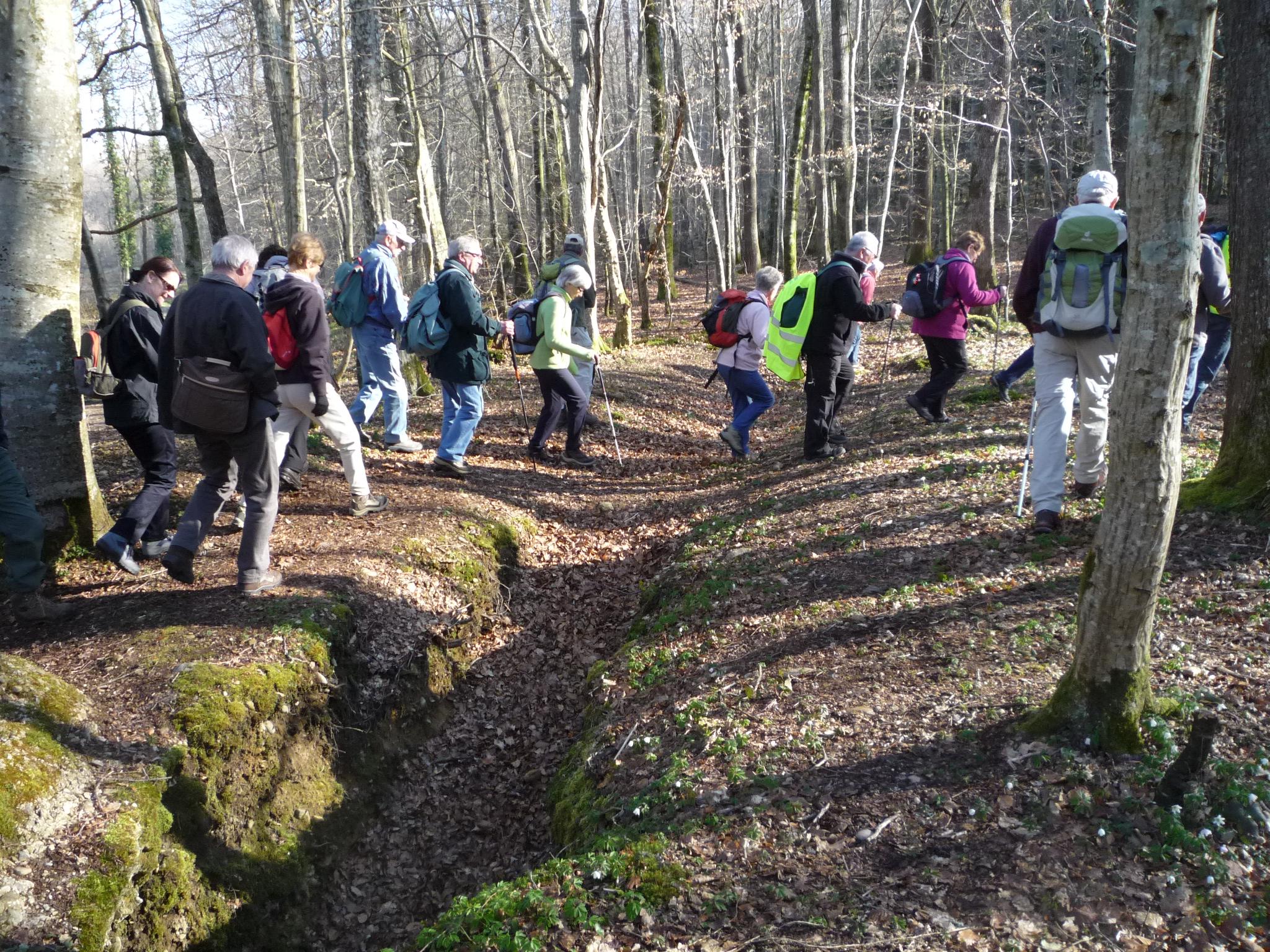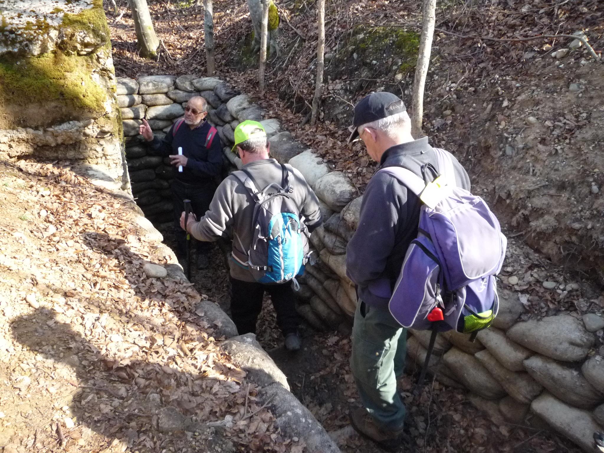 Nous avons effectué une randonnée avec le casse-croûte habituel dans le cadre d’une marche sur la journée. Un endroit particulier nous a fait découvrir la vie des occupants de cette contrée pendant la grande guerre 1914-1918, en cette année du centenaire.