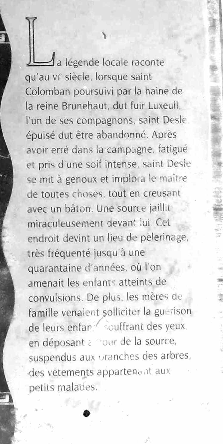 Dans le second tiers, nous flânons en longeant les « plages » des étangs de Saint Maurice. C’est plein d’espérance que nous faisons un détour par la légendaire et miraculeuse fontaine de Saint Desle. Hélas, la vase stagnante nous dissuade de tenter d’en vérifier les vertus !