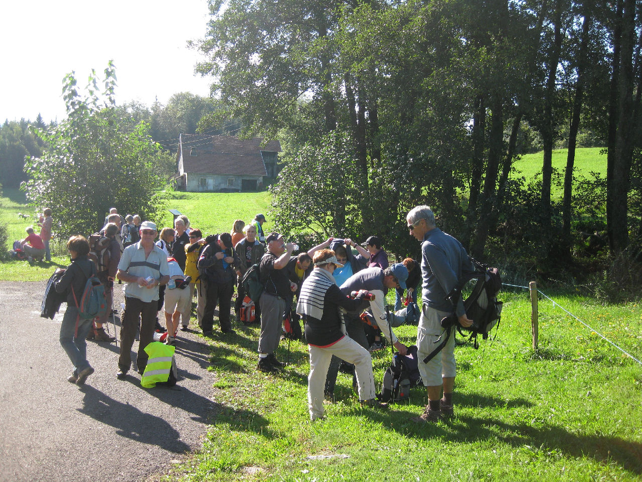 Circuit : Les Milles Etangs et le plateau des Grilloux Beau temps – Marche de 17 km – Dénivelé : 150 m – Durée : la journée – 36 personnes dont 5 membres du CA Animateurs: A. MAGNANI – R. PRATI C’est par un beau temps et avec notre guide du jour Albert que nous partons de l’aire de pique-nique du Plateau des Grilloux en direction de Beulotte-St Laurent, la goutte du frêne, le Grilloux, le pré Guénée, le pré Boichey, les Breuchots etc. En traversant des forêts et des champs avec des vues magnifiques pour le plus grand bonheur des participants et des photographes. Que ça soit avant la pause casse croûte qu’après celle-ci nous pouvons admirer des étangs magnifiques, de belles maisons, des chalets et propriétés privées qui doivent faire le bonheur des propriétaires. Nous pouvons apprécier les commentaires d’Albert sur la naissance et la vie de la faune et de la flore, l’entretien naturelle des ces Milles Étangs. Nous avons la chance en cette randonnée de 17 km d’en voir plus d’une soixantaine avec chacun leurs spécificités propres. Nous arrivons vers 16h30 au parking du départ avec beaucoup de commentaires très satisfaisants des randonneurs de ce jour. Nous vous donnons rendez vous pour la prochaine sortie le jeudi 06 octobre 2011 pour le Circuit : ÉTANG DES PRINCES. Marche de 10 km, dénivelé 210 m, durée 3h15. Rendez-vous au parking de chasse, chemin du Réservoir à St Julien les Montbéliard (25) à 13h30, départ à 13h45. Nous vous disons à bientôt Raymond PRATI.
