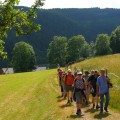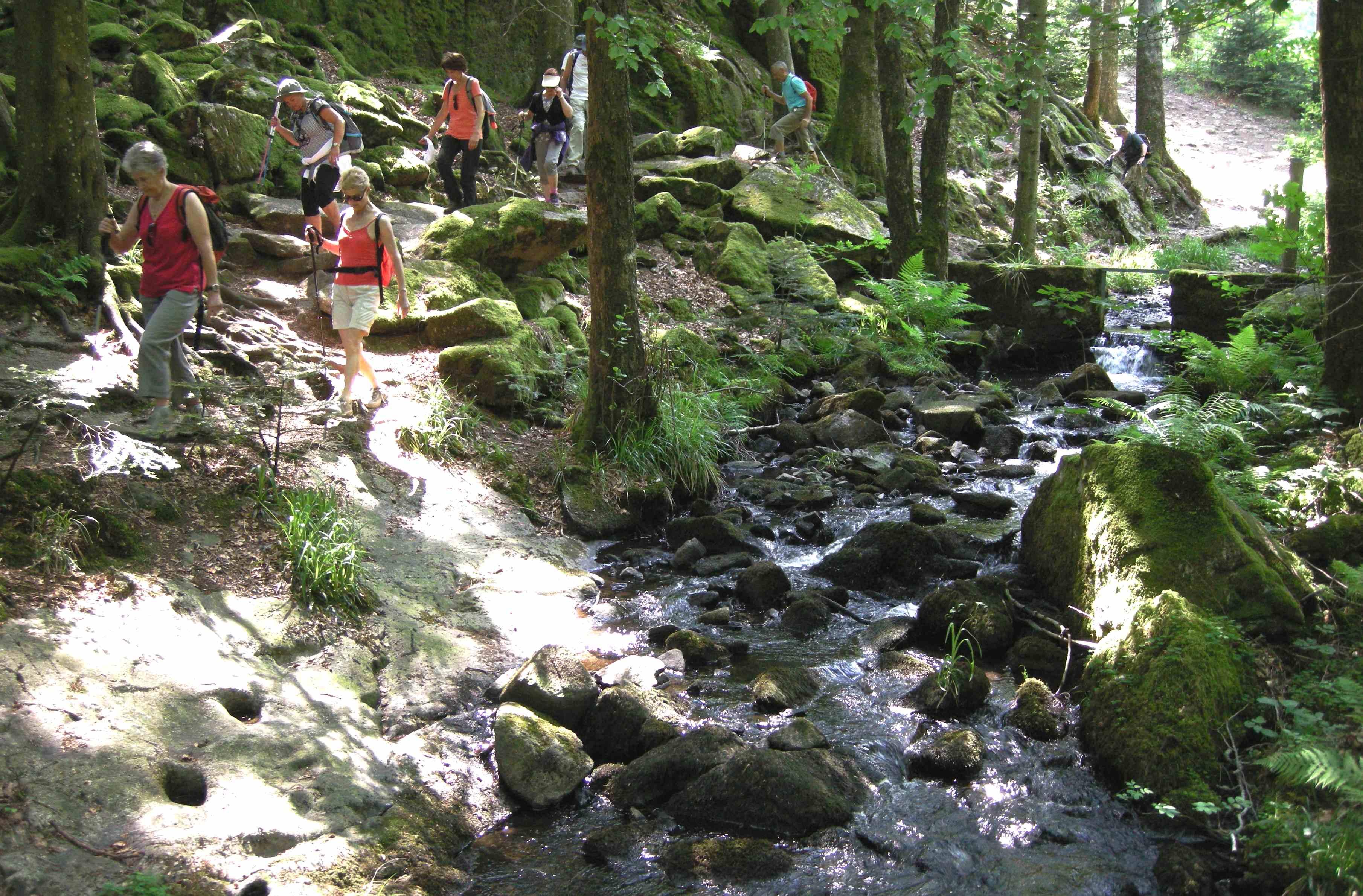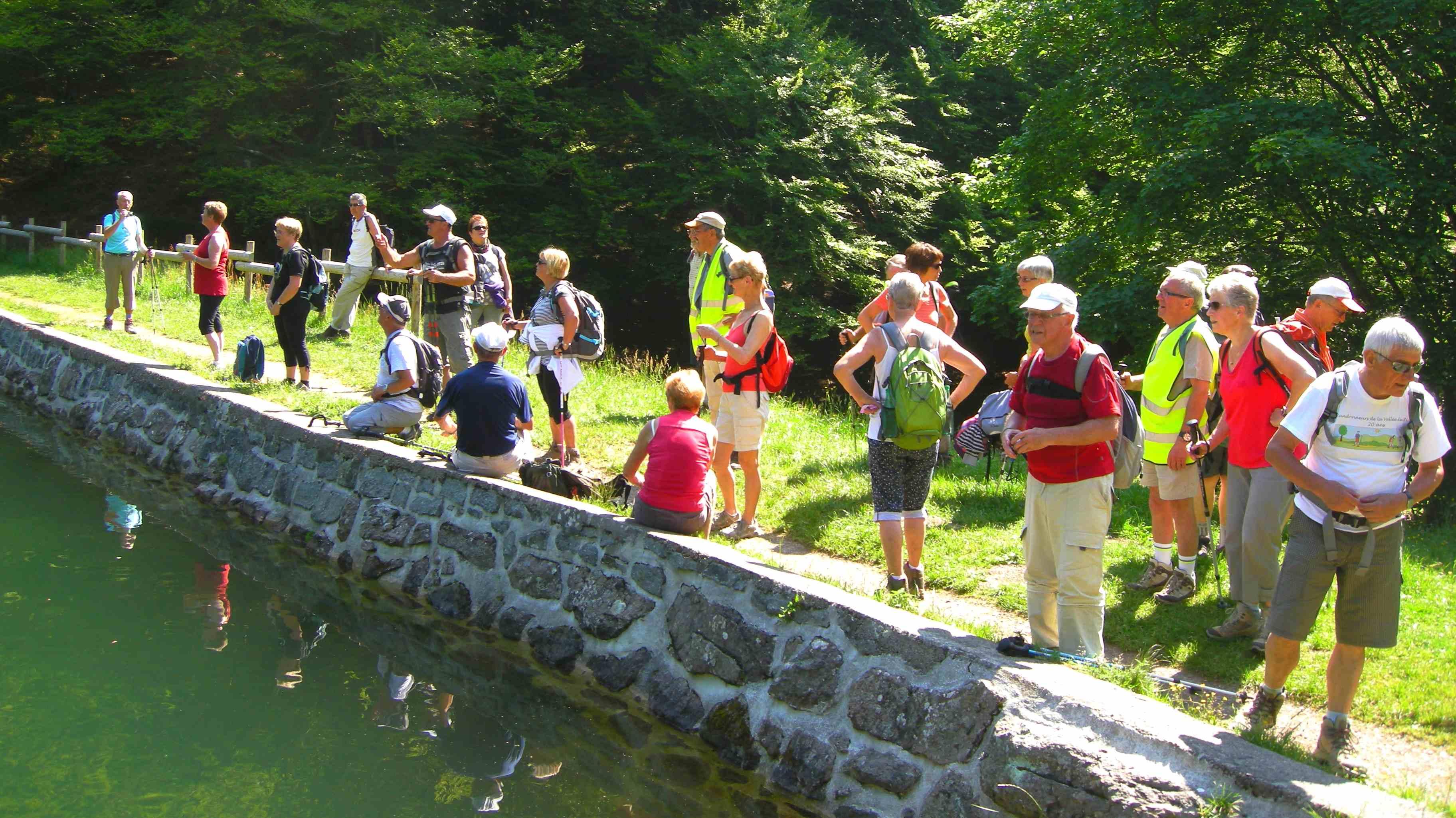Nous partons à 9 h 15 de Rimbach. Une ascension continue nous amène au lac des Perches, un petit lac de montagne dans une vallée glaciaire fermée par un barrage, le tout situé dans un écrin de verdure. Émerveillement de tous malgré les 2 heures d’une marche harassante.