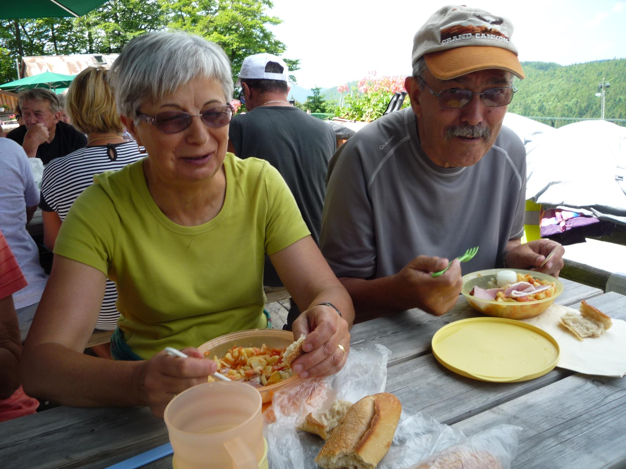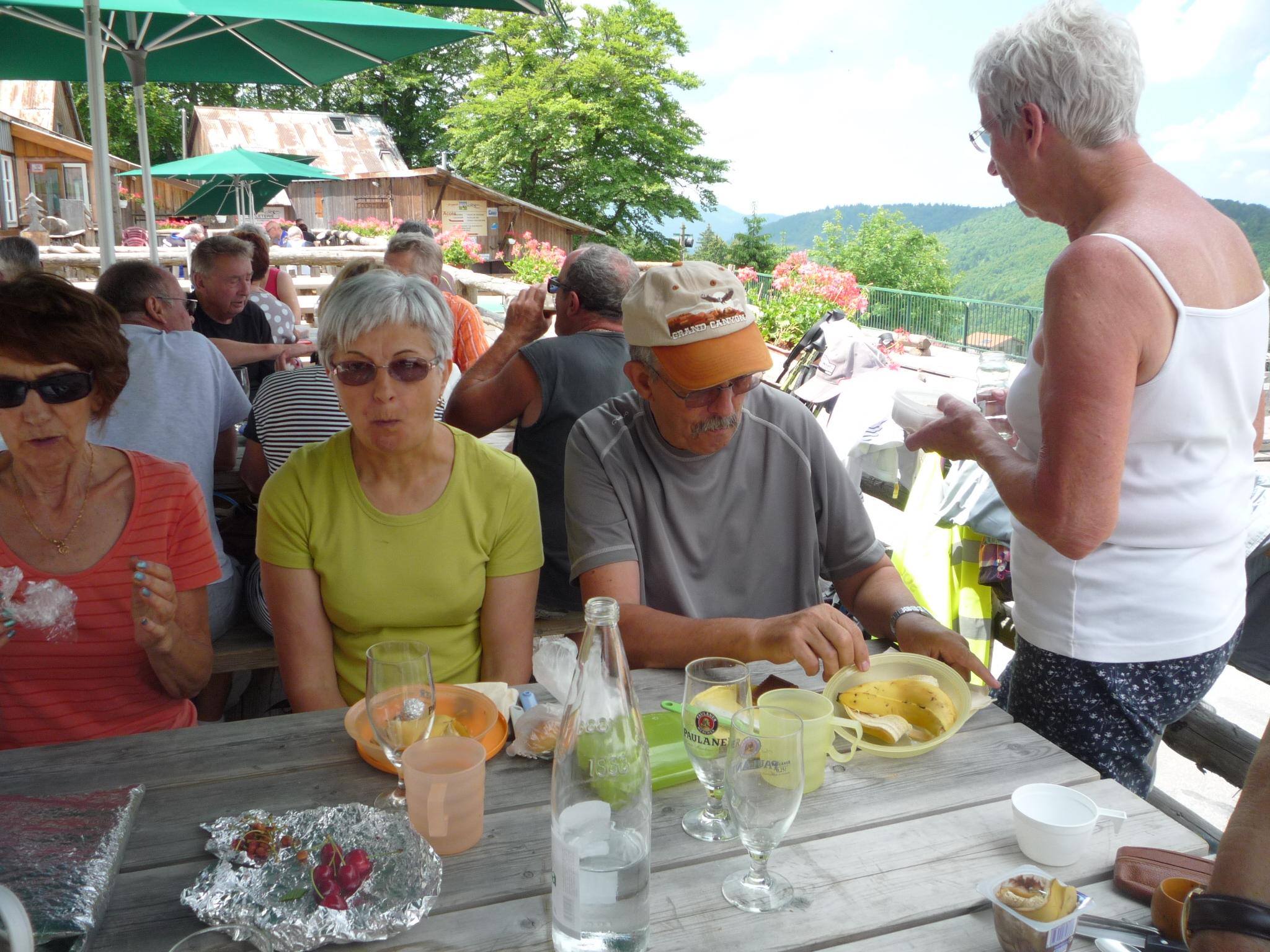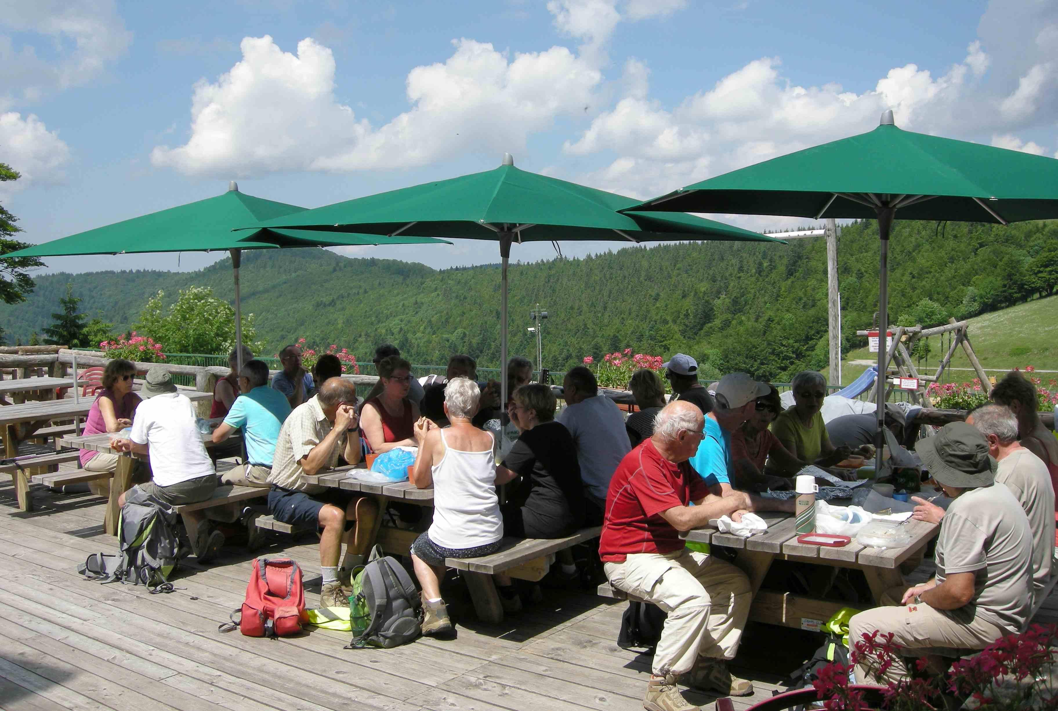 Après le lac, montée difficile au Col des Perches (des zigs et des zags), encore un dernier effort et nous arrivons à l’auberge de Rouge Gazon. Sa terrasse nous accueille pour le pique-nique salvateur animé de rires et d’anecdotes.