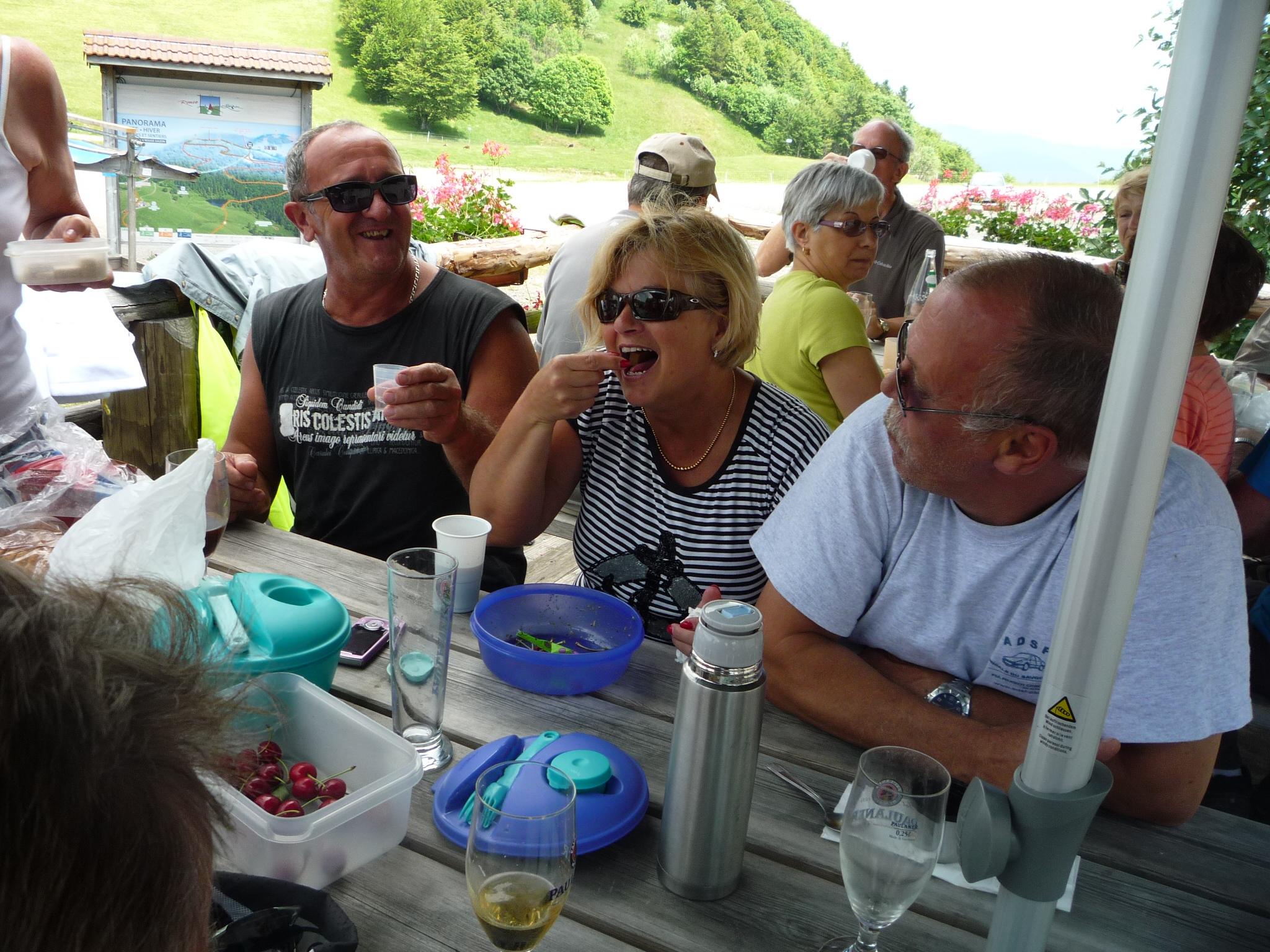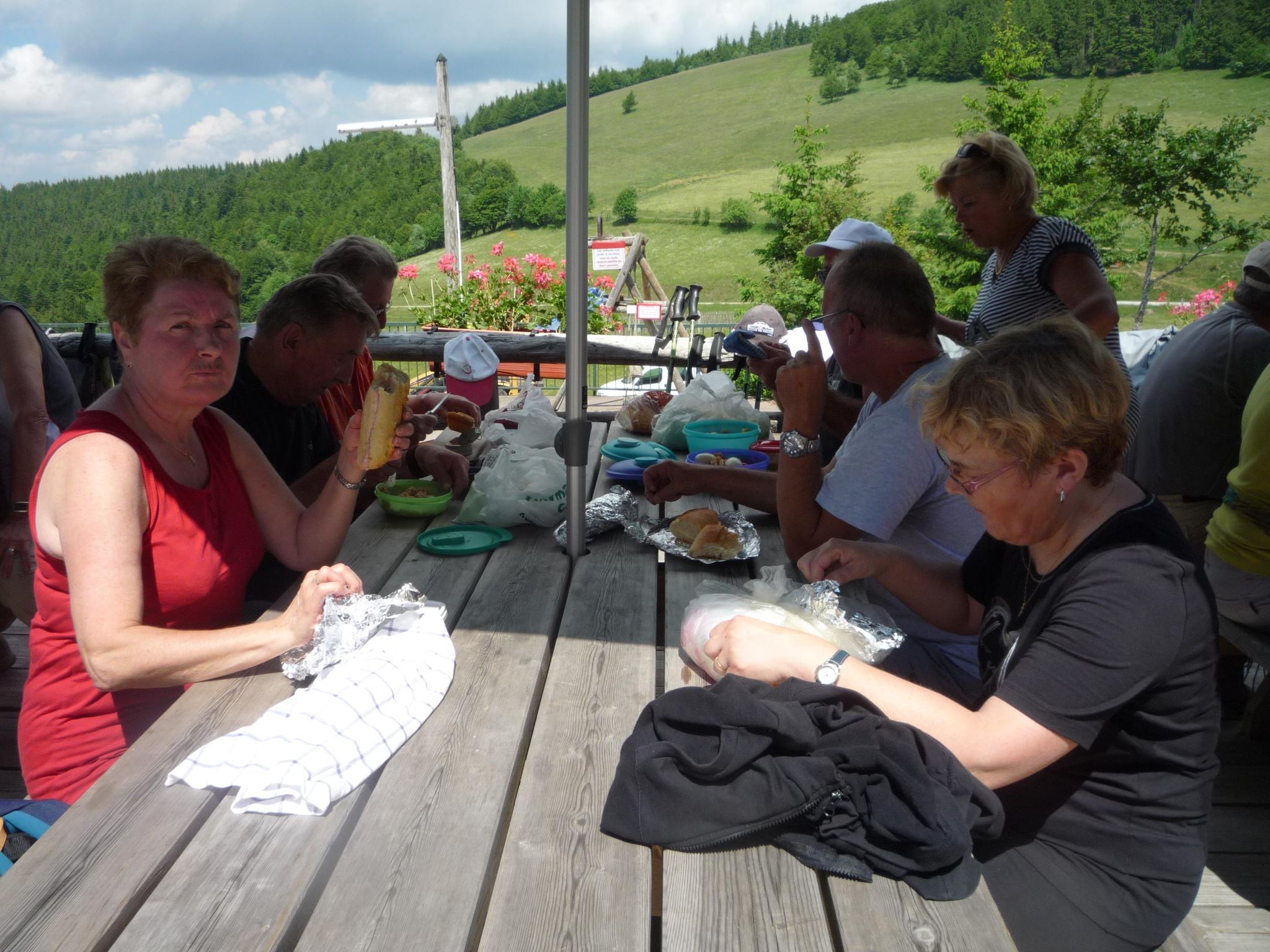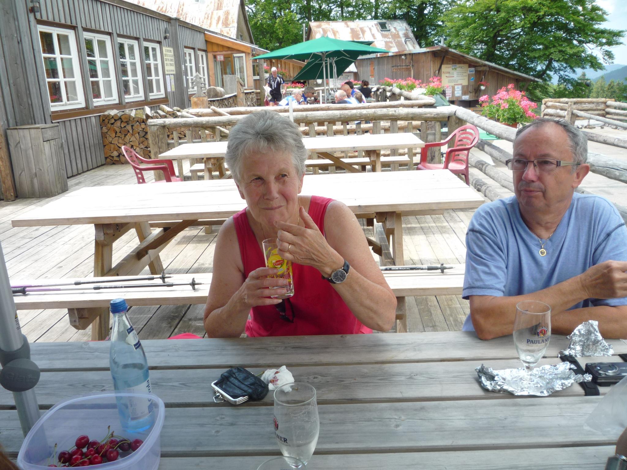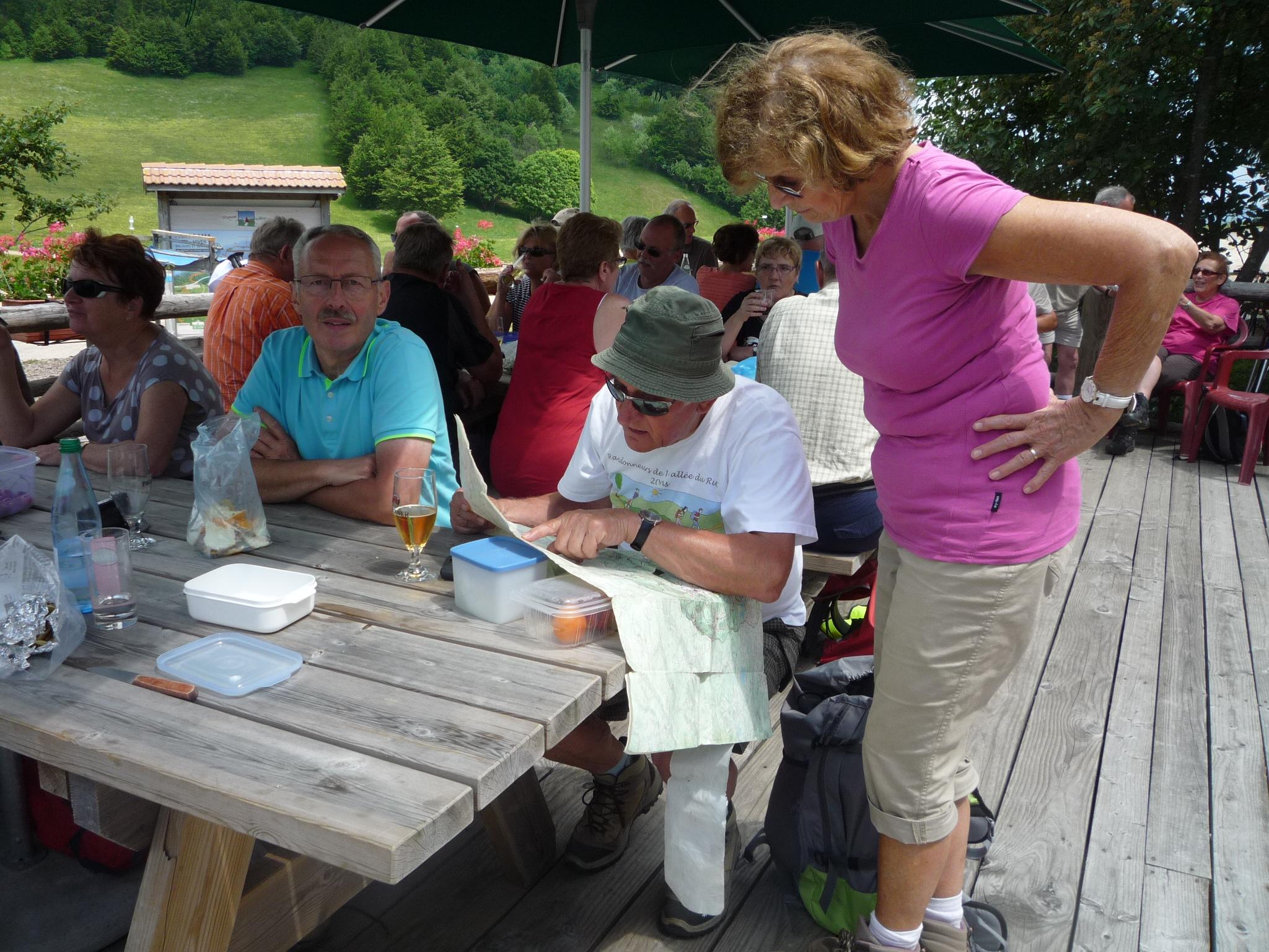 Après le lac, montée difficile au Col des Perches (des zigs et des zags), encore un dernier effort et nous arrivons à l’auberge de Rouge Gazon. Sa terrasse nous accueille pour le pique-nique salvateur animé de rires et d’anecdotes.