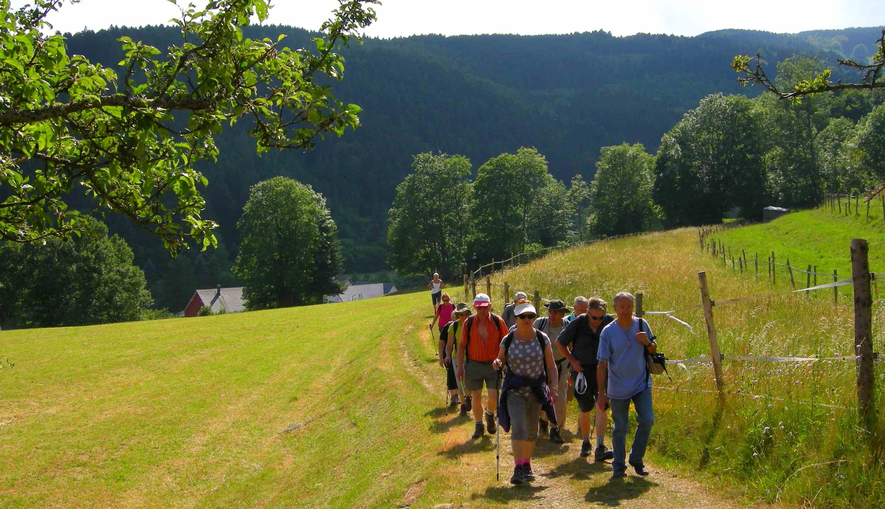 Pour finir, passage dans le village d’Ermensbach, son gîte, ses maisons remarquables et sa chapelle avant d’emprunter un chemin entre prairies et de champs pour notre retour à Rimbach et son parking.