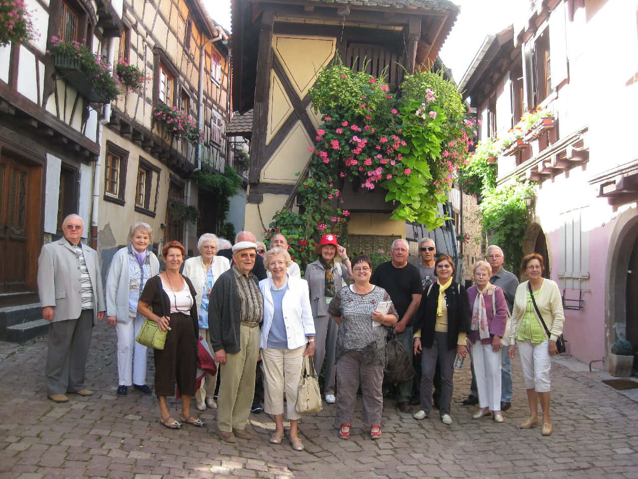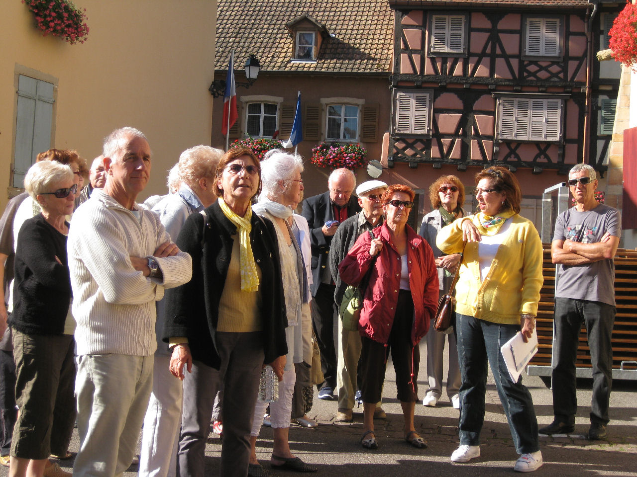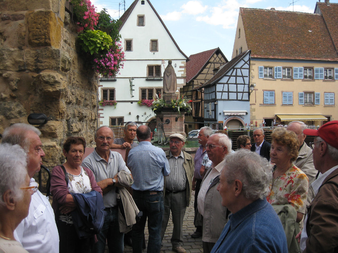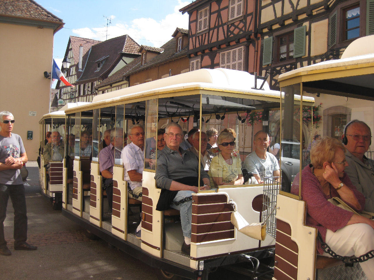 Pendant 2 heures nos guides nous ont conduit à travers ses rues pittoresques à la découverte de tout ce passé, fontaines, maisons à colombage, cours dimères, mur d’enceinte, chapelle, église, … Pour digérer plus facilement la bonne chaire alsacienne, la poursuite de la ville s’est effectuée confortablement installé dans le petit train touristique.