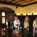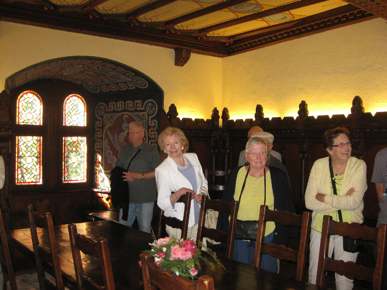 Le mardi 30 août, 44 retraités en pénétrant dans le château Saint-Léon d’Eguisheim, lieu de naissance du pape Léon IX, ont laissé derrière eux le 21e siècle pour retourner dans le 8e siècle. Pendant que les messieurs appréciaient en connaisseur les boiseries des plafonds, les dames s’extasiaient devant la décoration.