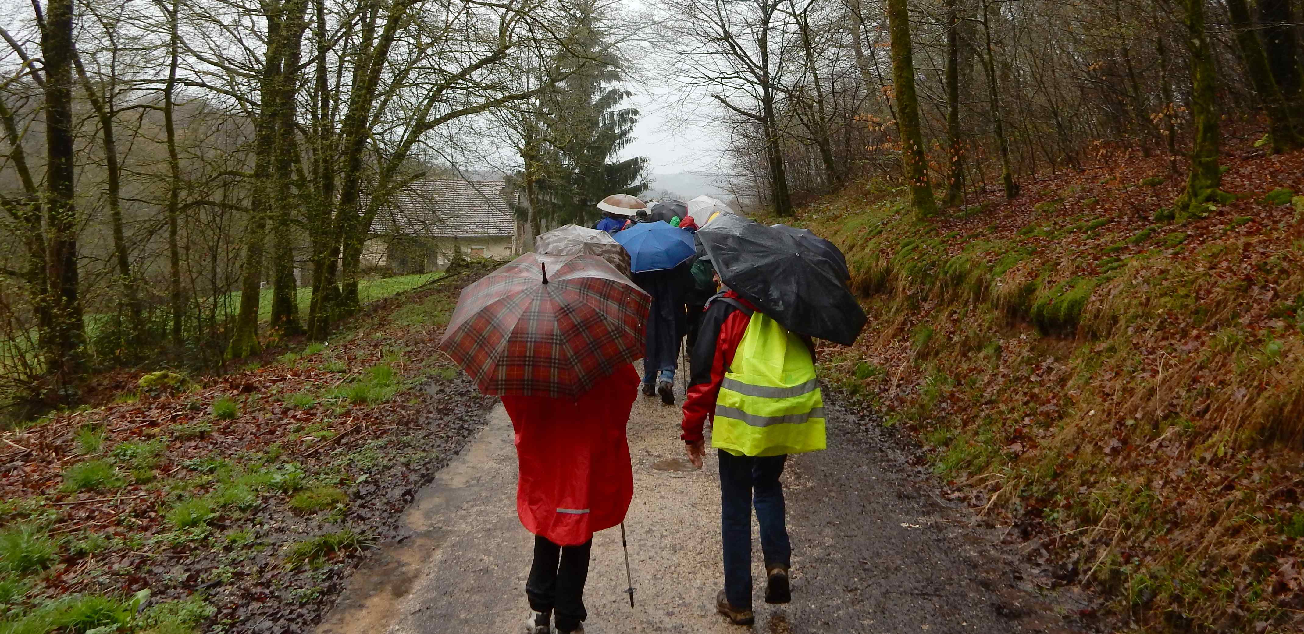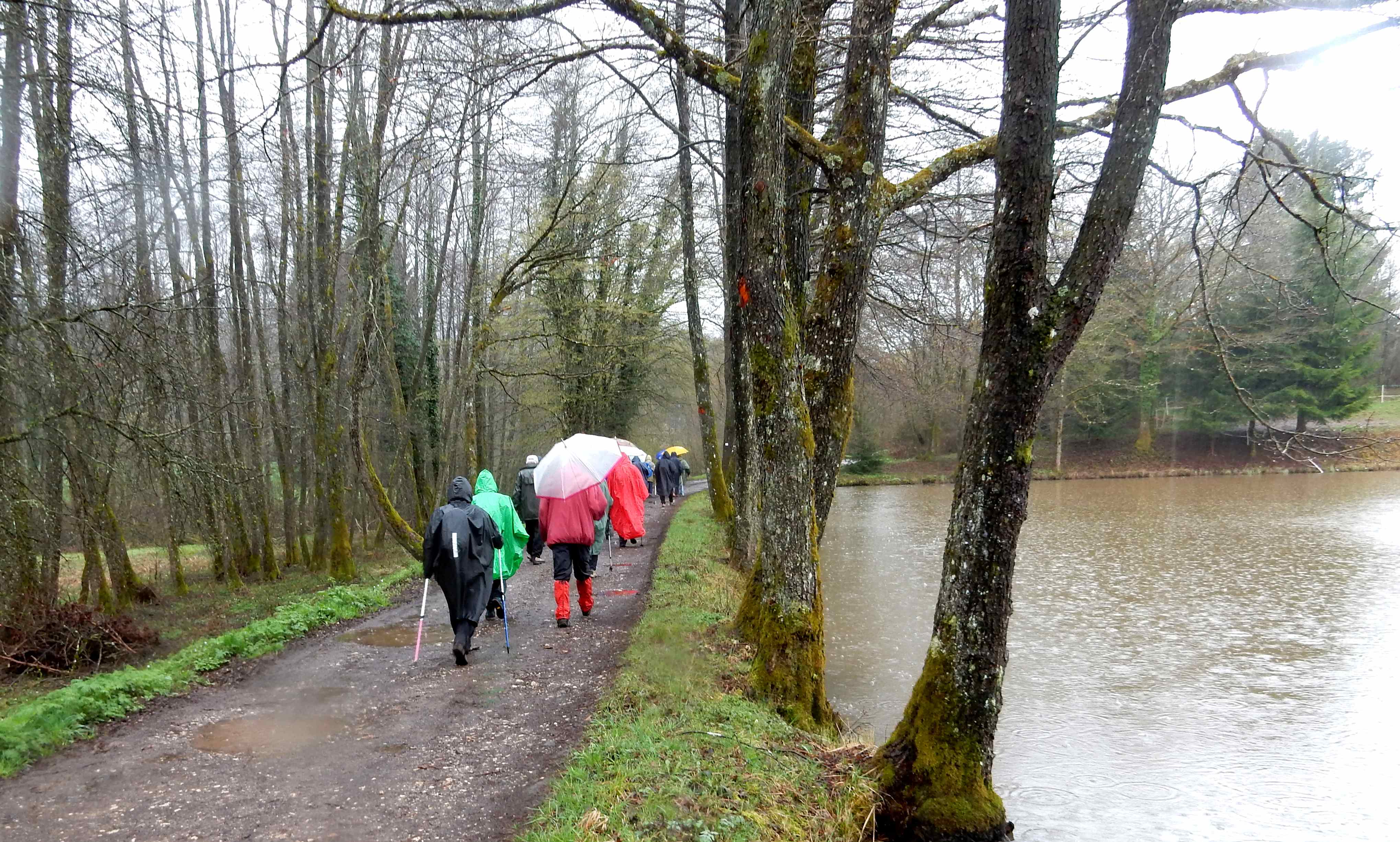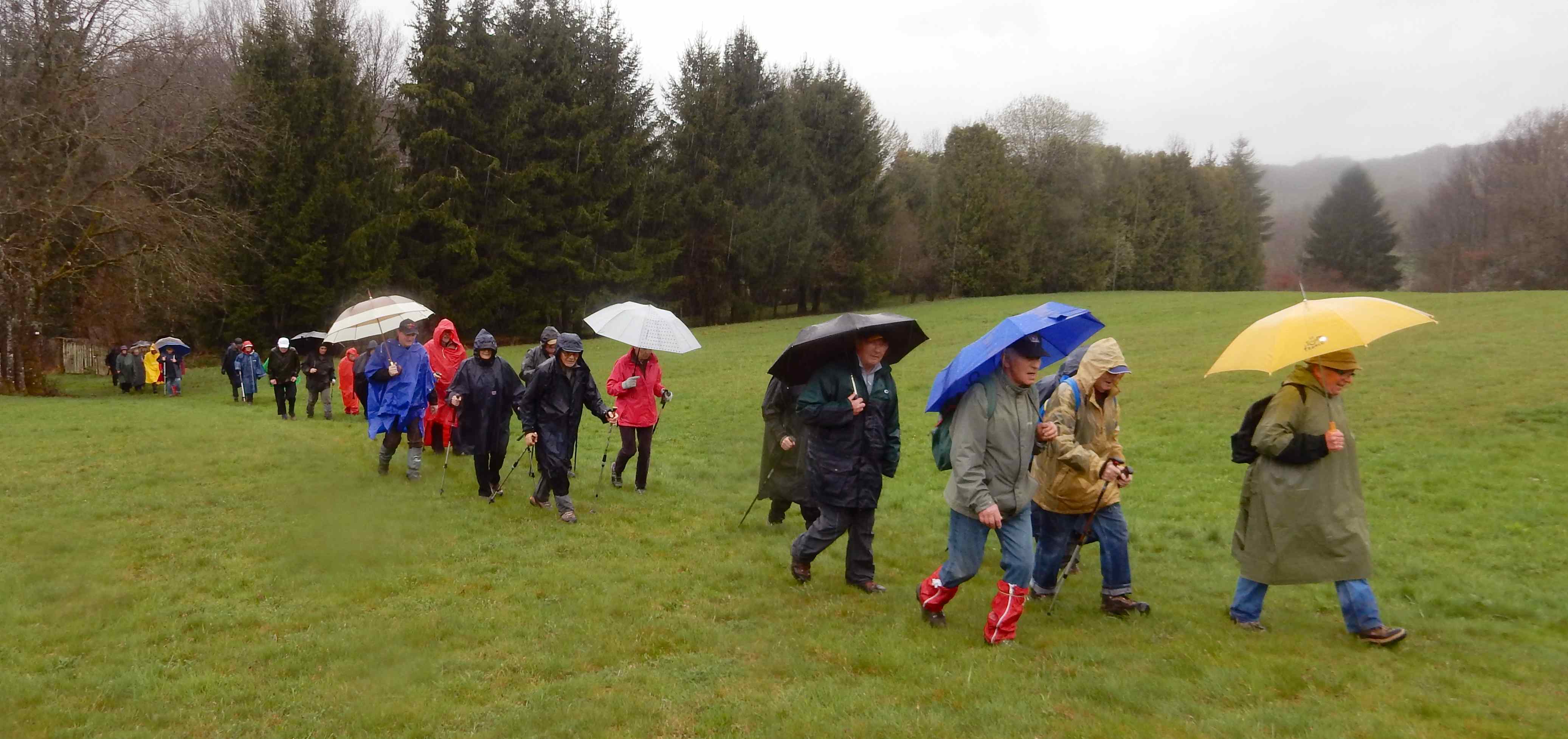 Temps : pluie incessante, Marche de 10 km, Dénivelé : 80 m
