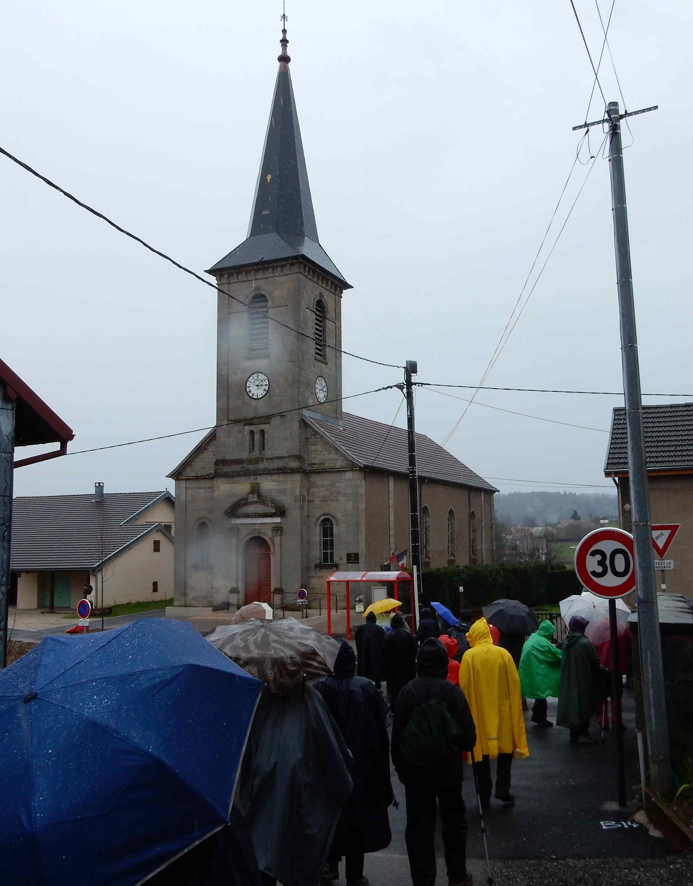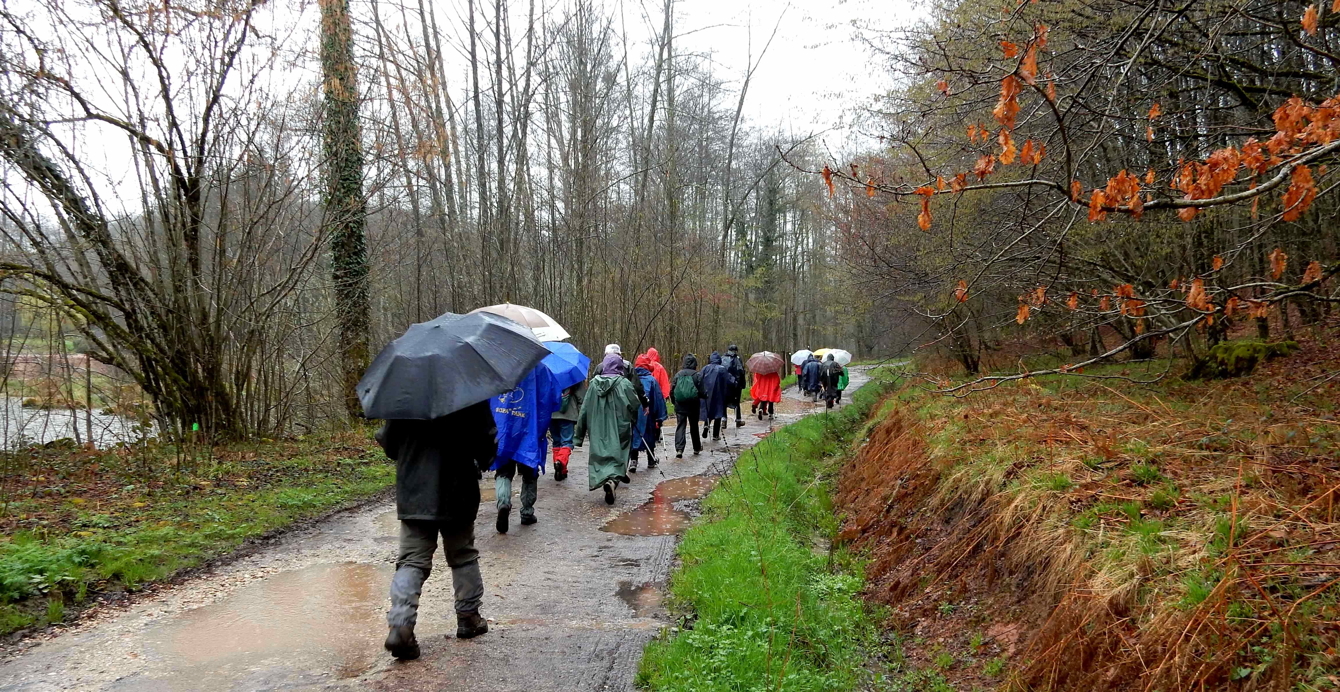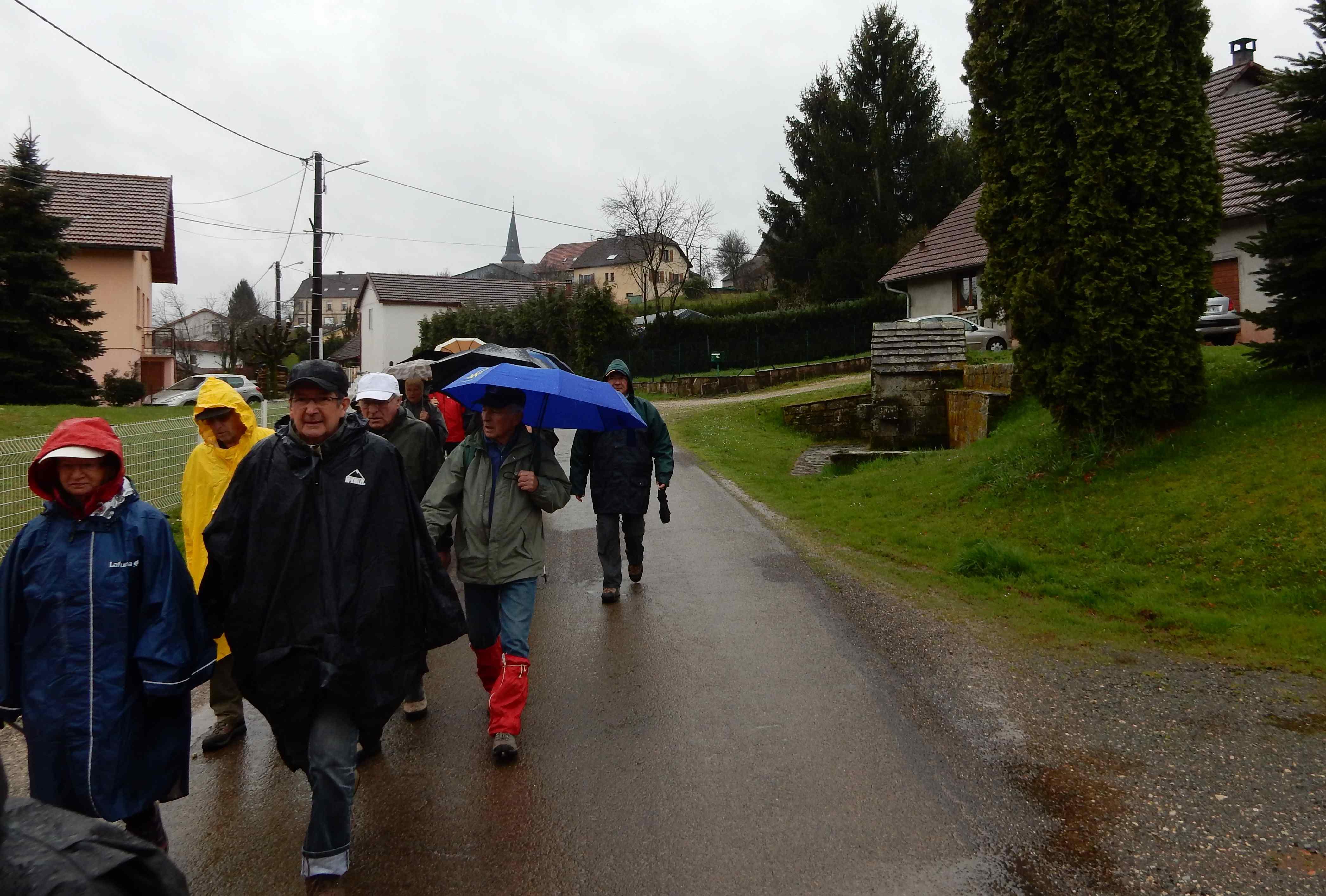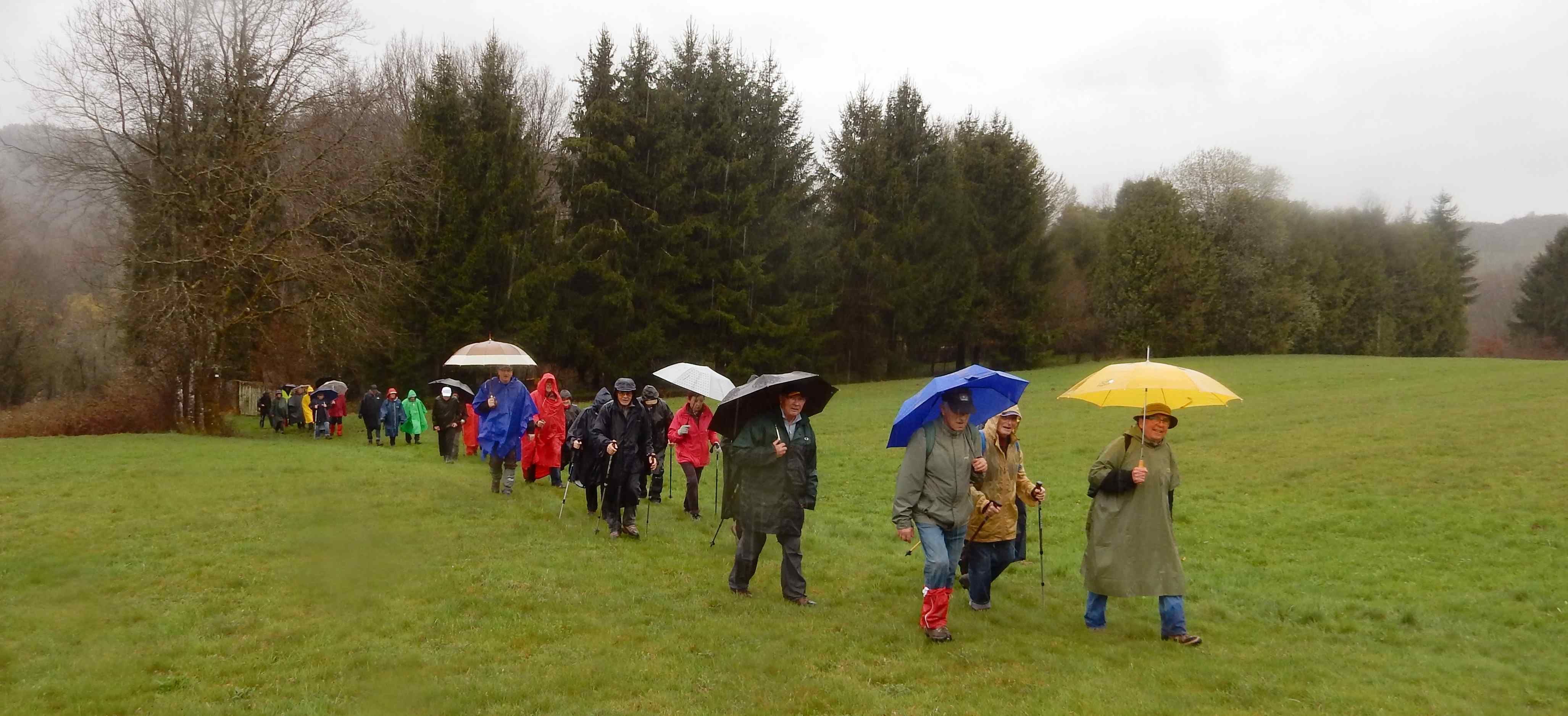 Temps : pluie incessante, Marche de 10 km, Dénivelé : 80 m