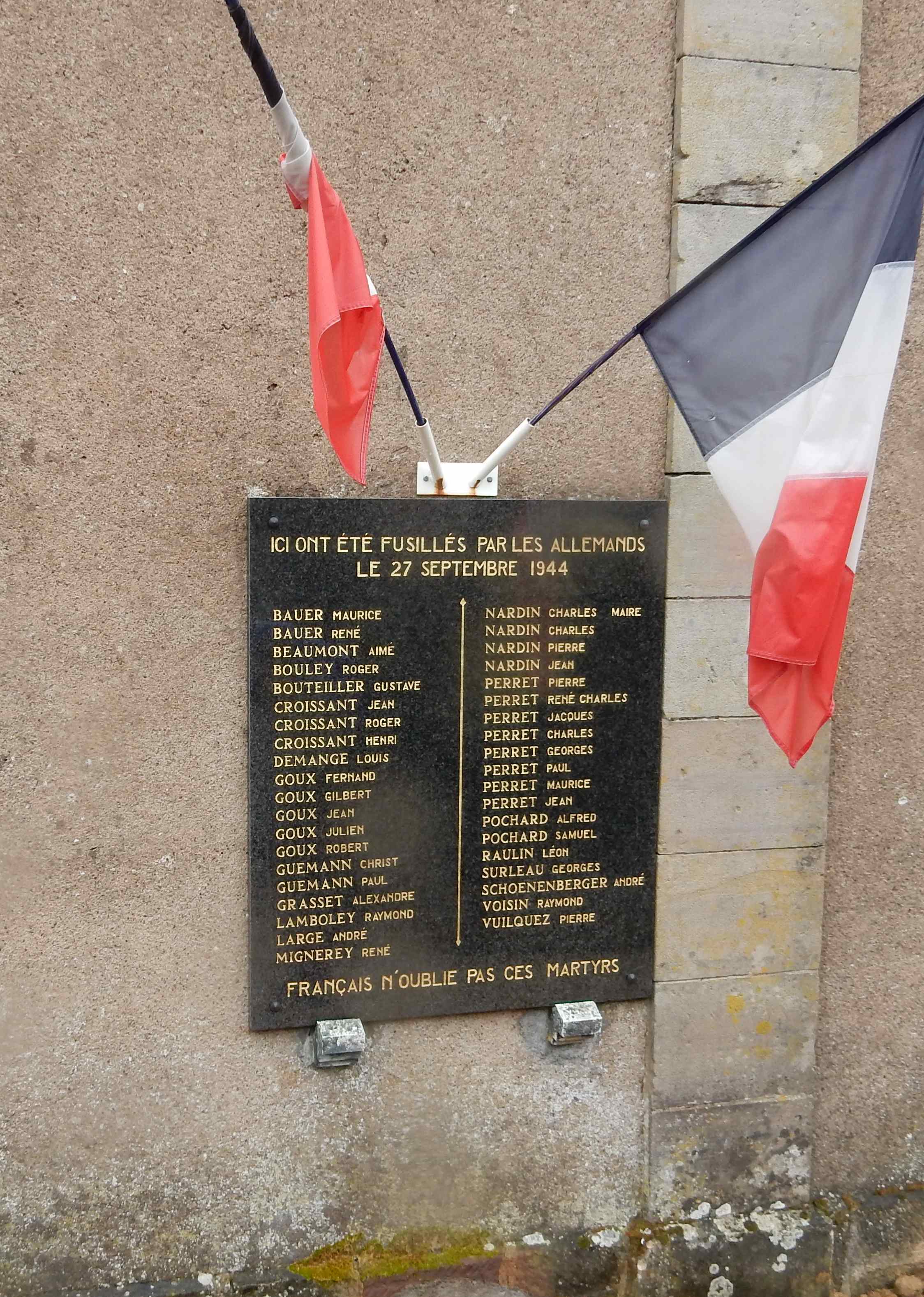 A mi-parcours, un arrêt s’est imposé devant la plaque commémorative du massacre des 39 martyrs d’ETOBON fusillés à cet endroit le 27 septembre 1944.