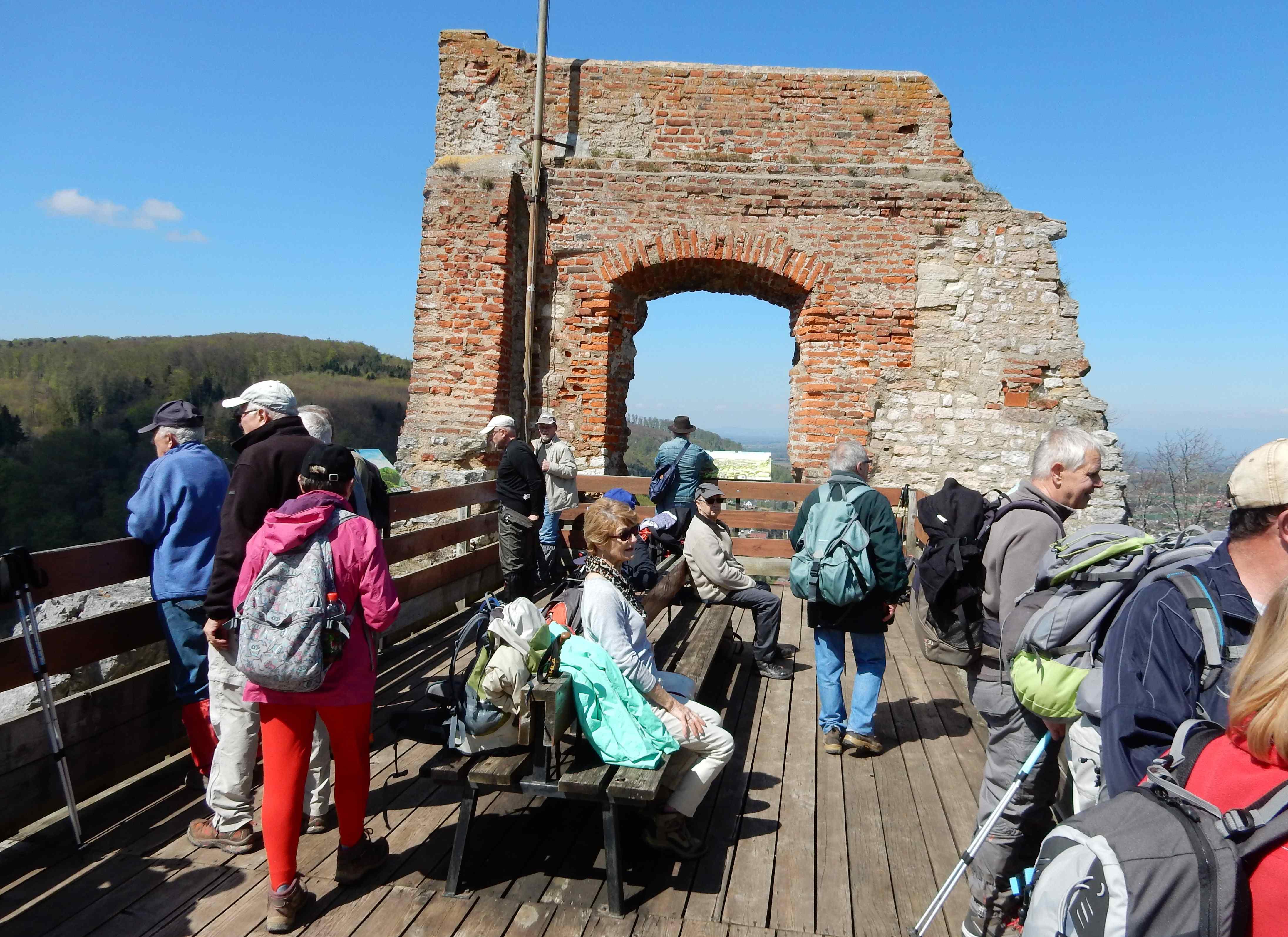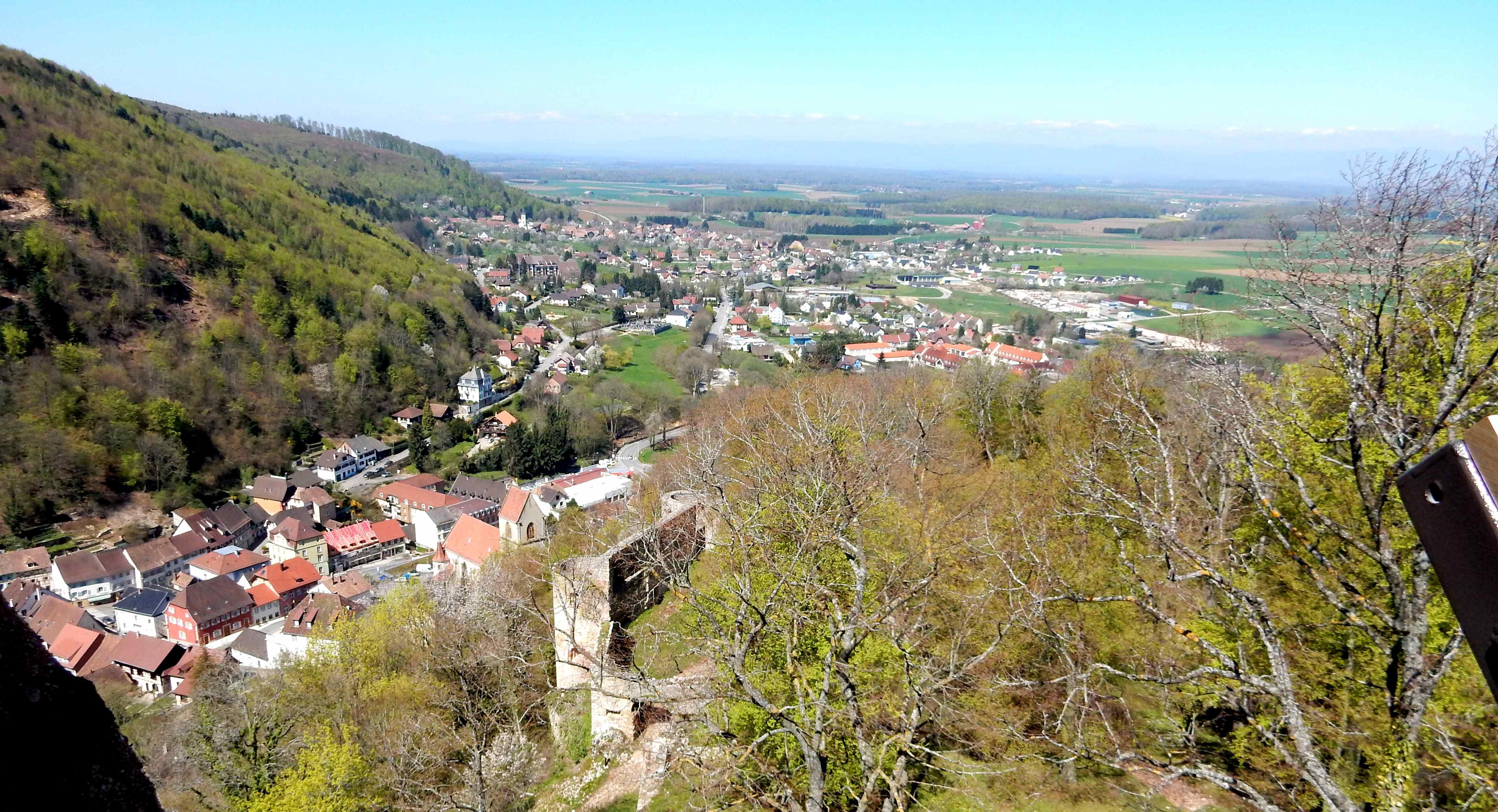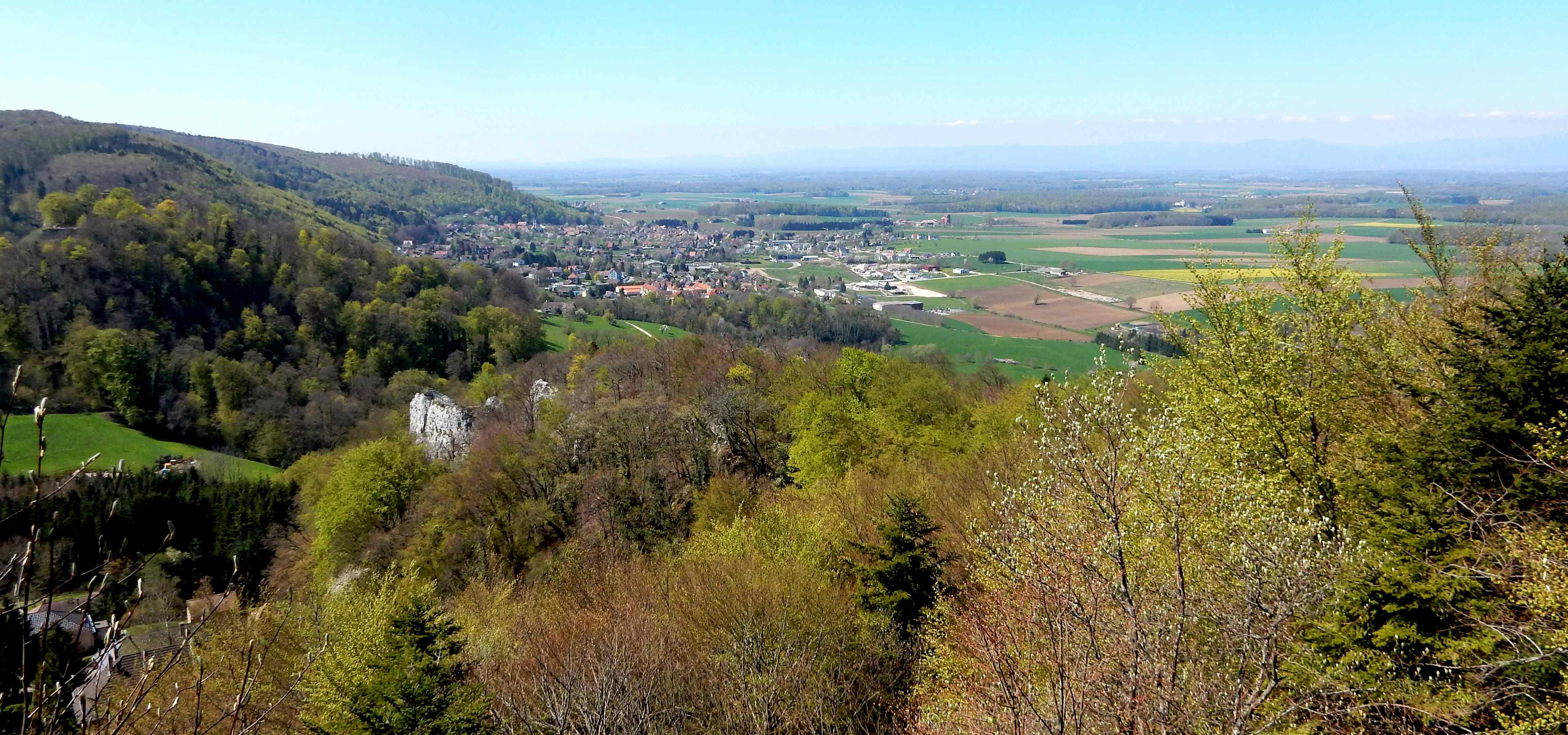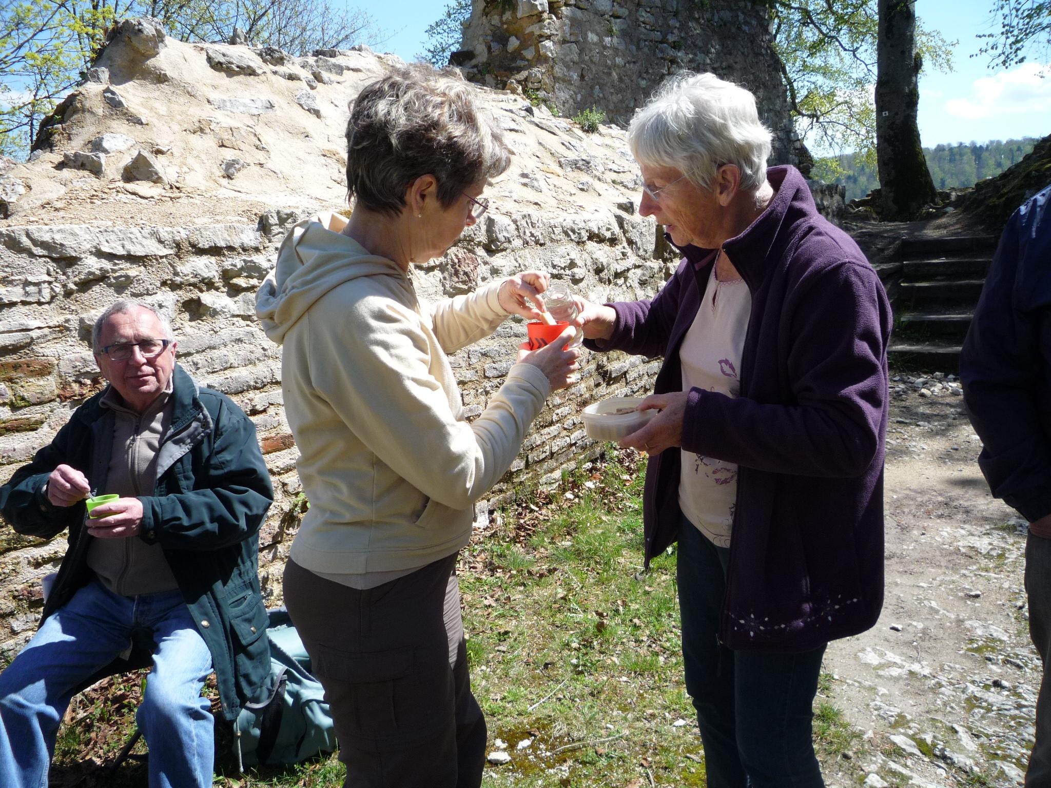 La vue sur les Vosges et Ferrette est splendide. Le repas est pris au château dans la bonne ambiance habituelle, après une ascension mouvementée.